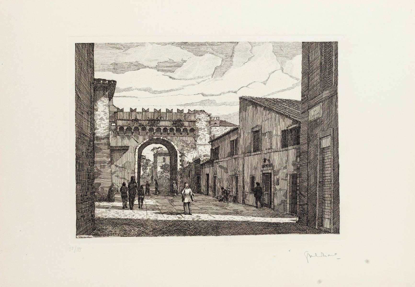 Giuseppe Malandrino, Rome, Porta Settimiana, Etching, 1970s
