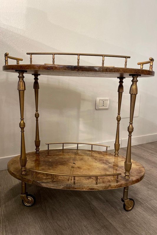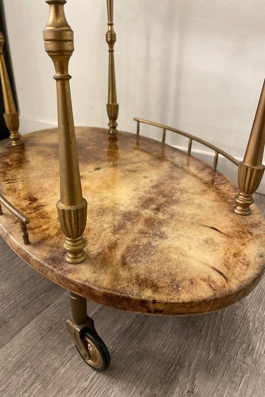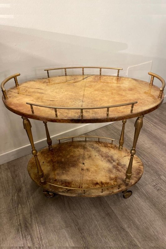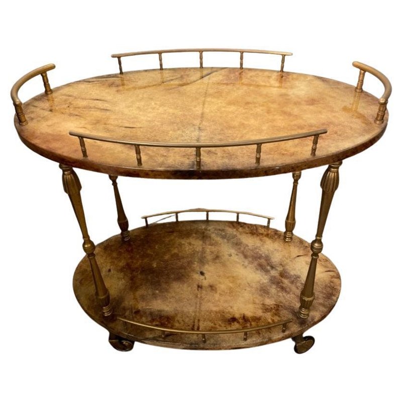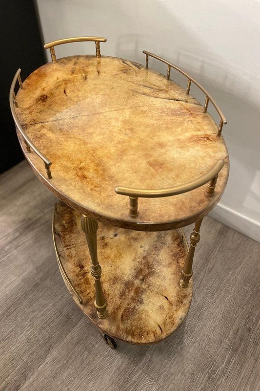 Glazed Parchment Cart from Aldo Tura, 1950s