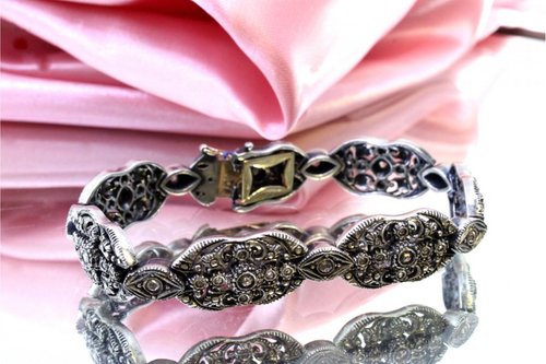 Gold and Silver Bracelet with Central Crowned Diamonds