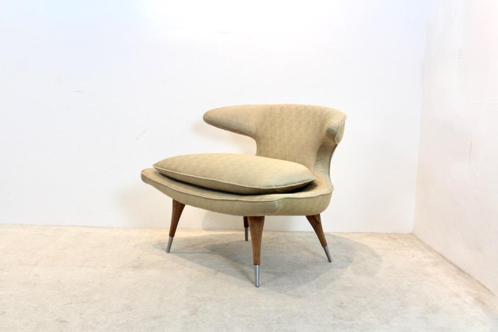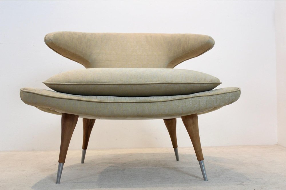 Gold Fabric and Walnut Horn Model Chair from Karpen of California