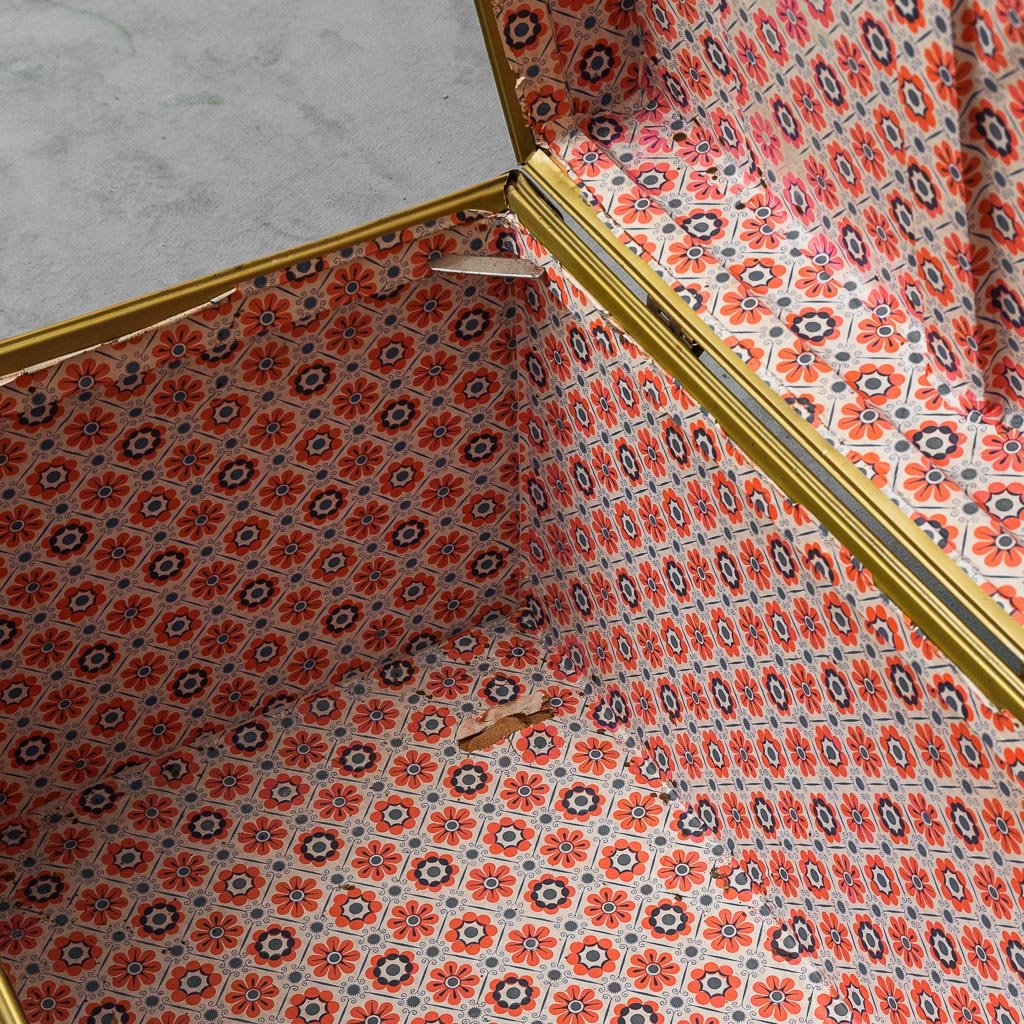 Gold-Plated Metal and Red Leather Trunk, 1950s