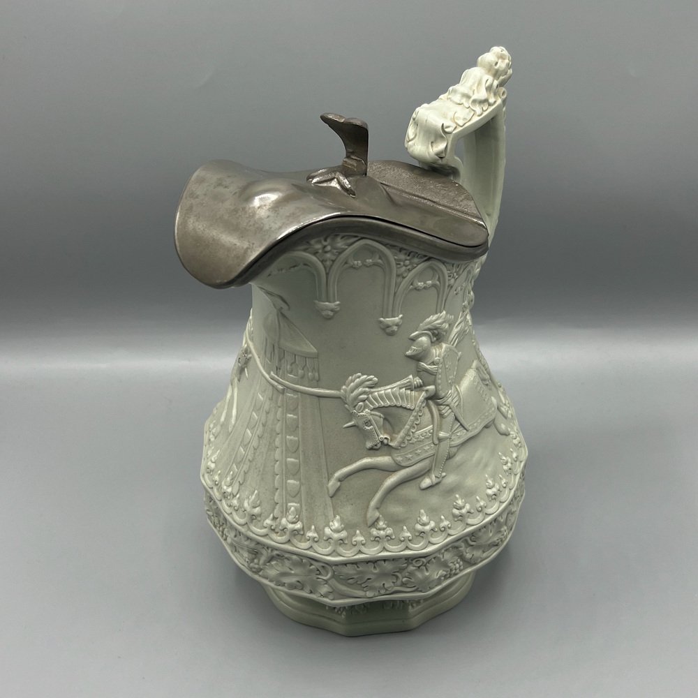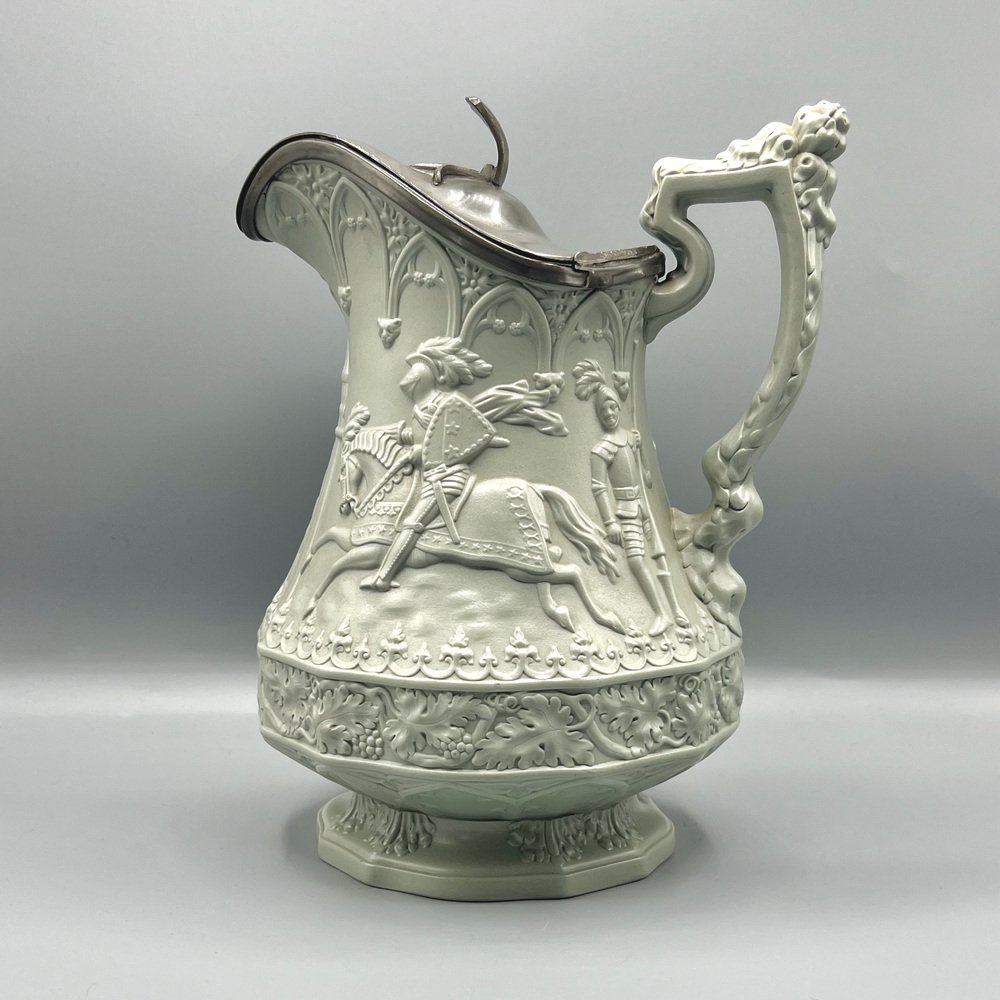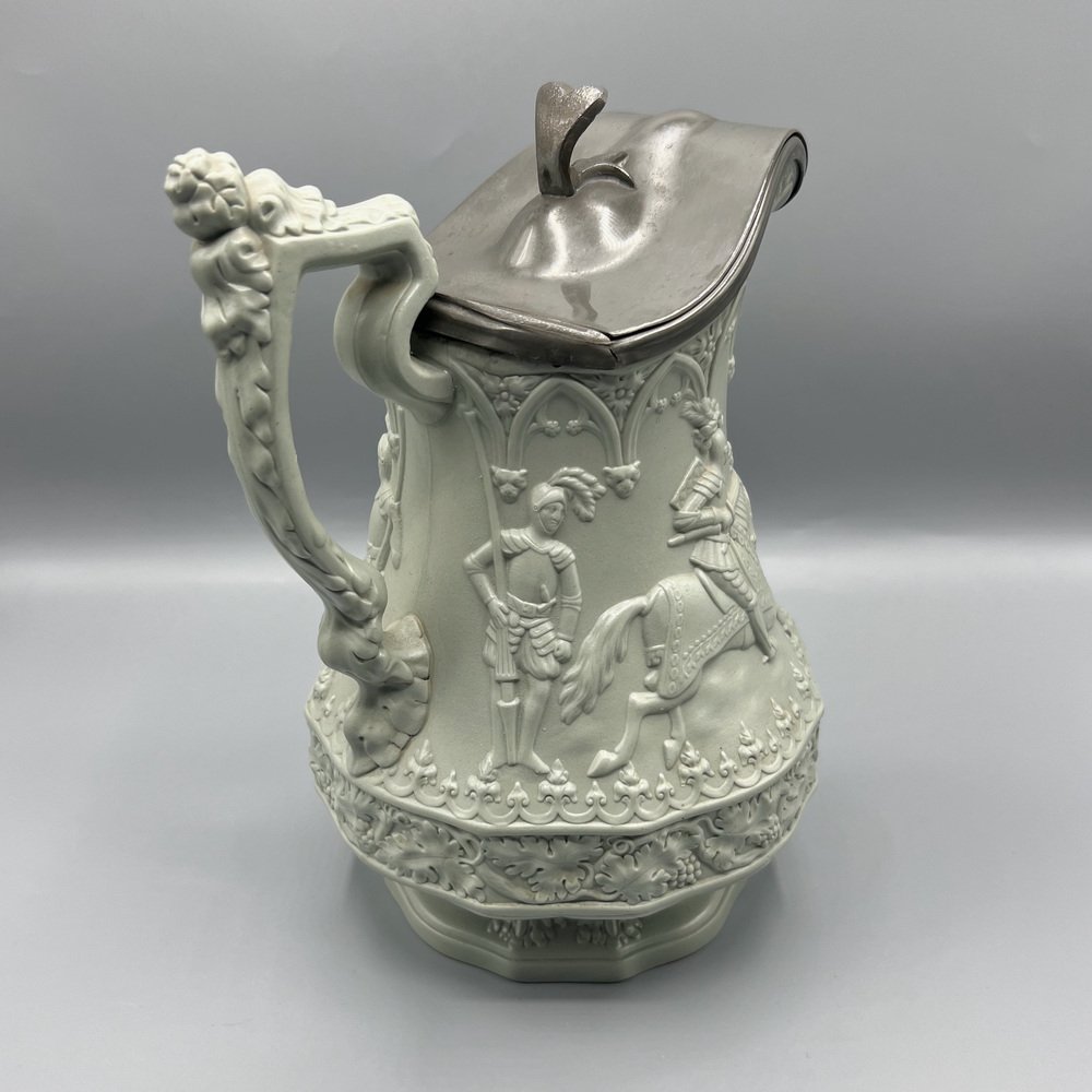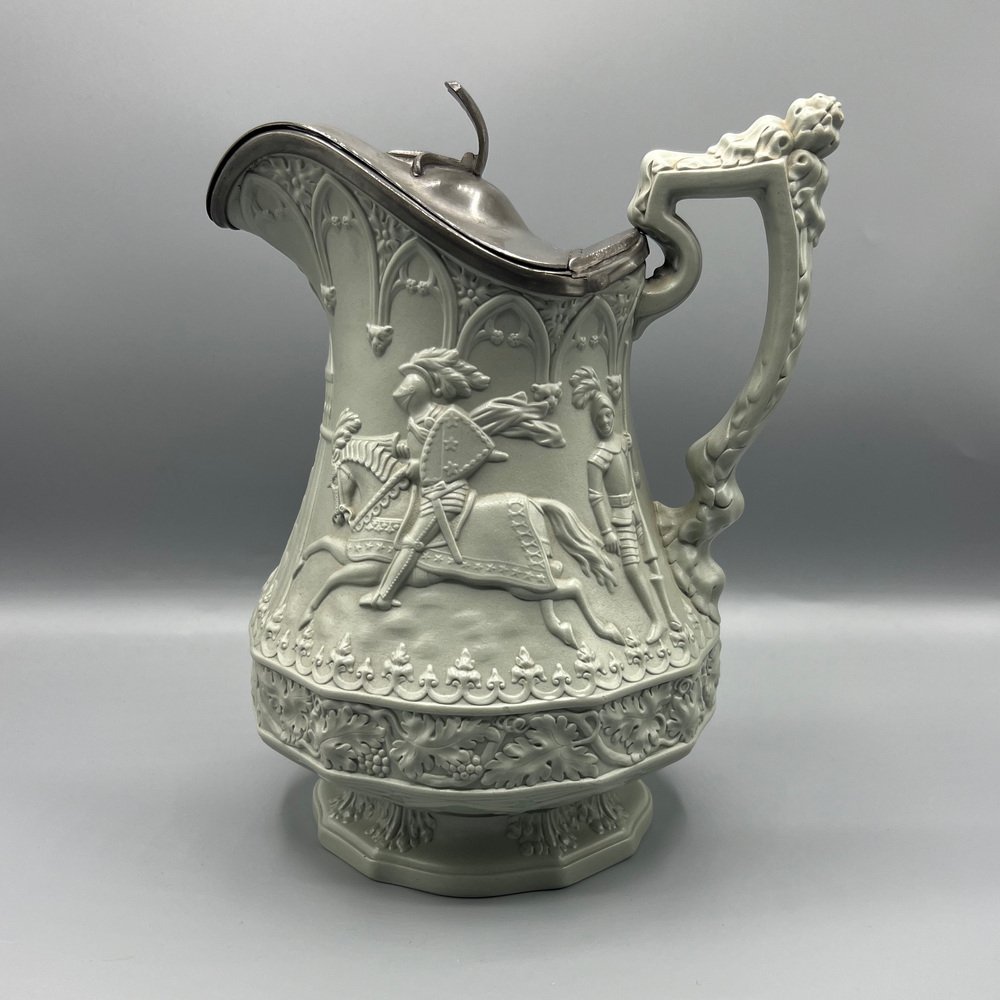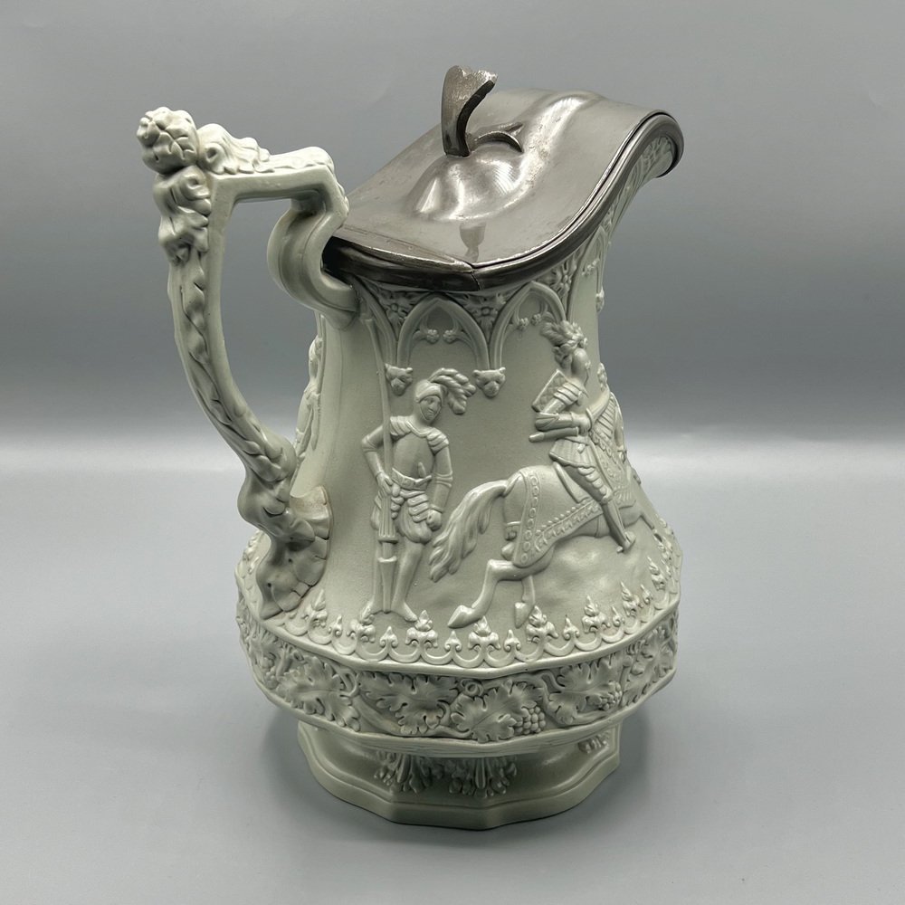 Gothic Revival Ceramic Relief Jug with Pewter Mount from W. Ridgway & Son, England, 1840s