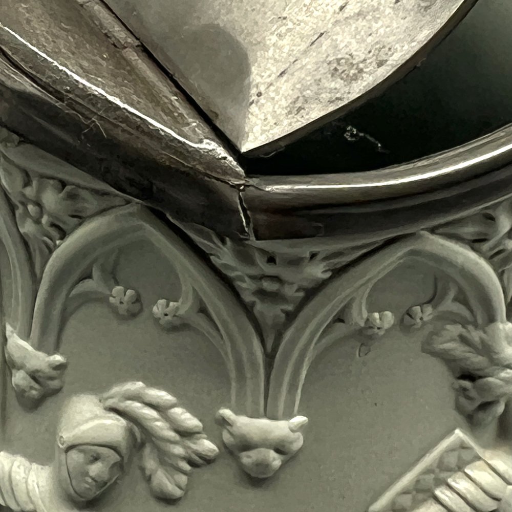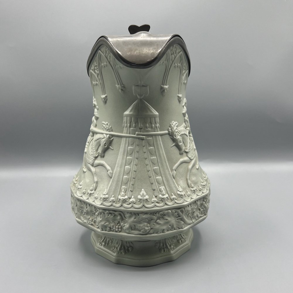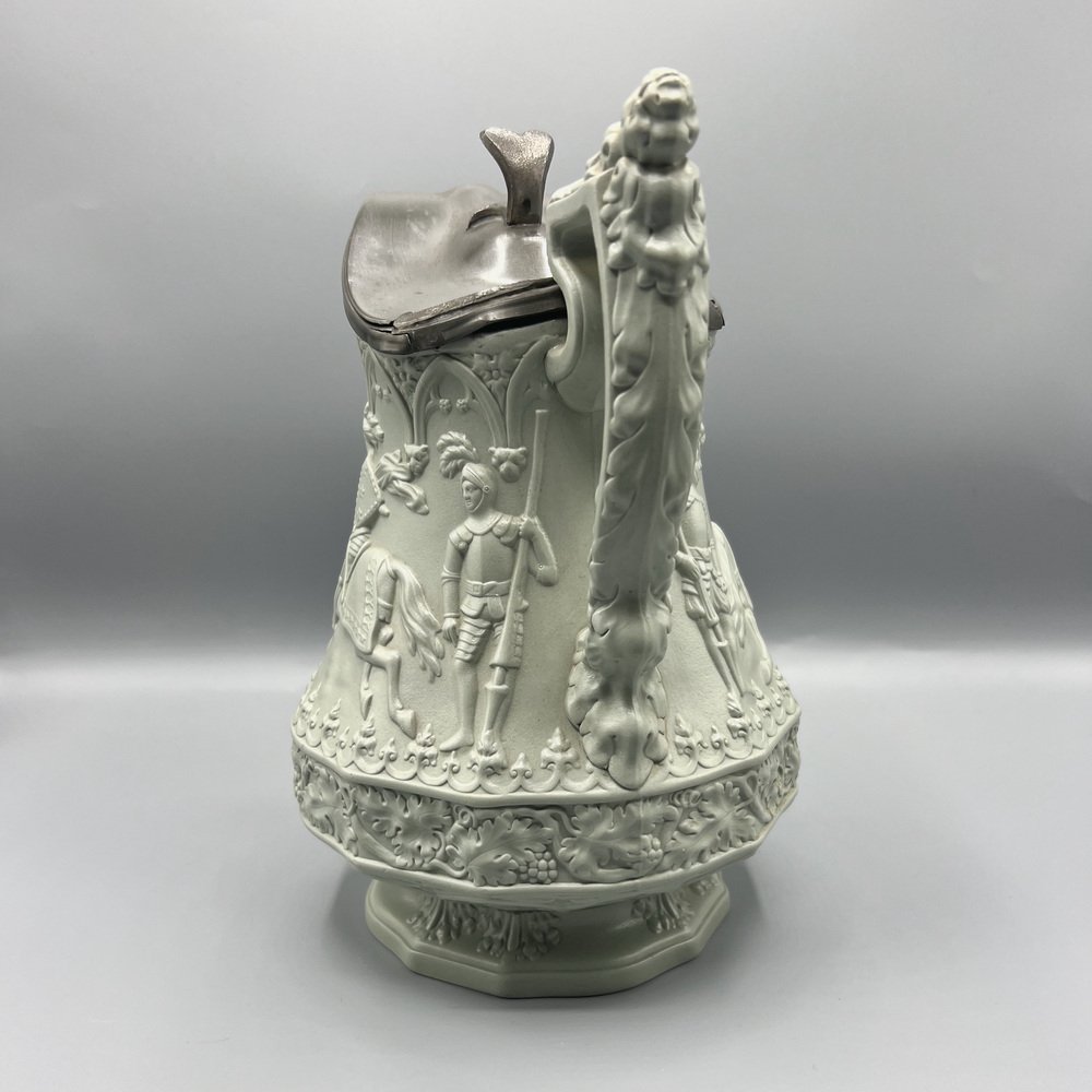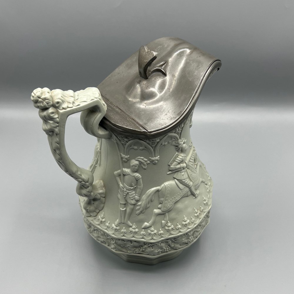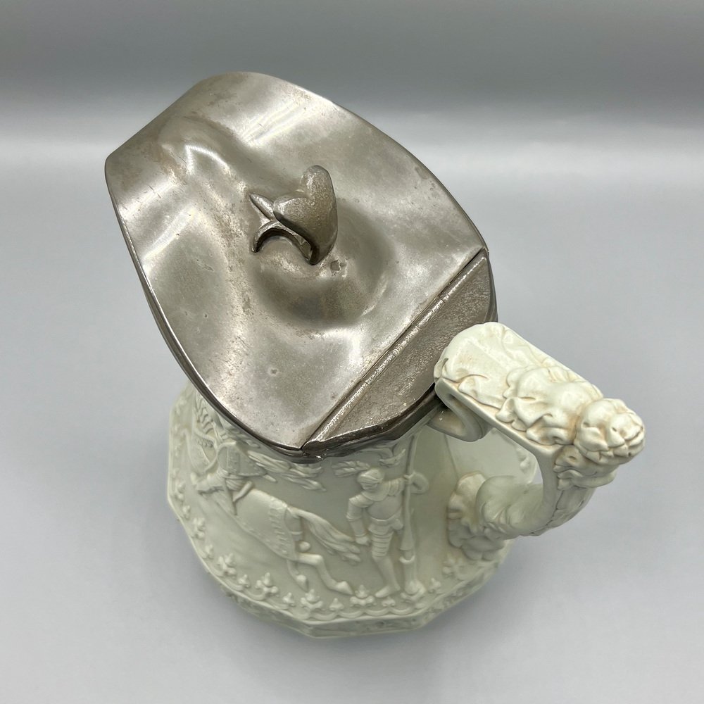 Gothic Revival Ceramic Relief Jug with Pewter Mount from W. Ridgway & Son, England, 1840s