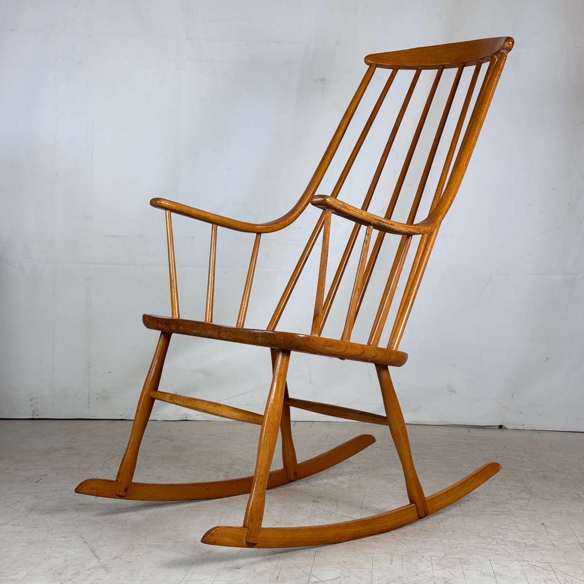 She began her trailblazing arc at Carl Malmsten’s Verkstad (viz., furniture design) school in Stockholm, where she studied to become a cabinetmaker. A subsequent 1939 internship at Swedish furniture company Futurum notwithstanding, Larsson received her first professional break in the early 1940s, working for Elias Svedberg’s namesake firm in Stockholm. Brought on to sketch designs for a few small-scale projects, Larsson exhibited a talent and design sensibility that quickly garnered her a larger company role, which culminated in her involvement with Svedberg’s Tra i trä chair (ca. 1943). Prepared for—and ultimately winning—Svenska Mobelfabrikerna Bodafors’ 1943 competition Den Moderna Familjebostadens Behov (lit. The Needs of the Modern Family Home), this piece, Svedberg’s original iteration of ready-made furniture, was a precursor to the intuitive designs later popularized by fellow Swedes through IKEA.