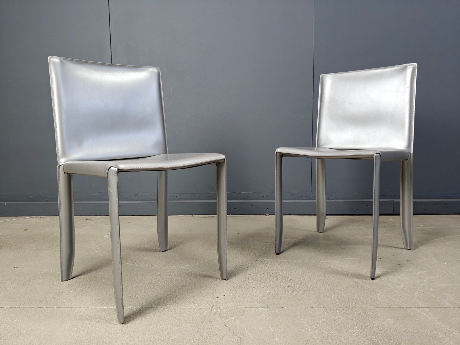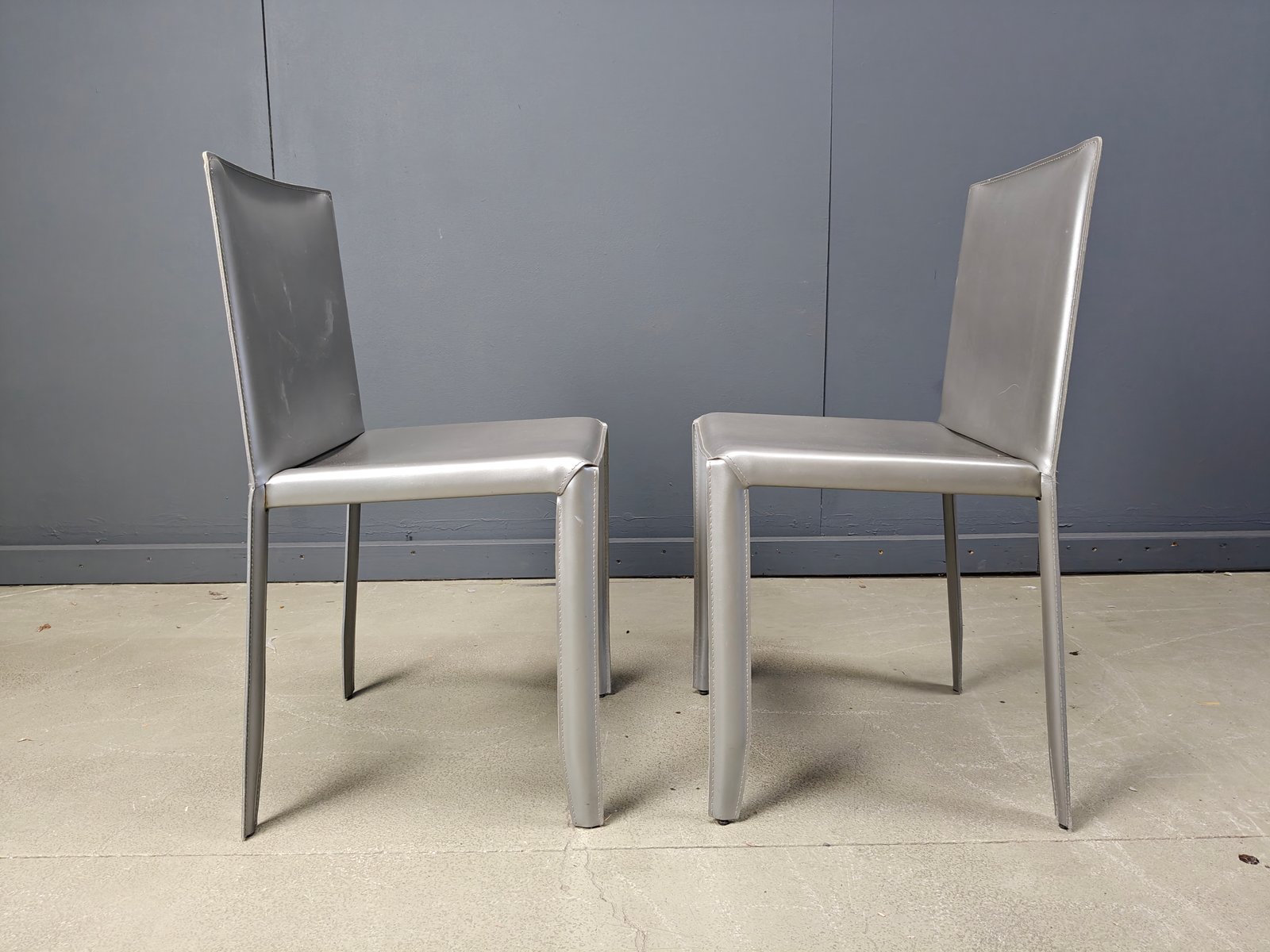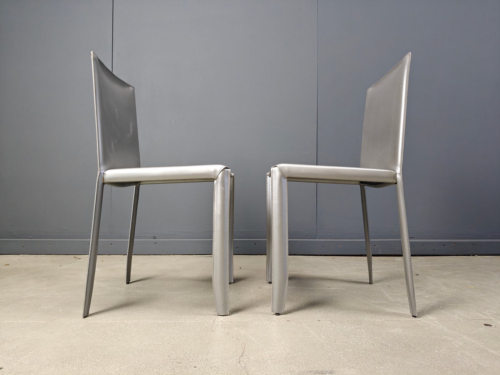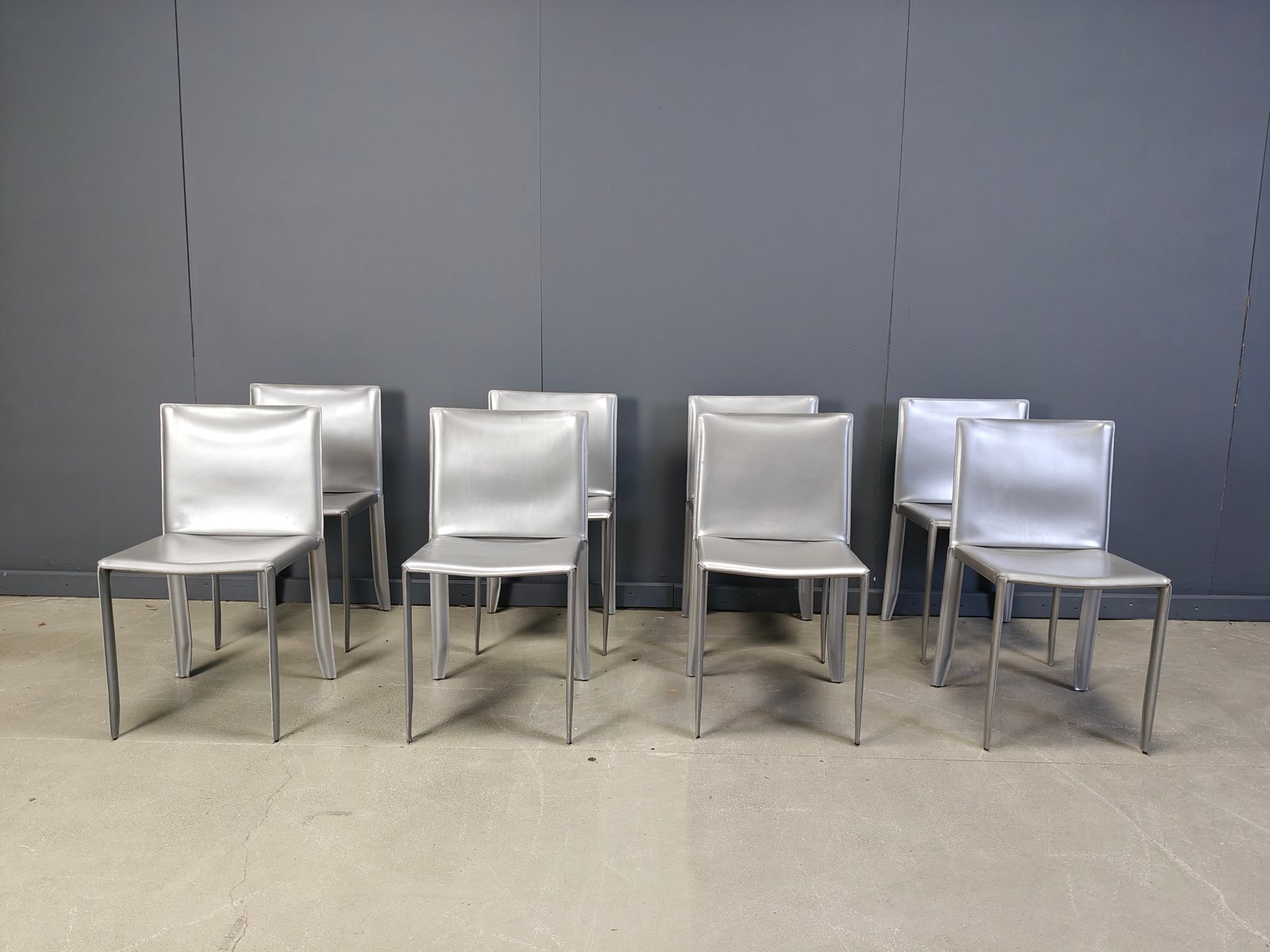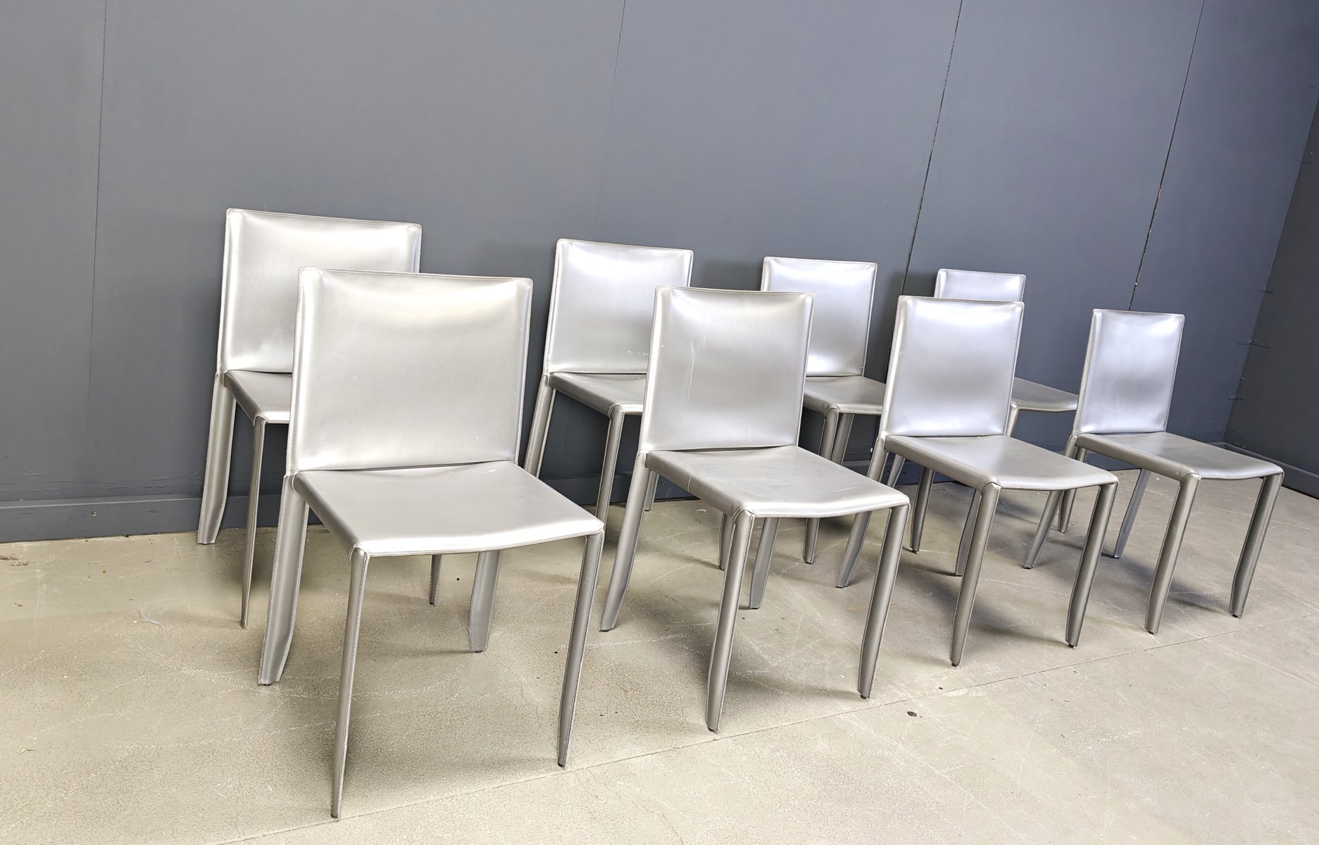 Grey Leather Dining Chairs from Cattelan, Italy, 1980s, Set of 8