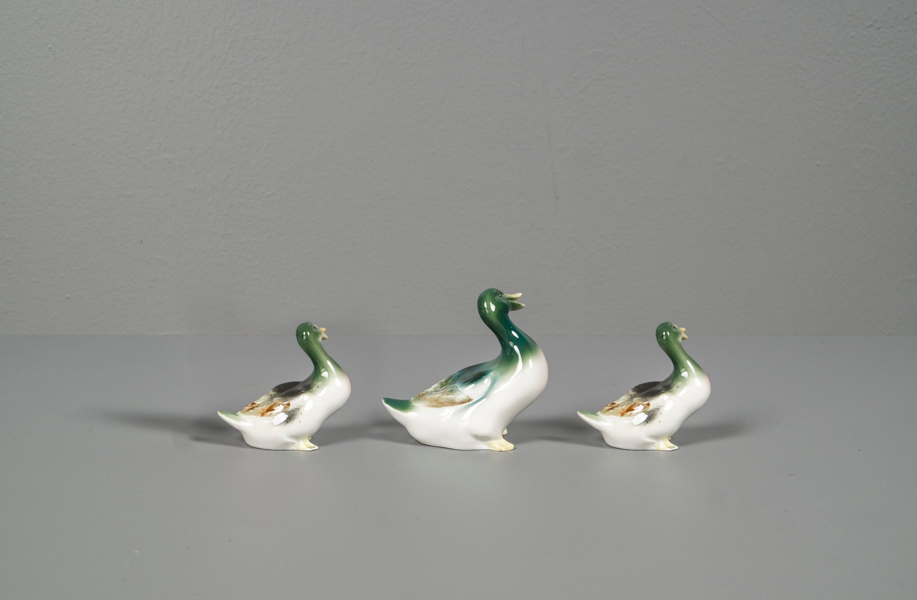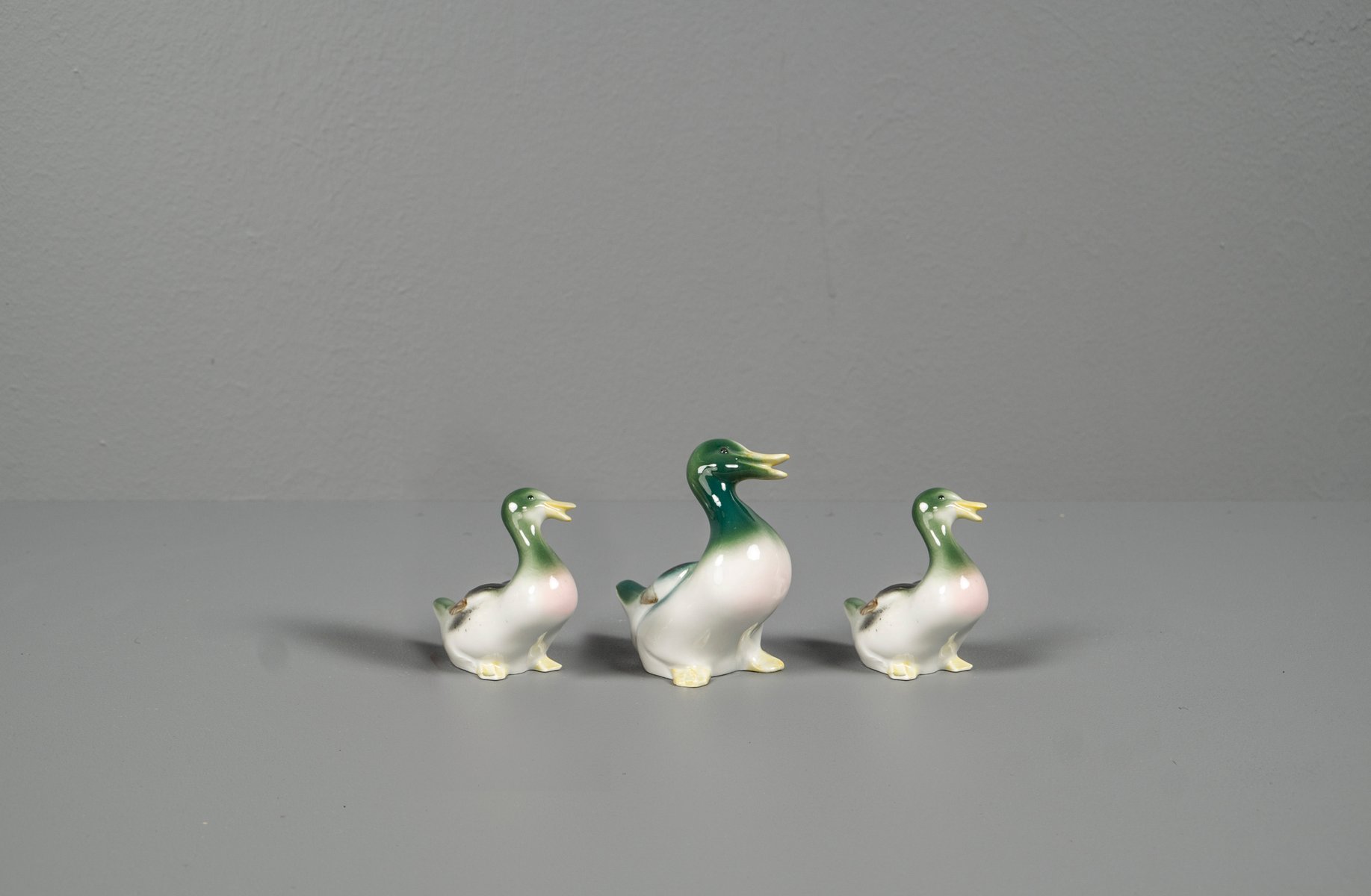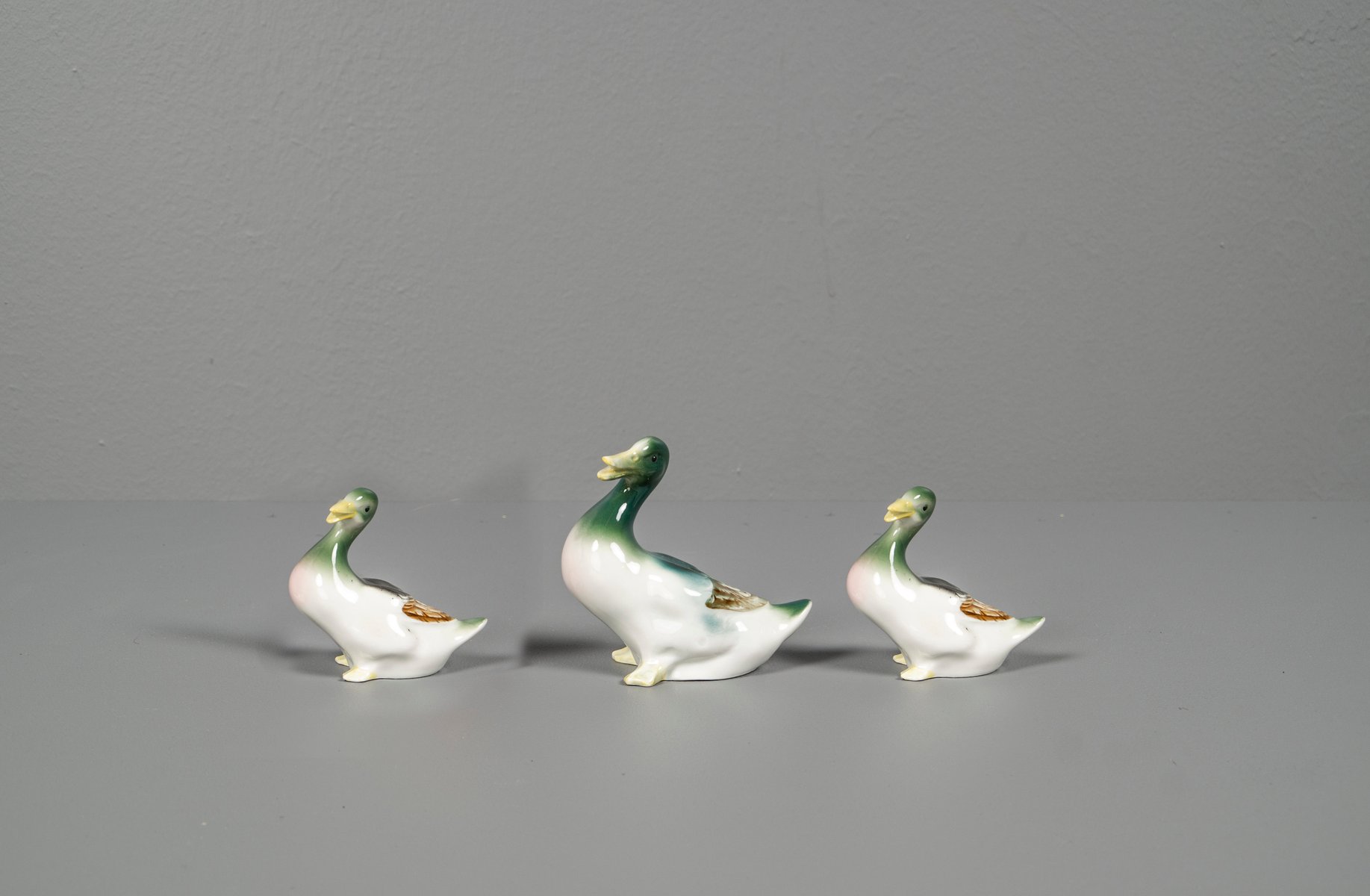 Hand-Painted Porcelain Collect Ducks from Gräfenthal, 1940s, Set of 3