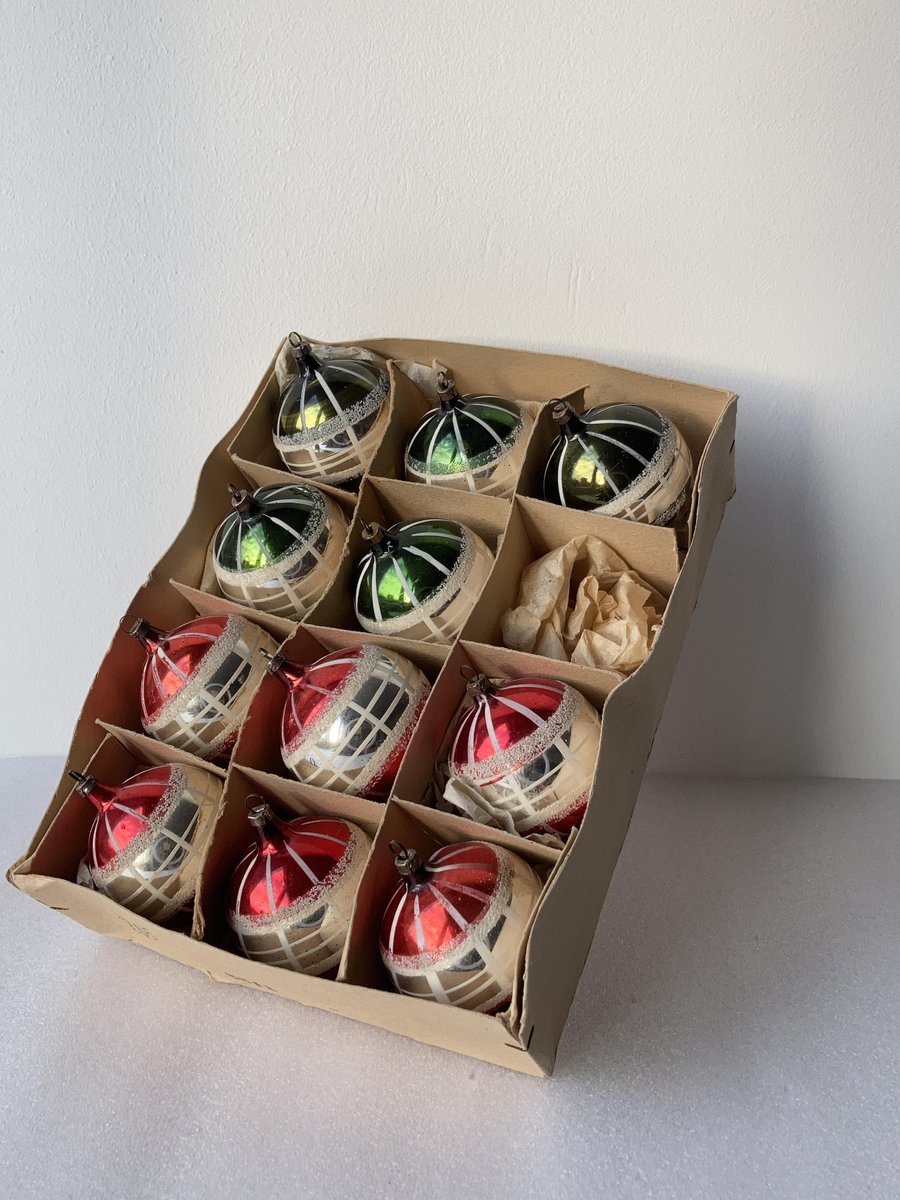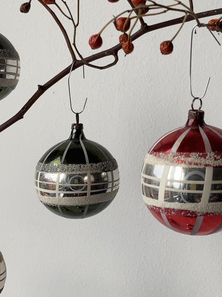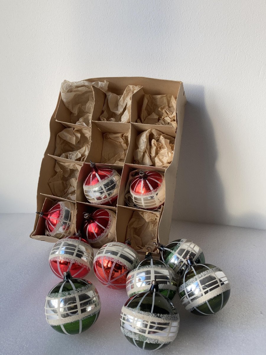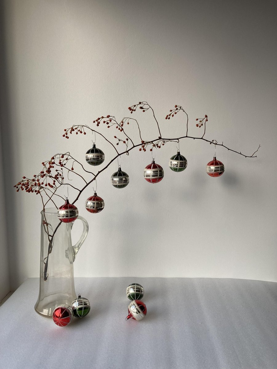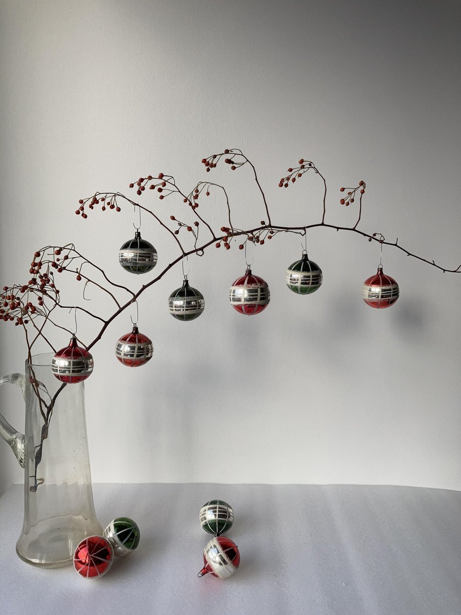 Hand-Painted Striped Glass Christmas Baubles, Germany, 1920s, Set of 11