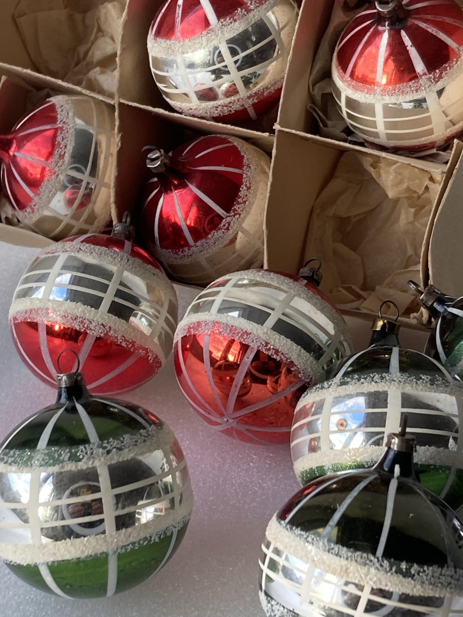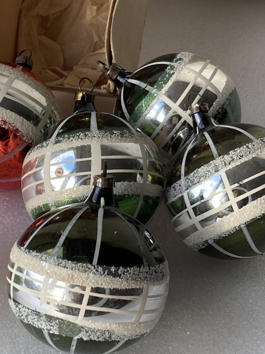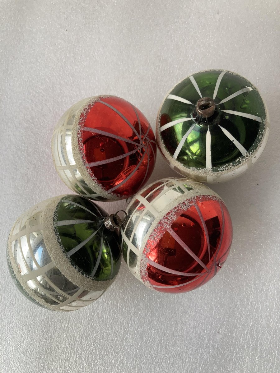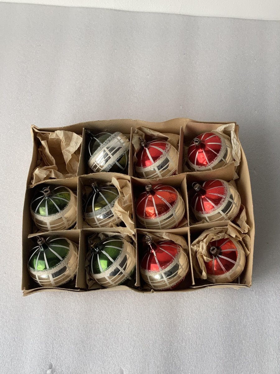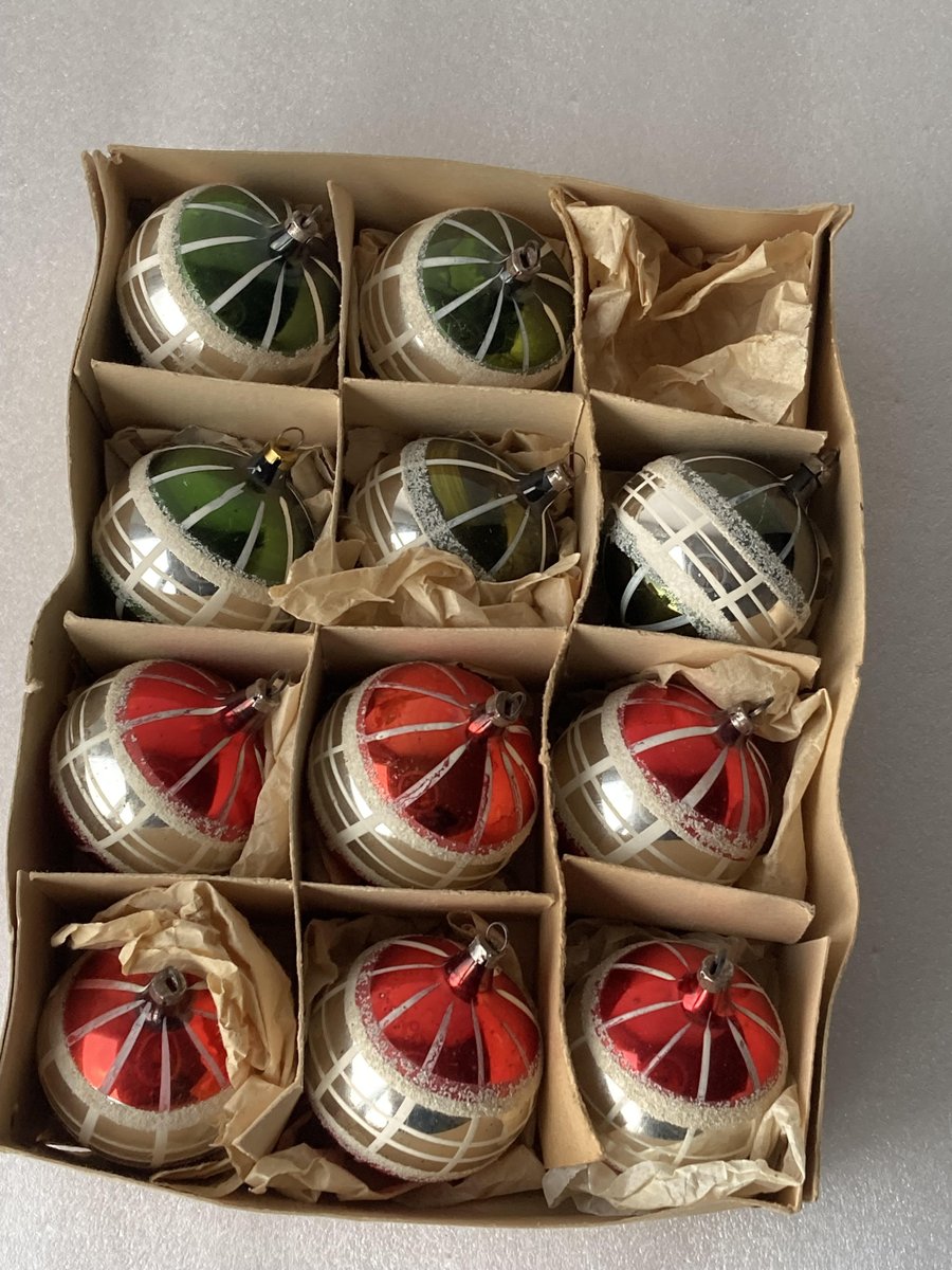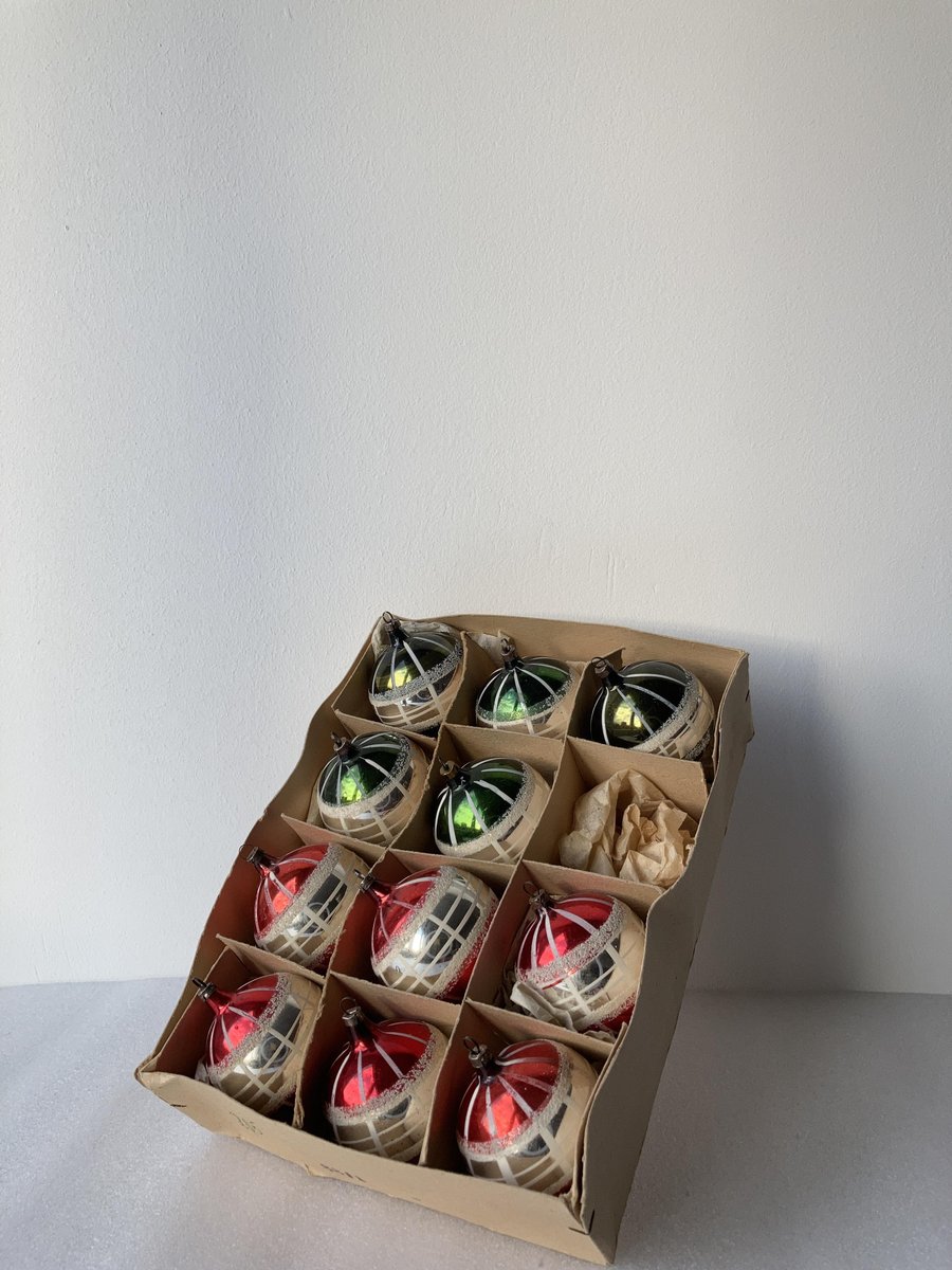 Hand-Painted Striped Glass Christmas Baubles, Germany, 1920s, Set of 11