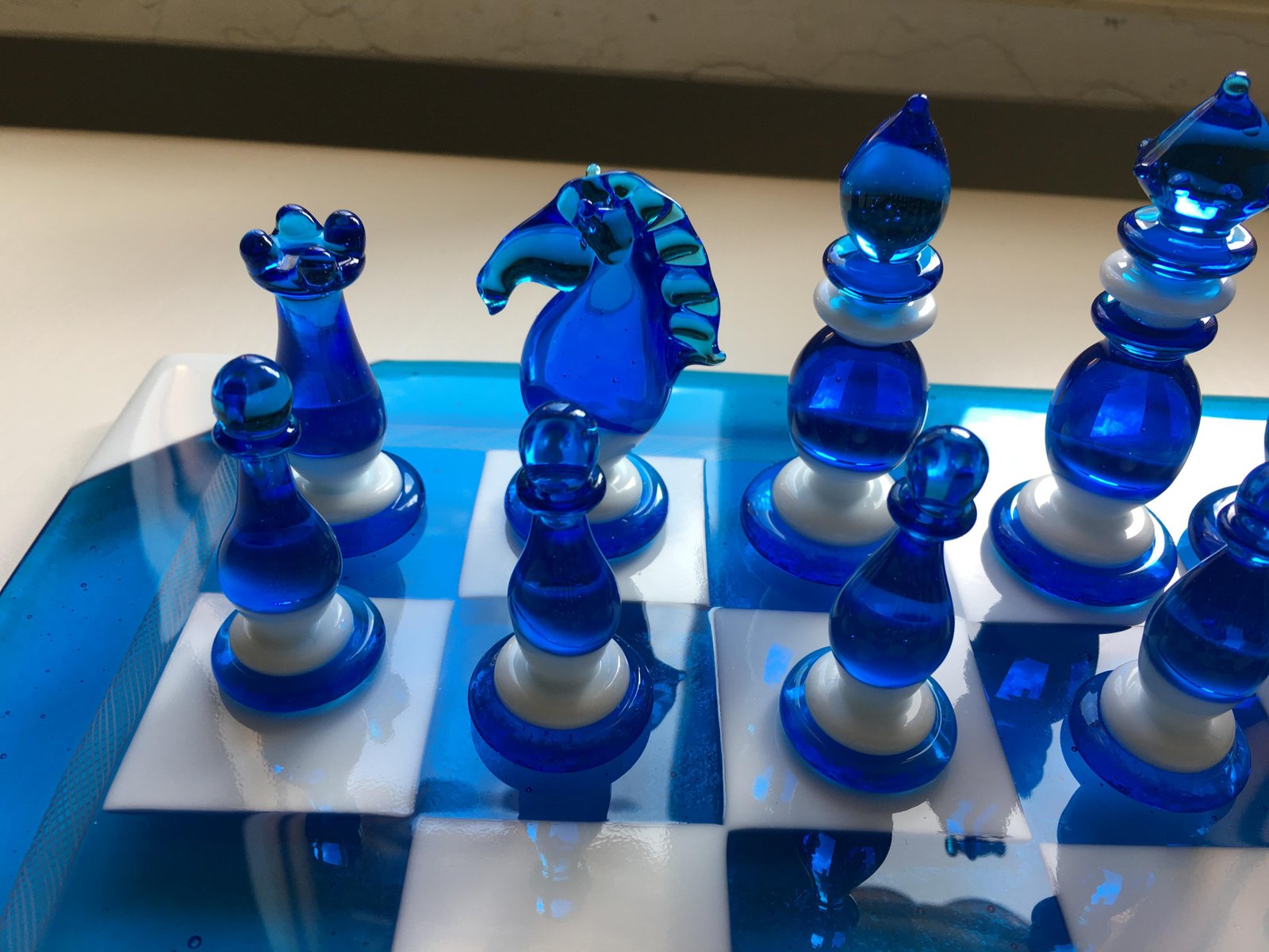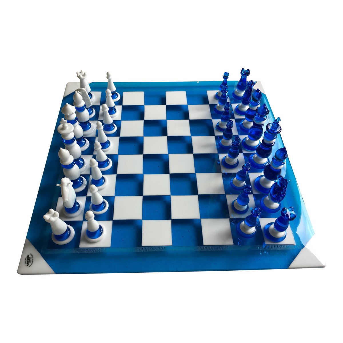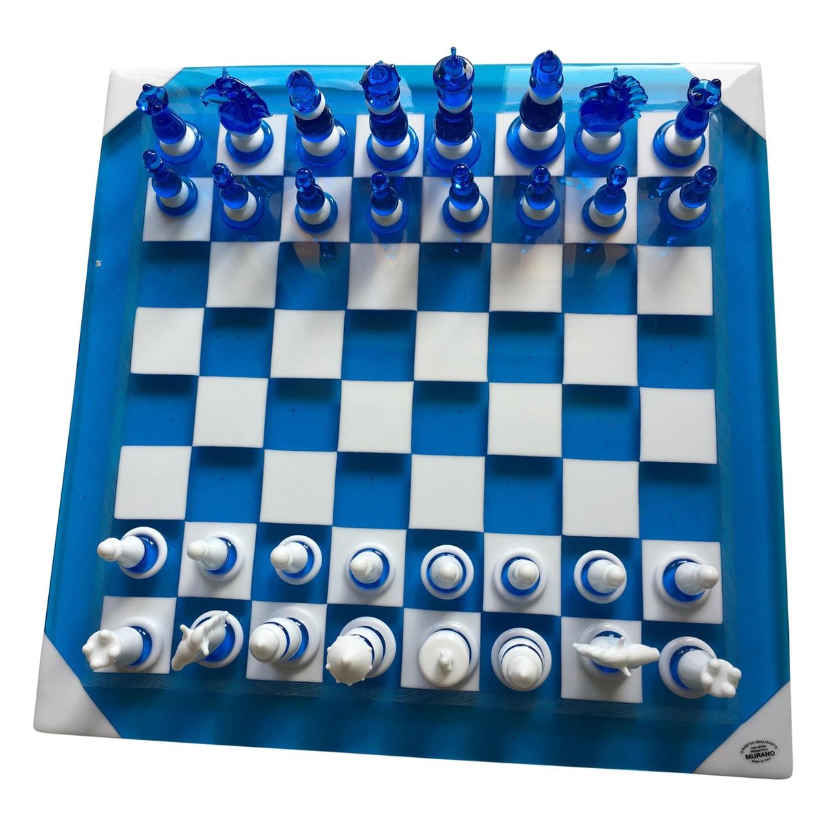 Handmade Italian Murano Art Glass Chess Board, Italian Glass from Simoeng, Venice, Set of 33