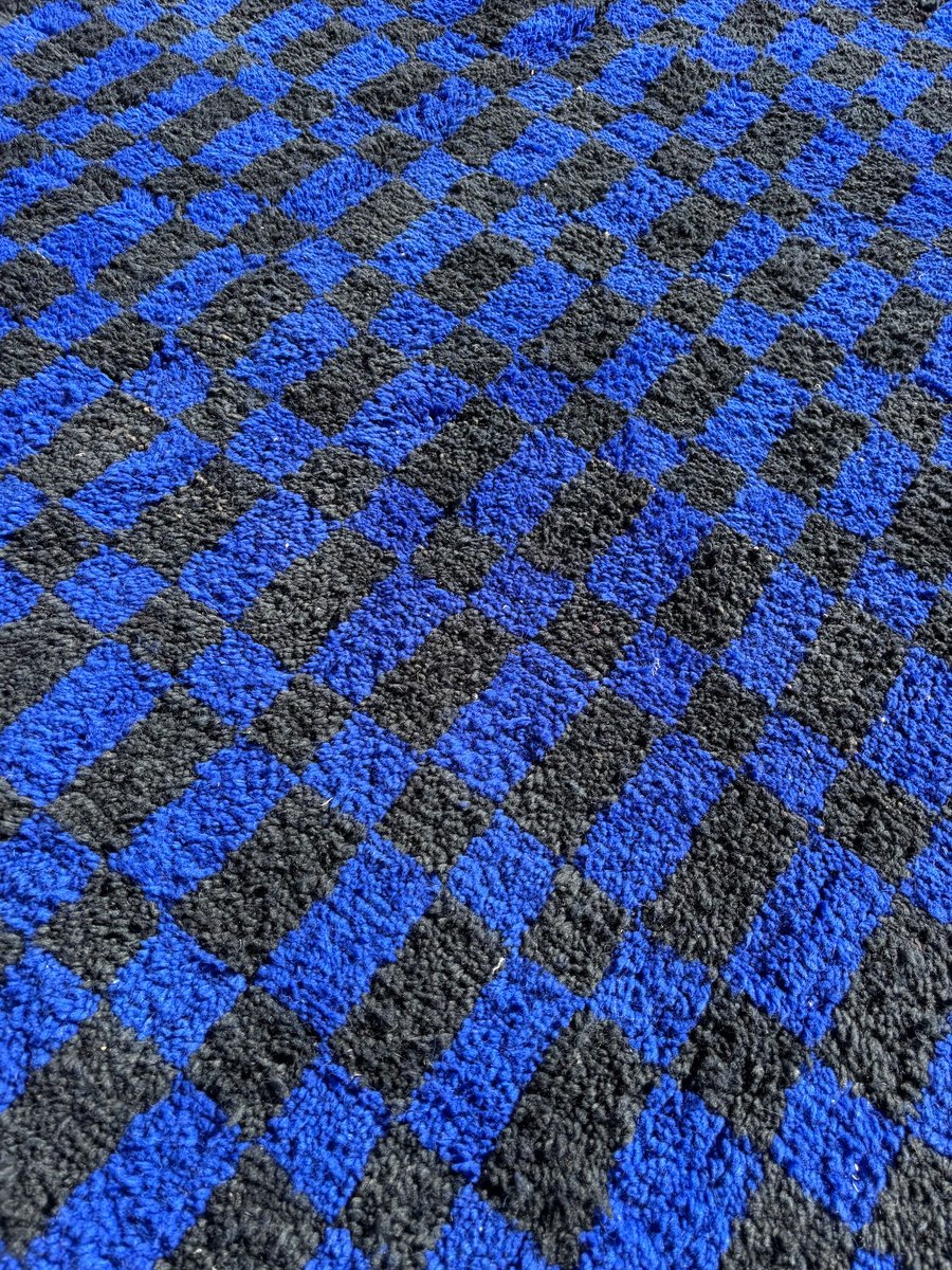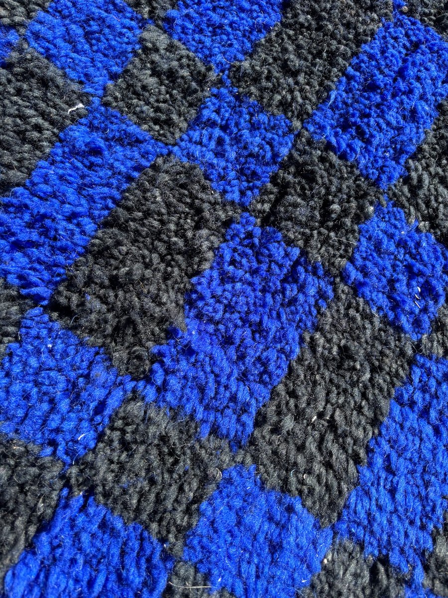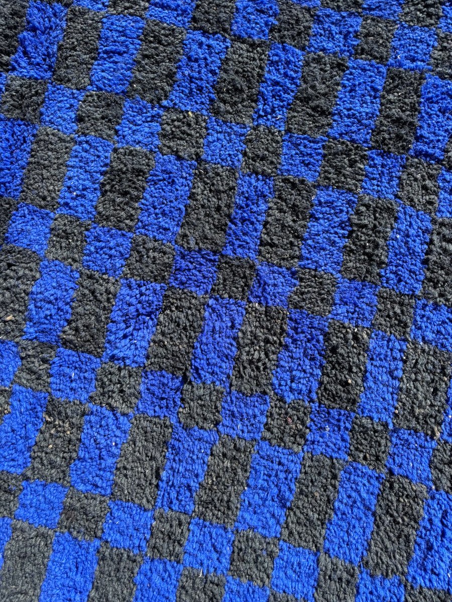 Large Moroccan Mrirt Rug in Hand-Knotted Black and Ochre Checkerboard Patterned Wool, 1990s