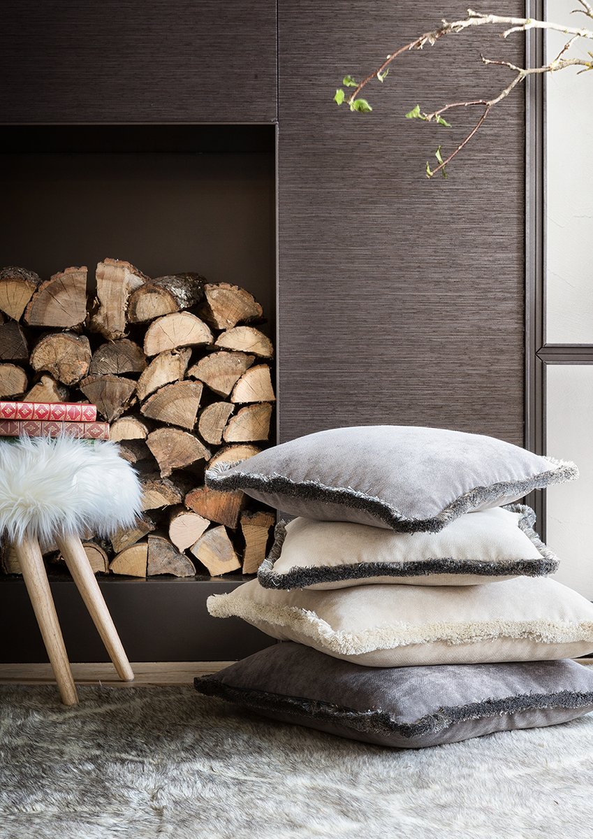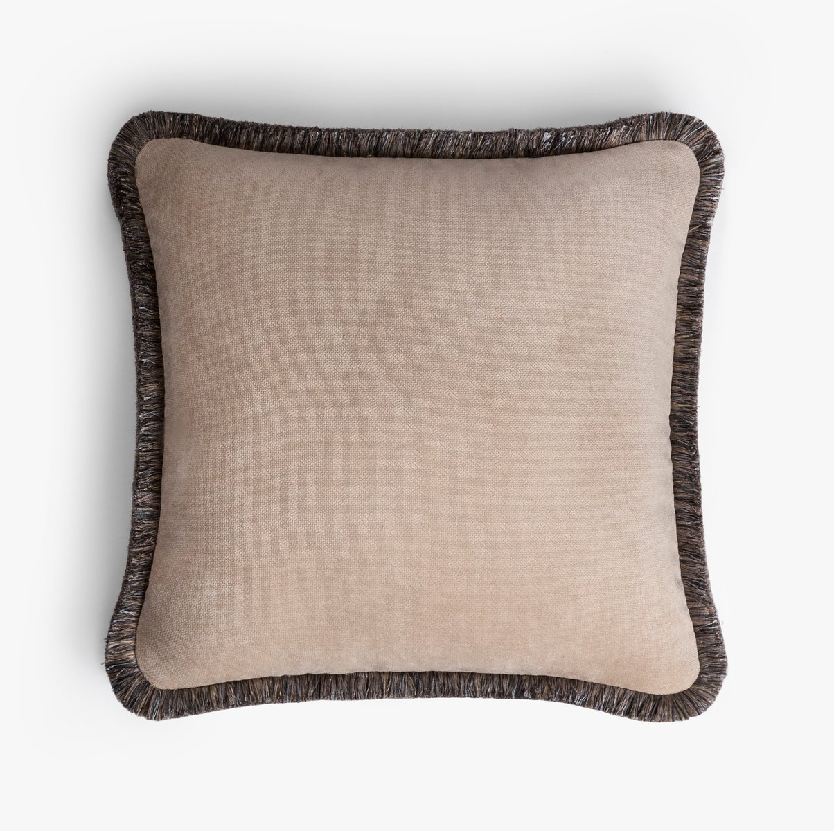 Happy Pillow Soft Velvet Cushion with Cappuccino Grey Fringes by Lorenza Briola for Lo Decor