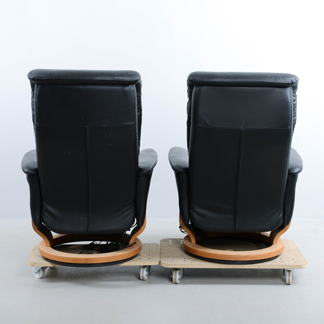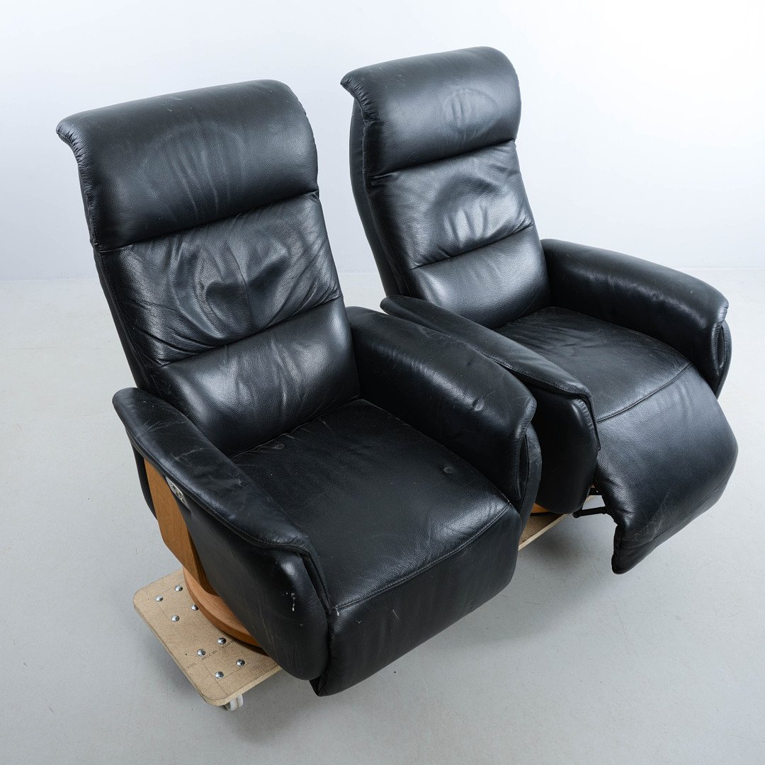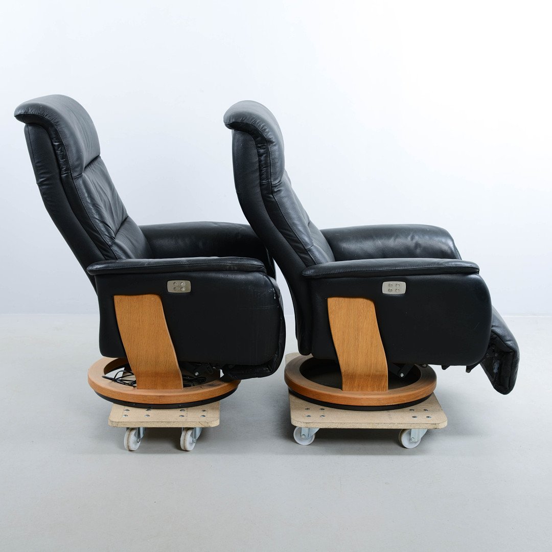 High-Back Leather Recliner Chairs, 1980s, Set of 2