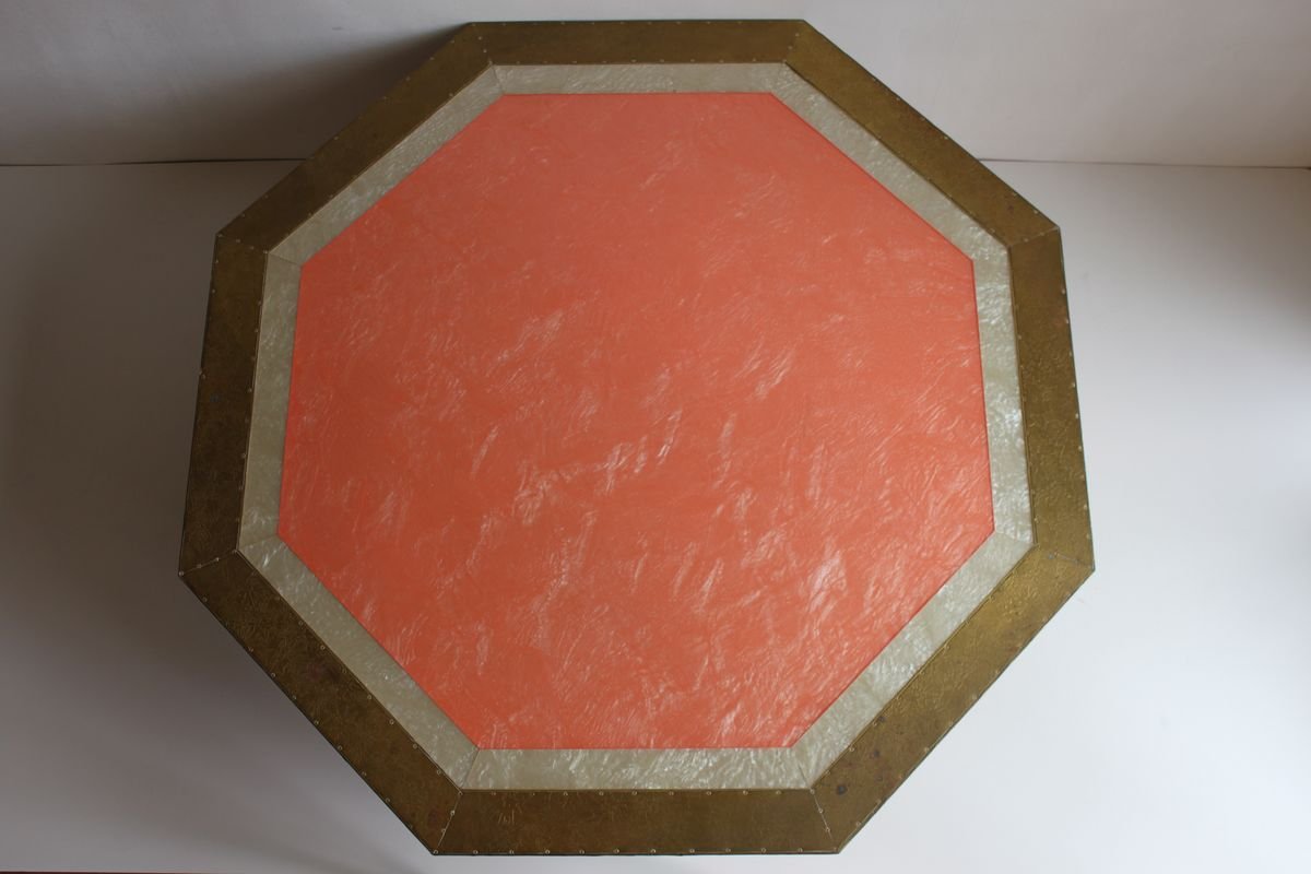 Hollywood Regency Brass & Pink Faux-Pearl Table by Rodolfo Dubarry, 1970s
