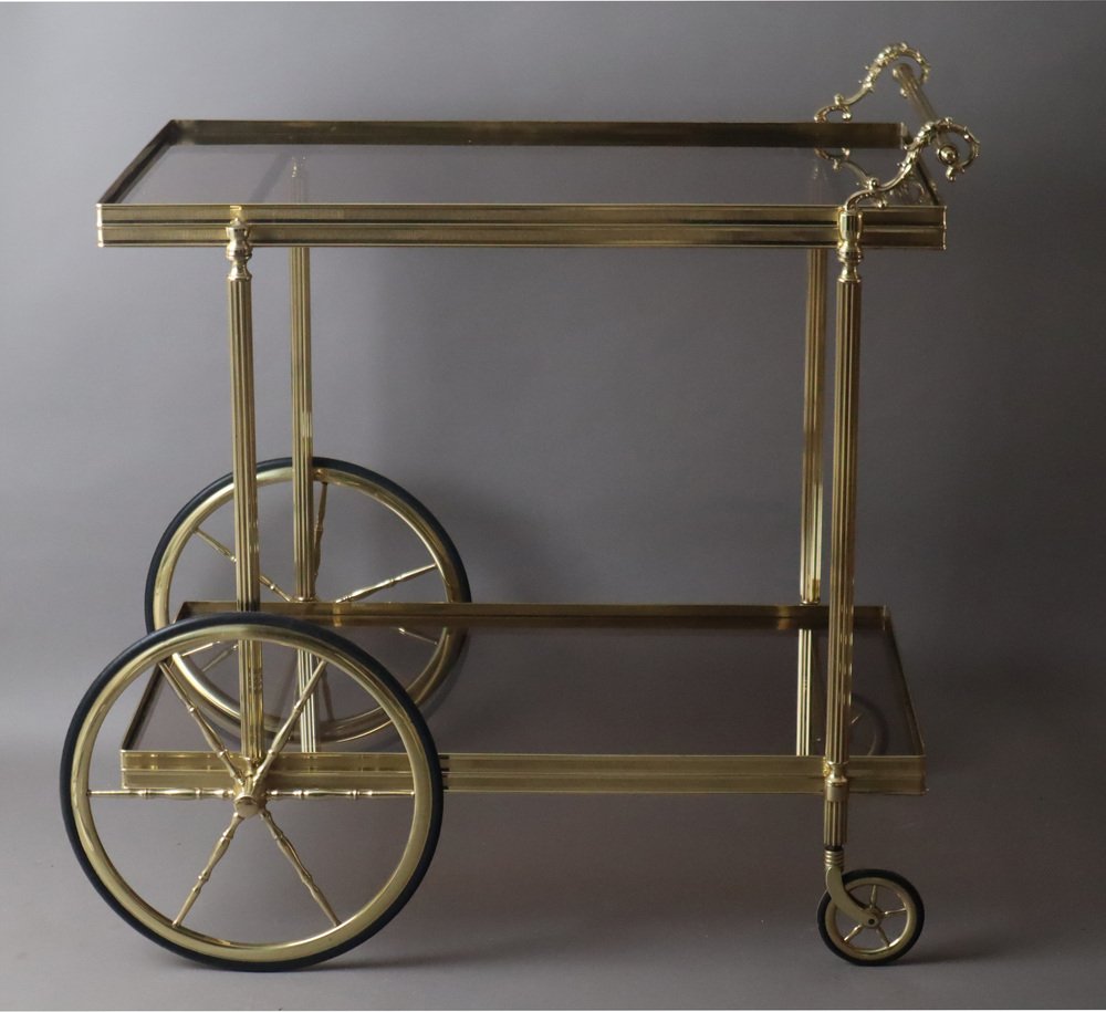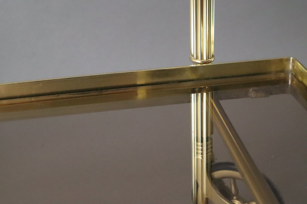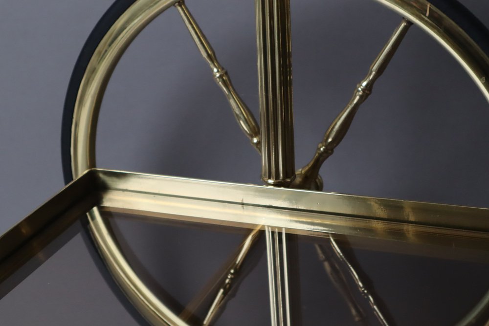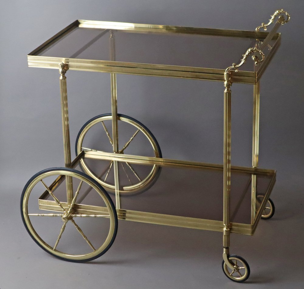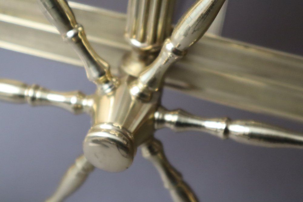 On the heels of such collaborations, Baguès continued in the interwar period to expand into the international consciousness and market, culminating in the establishment of retail branches in New York, Cairo, London, Brussels, and Rome. The atelier experienced a brief hiccup amid the Great Depression, passing into the hands of bankers, before Victor Baguès’s son, Jean-Pierre, repurchased the company in 1957 and revived its collection with new work. Standouts from this later oeuvre include the Perroquet gilt-metal sconces with cut crystal elements; the Imitation Bamboo Coffee Table; and a Maison Charles-designed metal floor lamp—all designed ca. 1960s.
