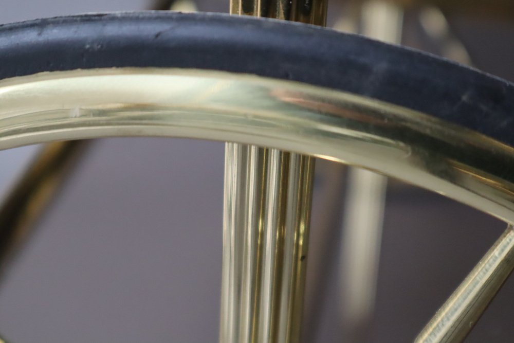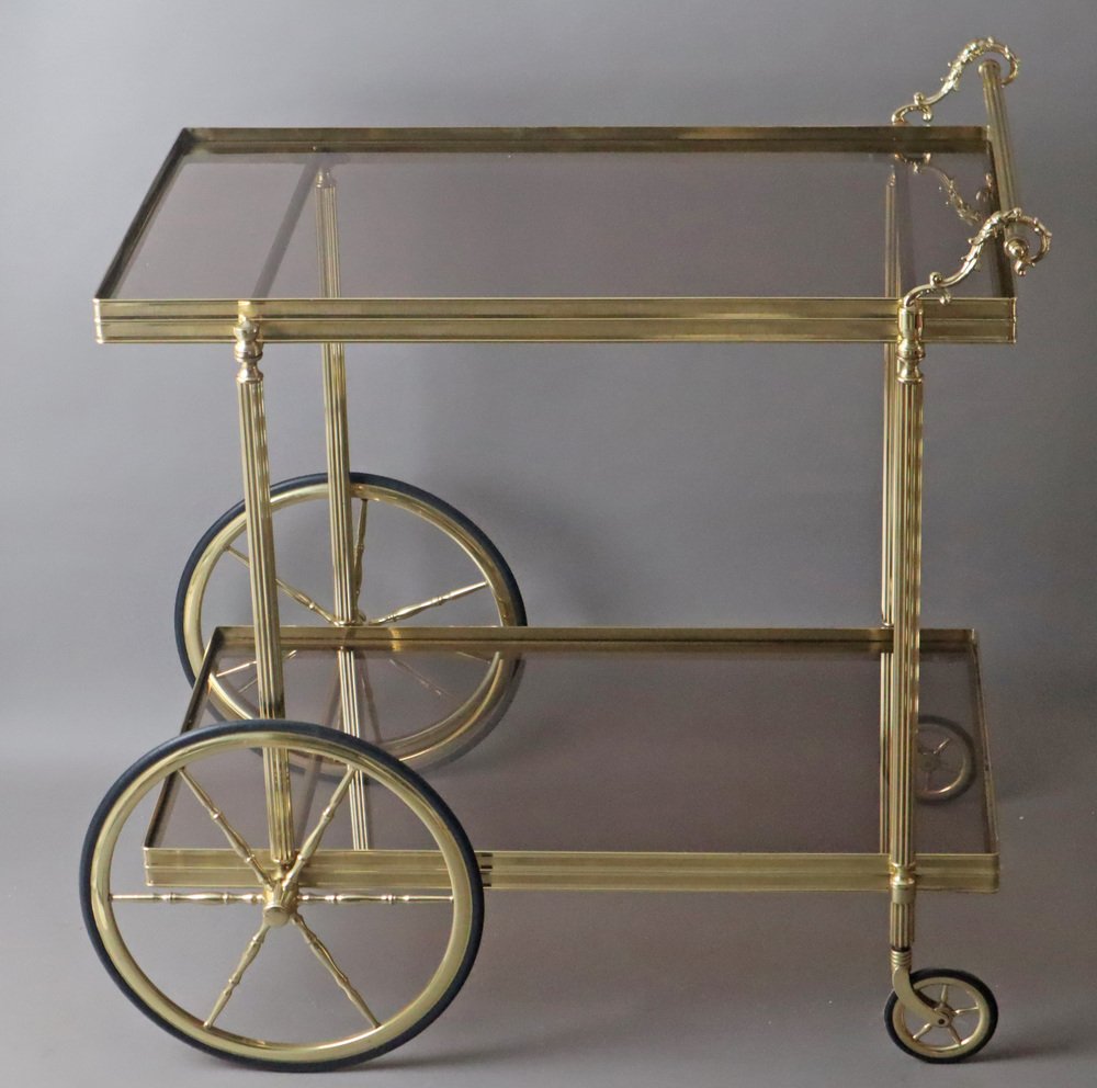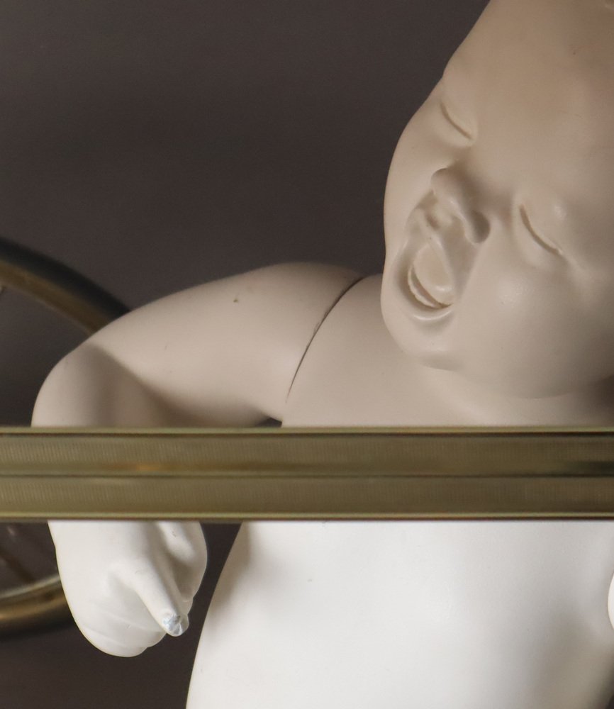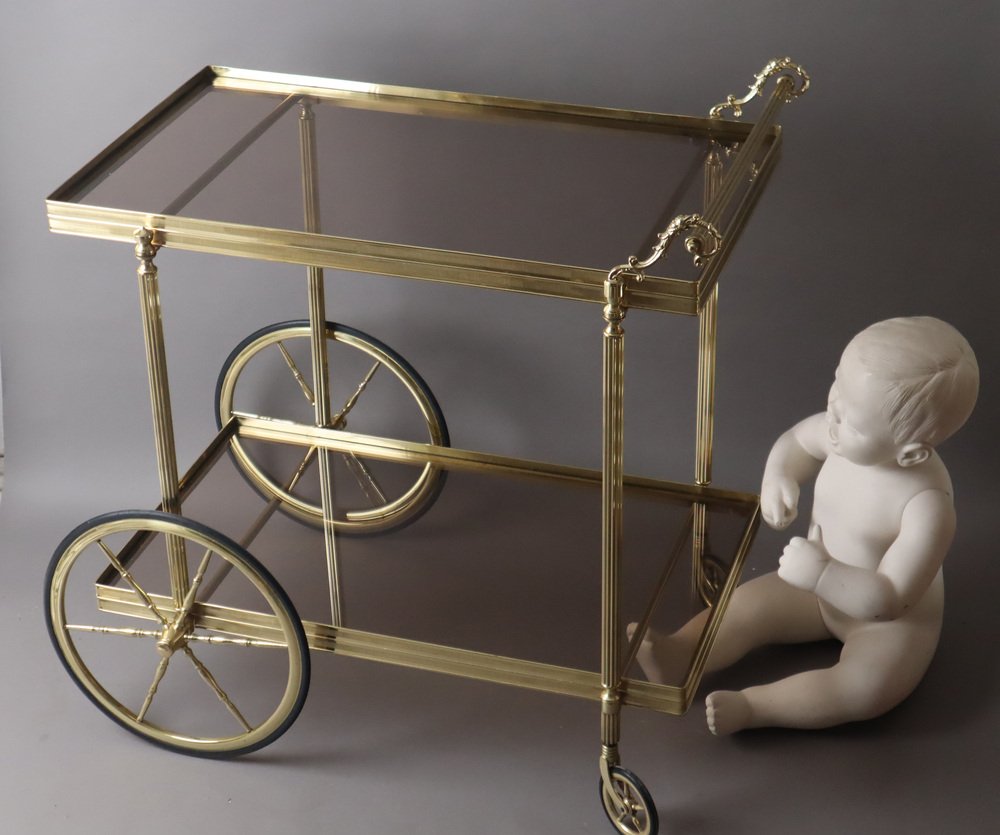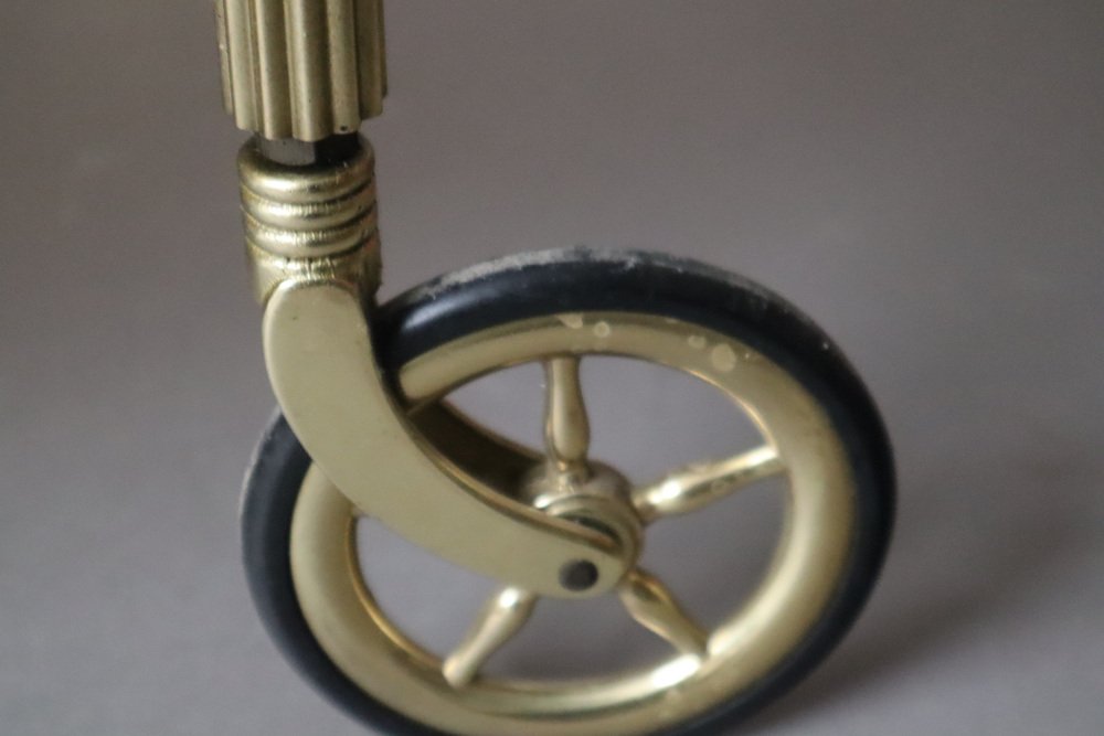 On the heels of such collaborations, Baguès continued in the interwar period to expand into the international consciousness and market, culminating in the establishment of retail branches in New York, Cairo, London, Brussels, and Rome. The atelier experienced a brief hiccup amid the Great Depression, passing into the hands of bankers, before Victor Baguès’s son, Jean-Pierre, repurchased the company in 1957 and revived its collection with new work. Standouts from this later oeuvre include the Perroquet gilt-metal sconces with cut crystal elements; the Imitation Bamboo Coffee Table; and a Maison Charles-designed metal floor lamp—all designed ca. 1960s.
