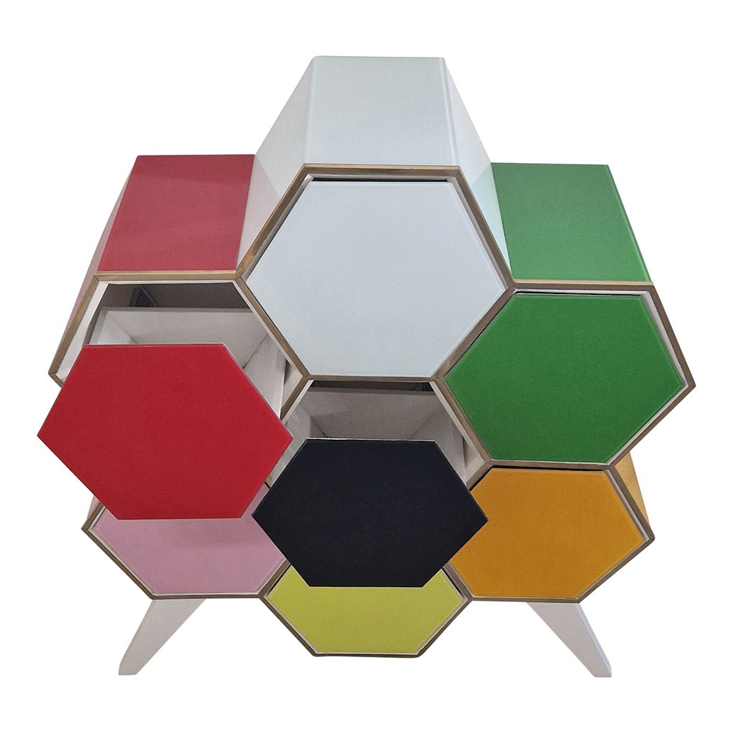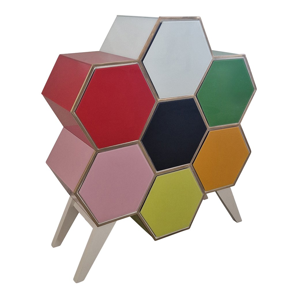 Honeycomb Chest of Drawers in Colored Glass, 1980s