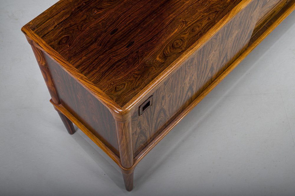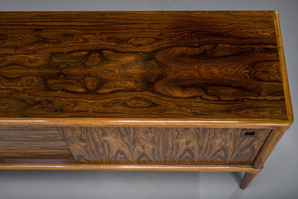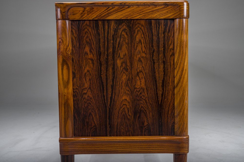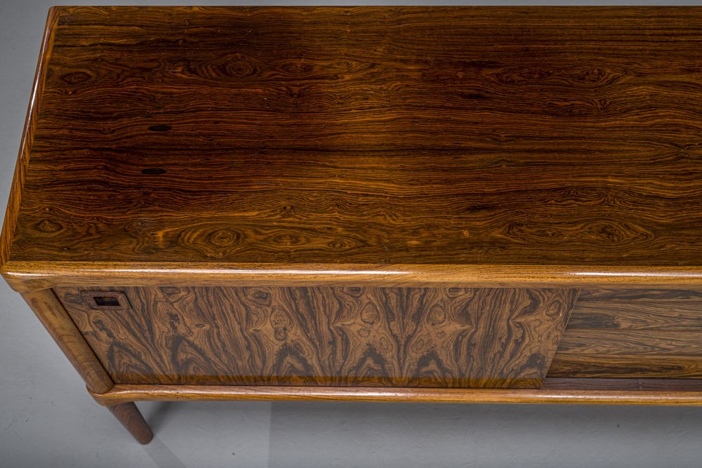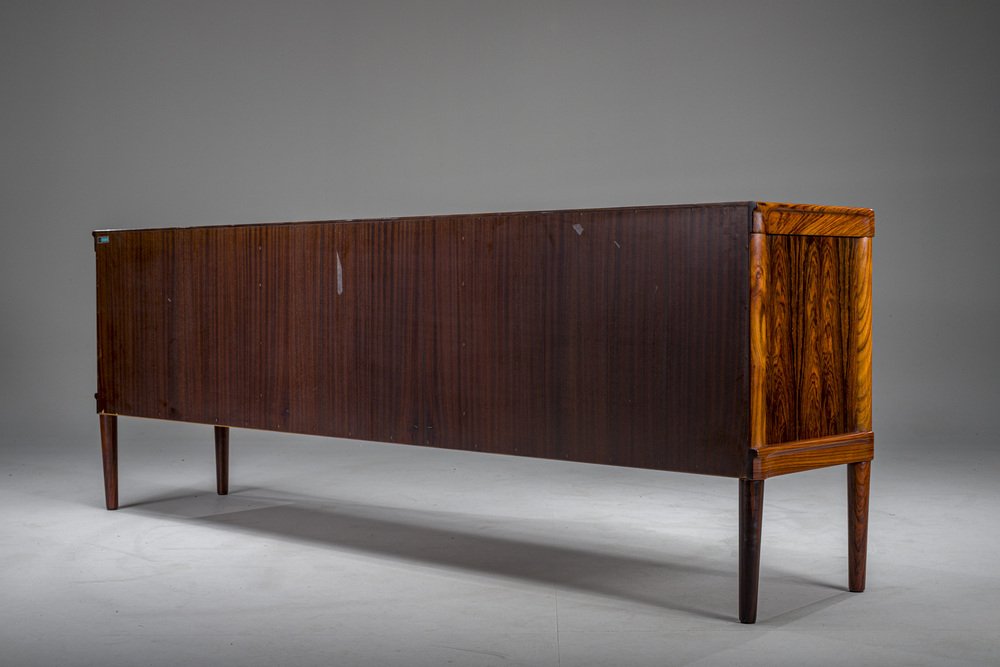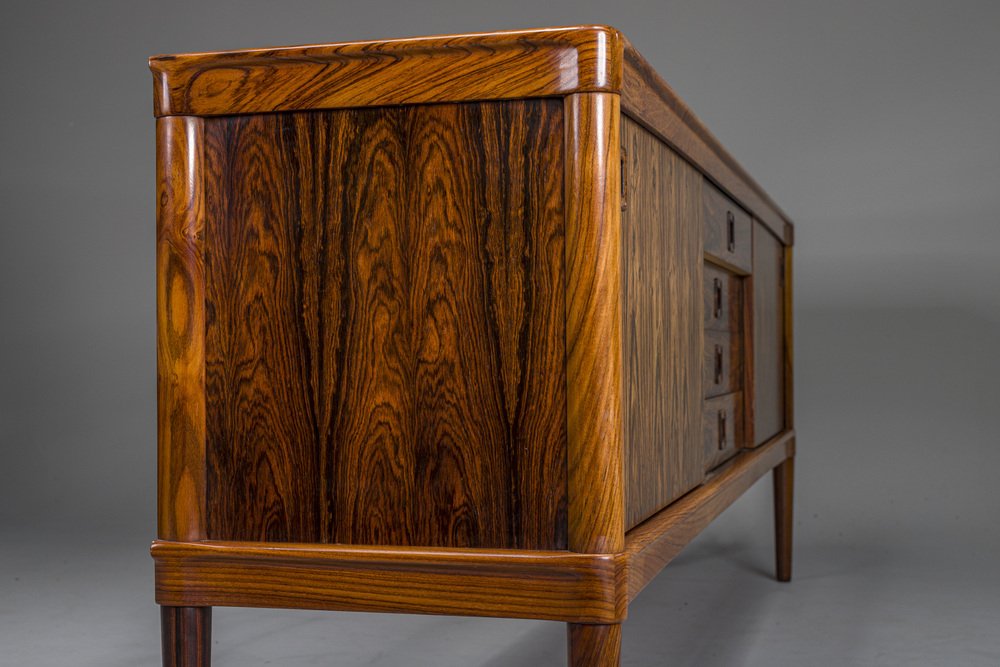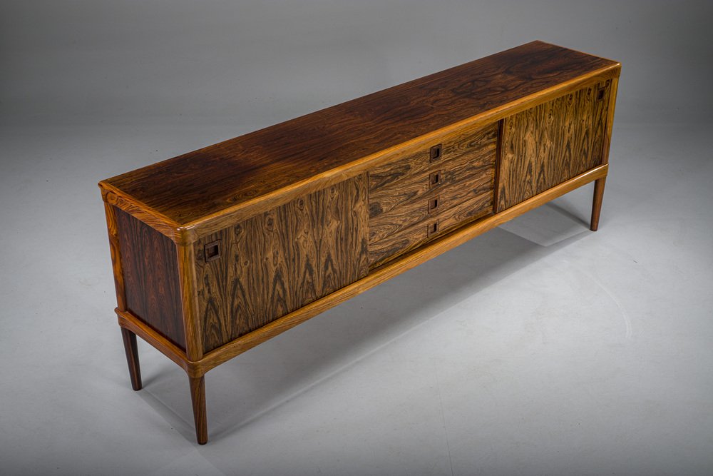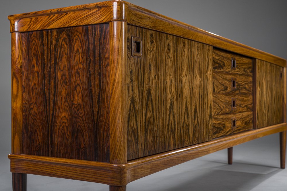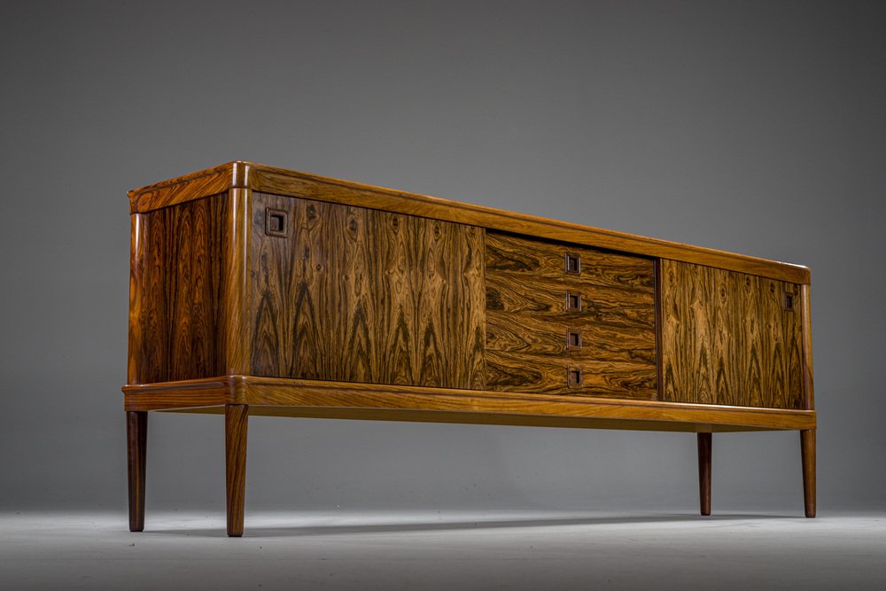 In its heydey, Bramin collaborated with many well respected Danish designers, such as Johannes Andersen, Hans Olsen, Kurt Østervig, and Frank Reenskaug. However, Bramin’s most successful relationship was undoubtedly with H.W Klein, a Norwegian-born designer who moved to Denmark in 1960 to work for the company. Klein's most notable design is the Ønskestolen (mid-1960s), a padded leather lounge chair on a five-star swivel base, but he was also known for wide range of living room suites, dining suites, and storage options. Other memorable Bramin pieces include the classic Rocking Chair No. 182 by Reenskaug (circa 1958) and the idiosyncratically asymmetrical Chair No. 168 by Olsen (circa 1956).