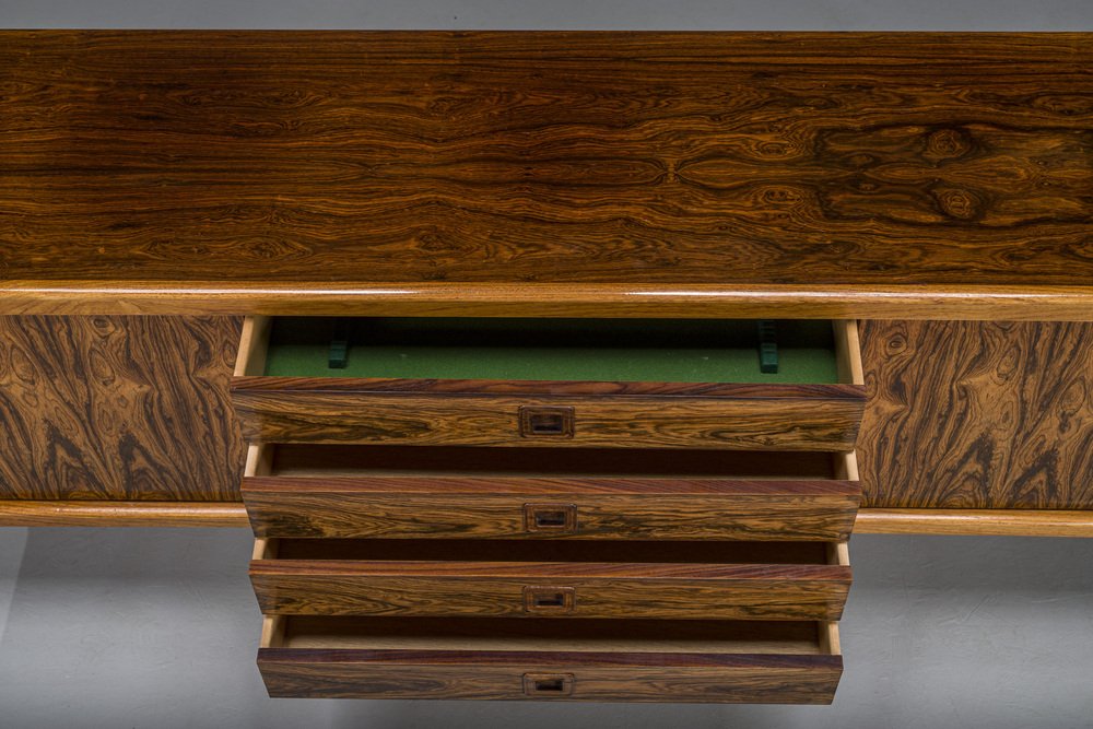 From Bramin’s catalogues and advertisements, we can ascertain that N.A. Jørgensen launched the Bramin brand around 1957 or 1958. In the early 1960s, Bramin's ad campaigns promised "Deres garanti for kvalitet form og function" or “Quality, form, and function: guaranteed,” using strong, modern imagery. From then on, the more traditionally-oriented N.A. Jørgensens Møbelfabrik took a back seat. It was not until the mid-1960s, however, that the striking Bramin logo was created, with the rounded, lowercase central “a” standing out from the remaining block letters.