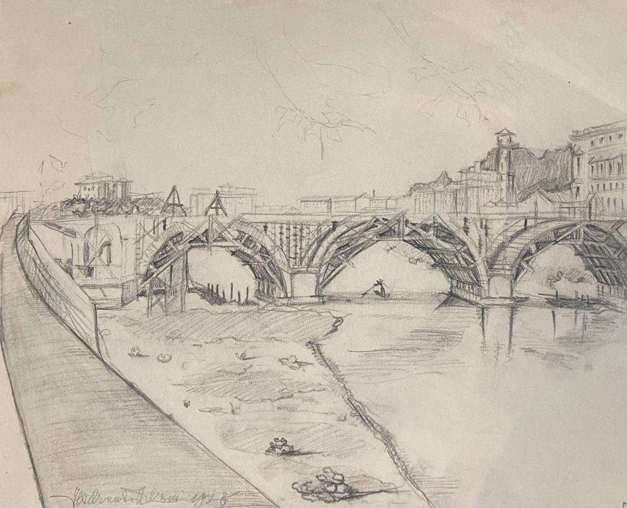 Ildebrando Urbani - Landscape - Original Pencil Drawing - Mid-20th Century