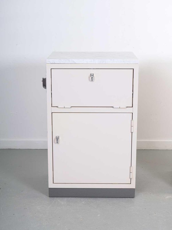 Industrial Cabinets with Marble Tops, 1950s, Set of 2