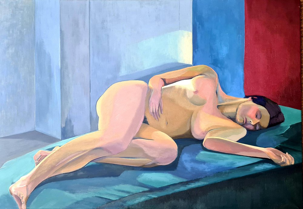 Isabelle Pardoe, Colorful Reclining Nude Woman, 2000s, Oil on Canvas