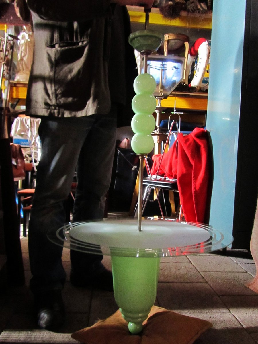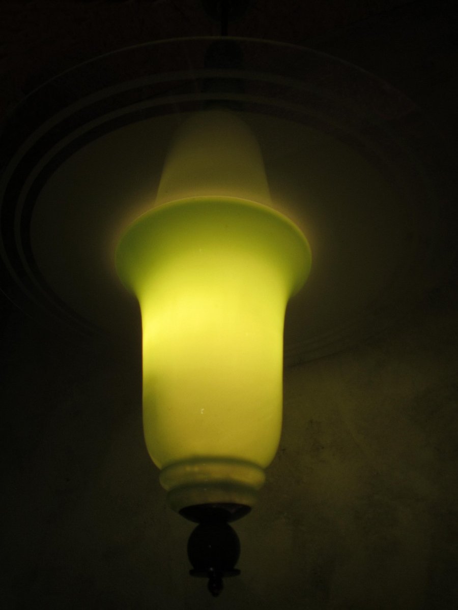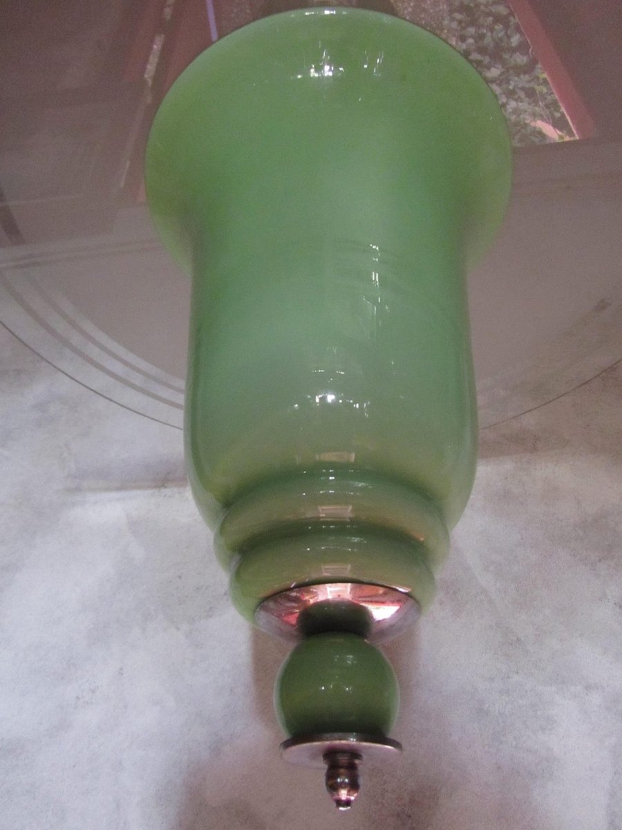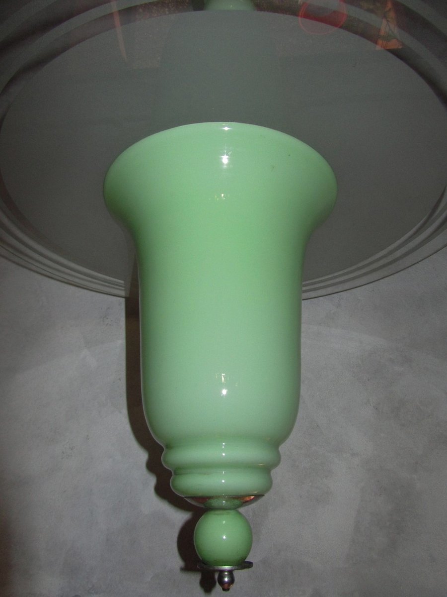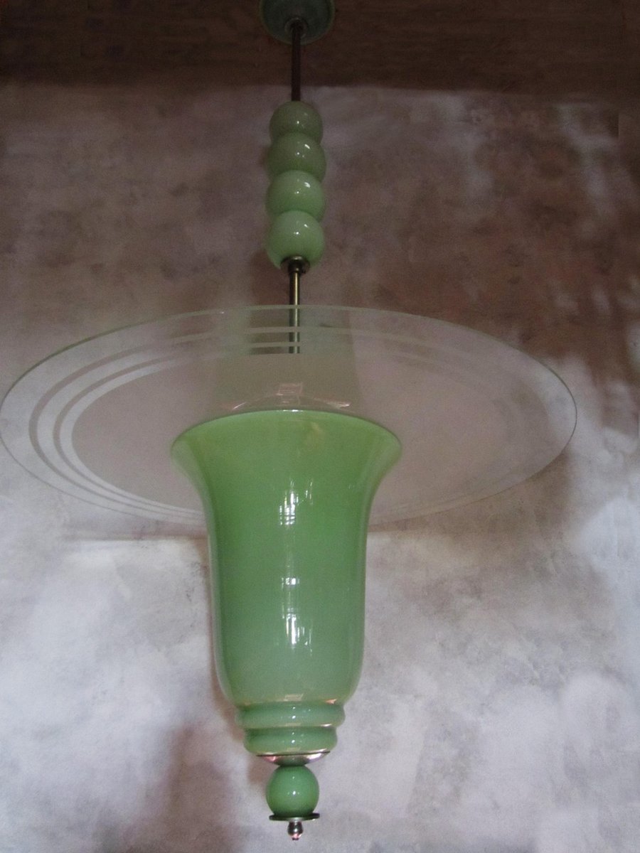 Italian Art Deco Jade Colored Glass Ceiling Lamp, 1930s