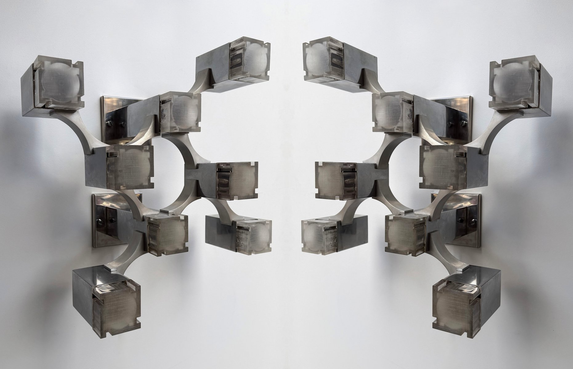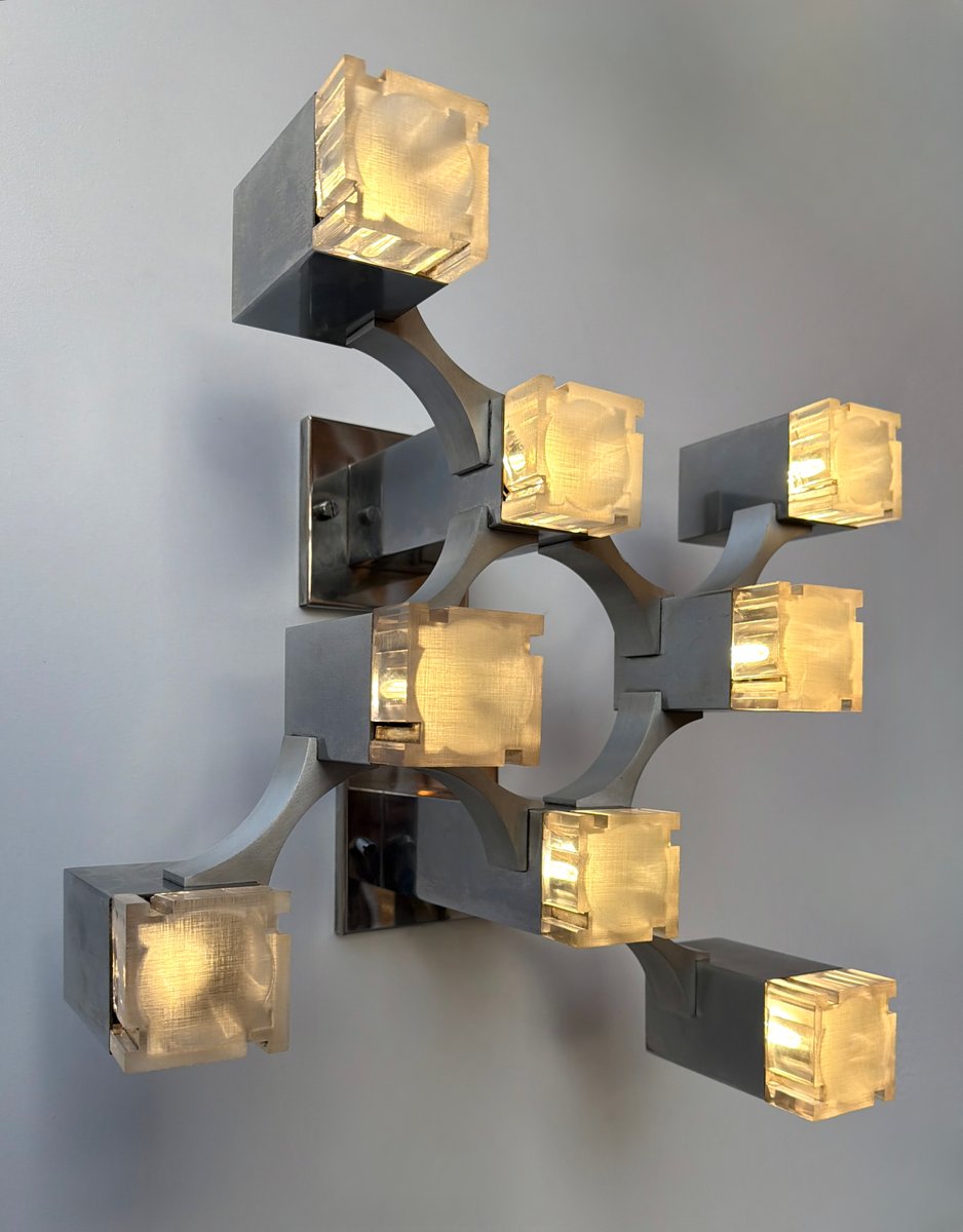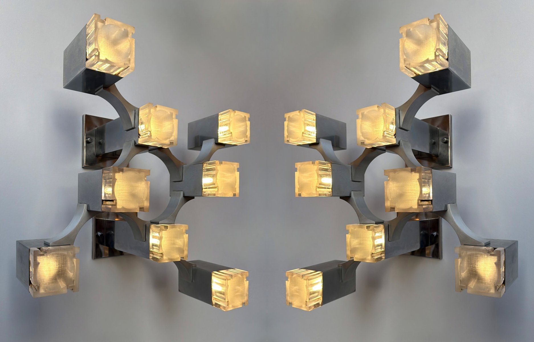 Italian Cubic Sconces in Metal and Murano Glass by Sciolari, 1970s, Set of 2