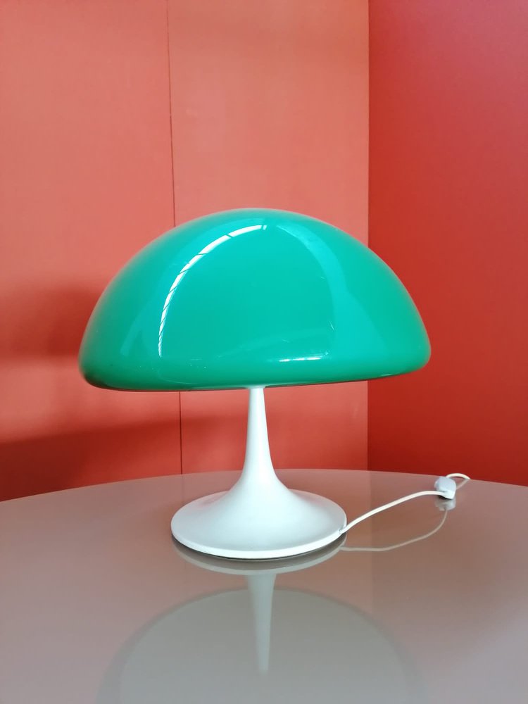 Since its inception, Martinelli Luce has collaborated with many talented and renowned designers including Gae Aulenti, , Michel Bouquillon, Marco De Santi – Studio Natural, Angelo Micheli, Luc Ramael, Karim Rashid, Marc Sadler, Brian Sironi, Studio 4P1B, Studio Lucchi & Biserni, Studio Orlandini, Massimo and Lella Vignelli, and many others. Notable designs include Aulenti ‘s Pipistrello (1965), Ruspa (1968) table lamps; and Sergio Asti’s Profiterolle (1968) and Scafandro (1972) table lamps.
