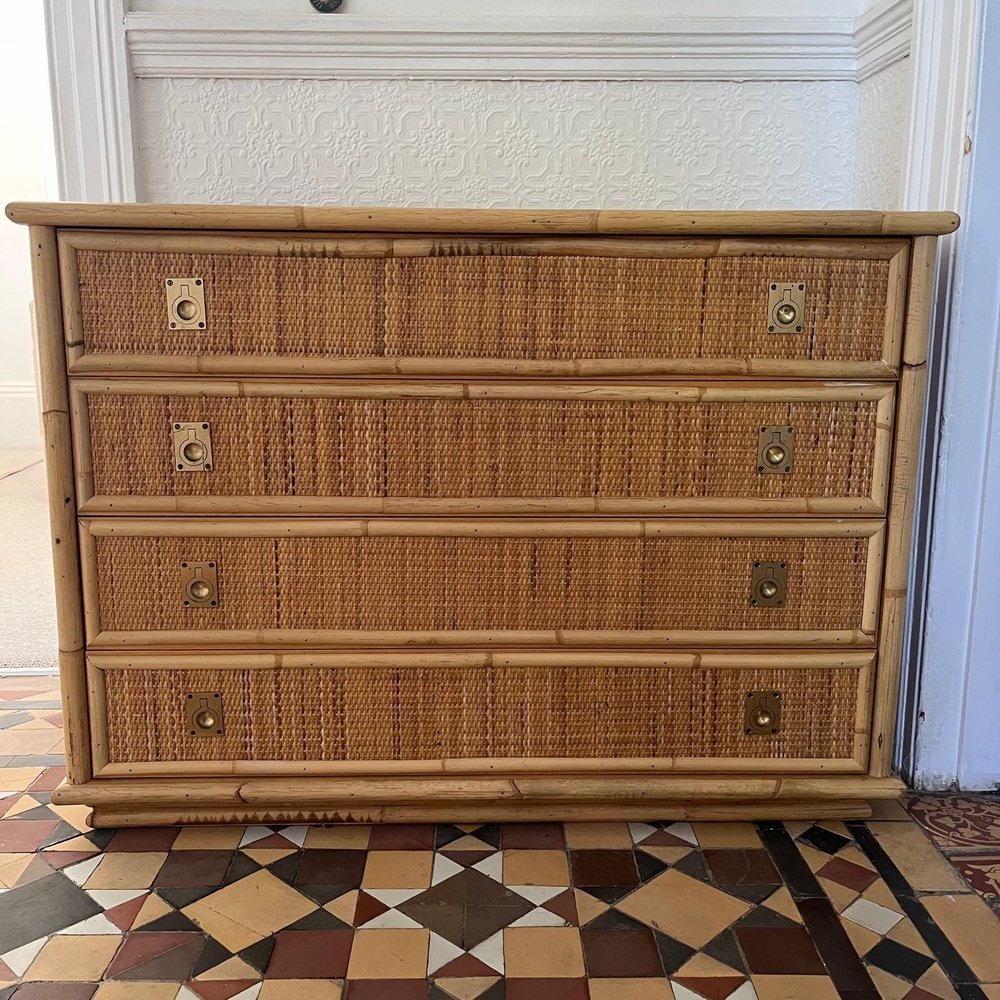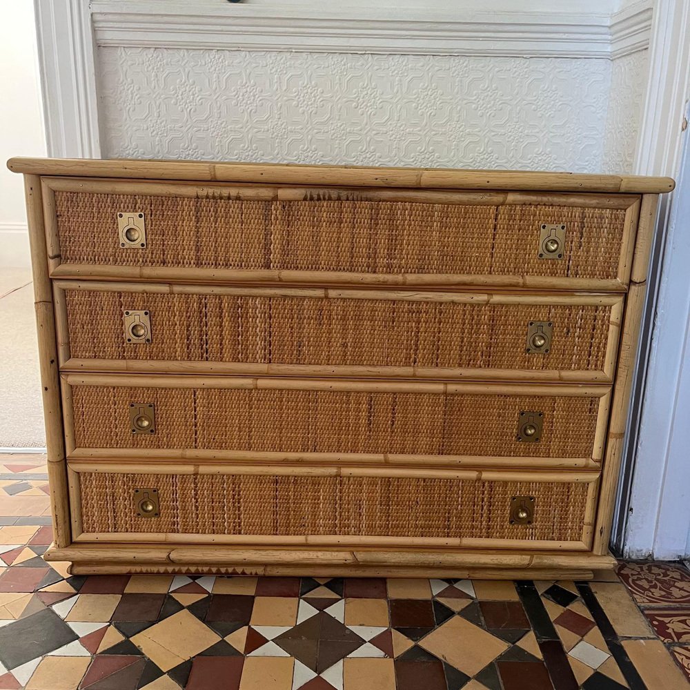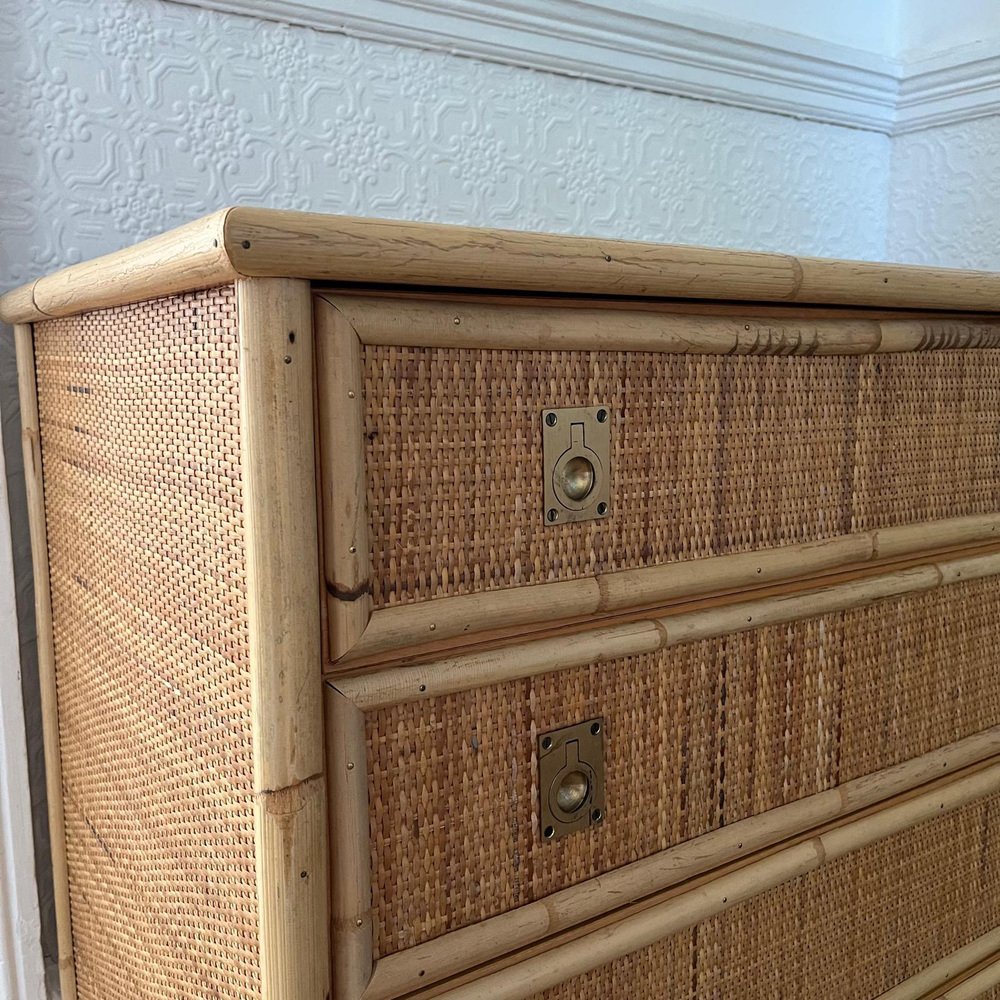Italian Rattan and Bamboo Chest of Drawers, 1970s