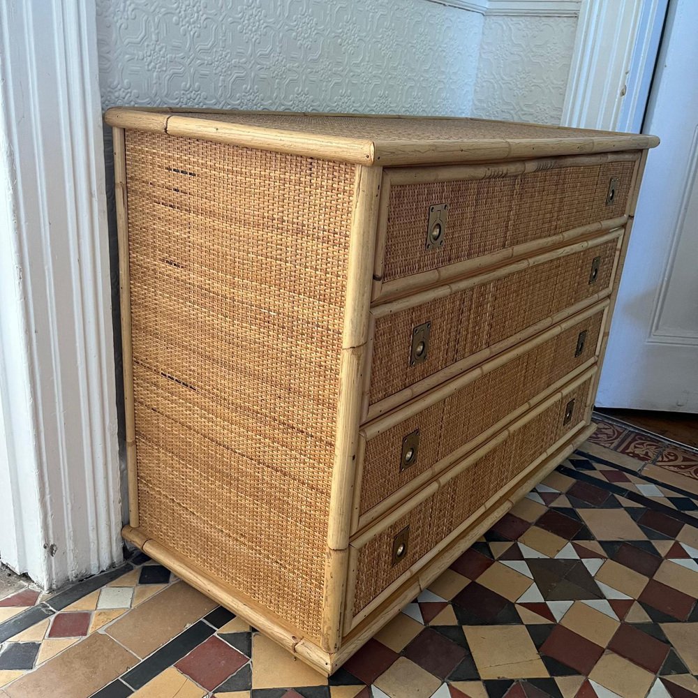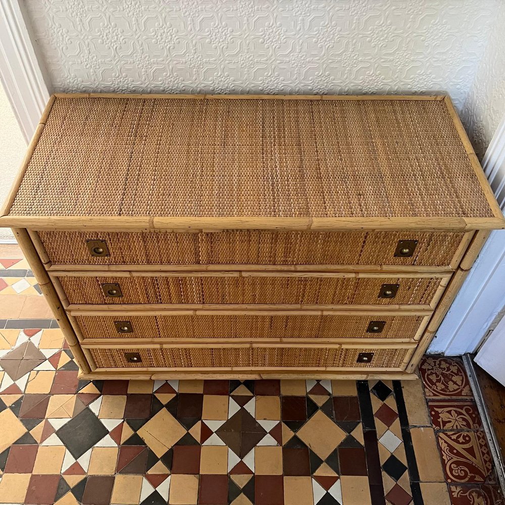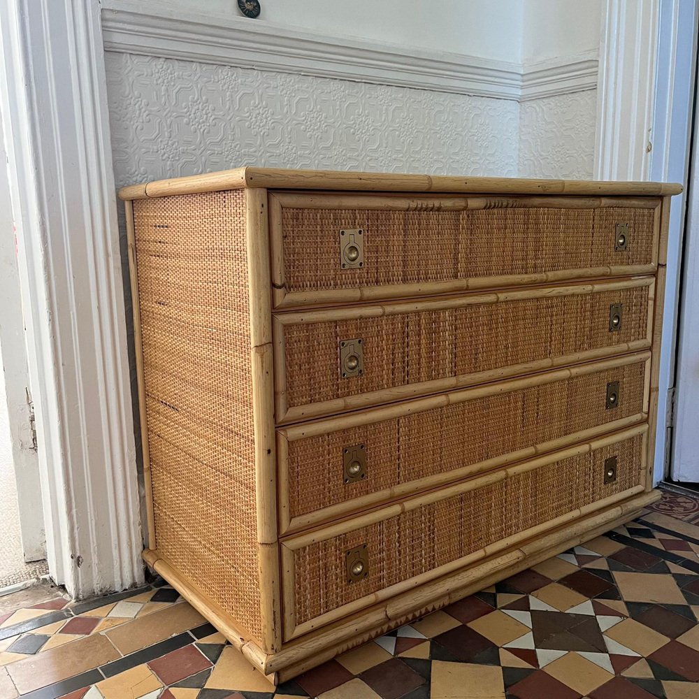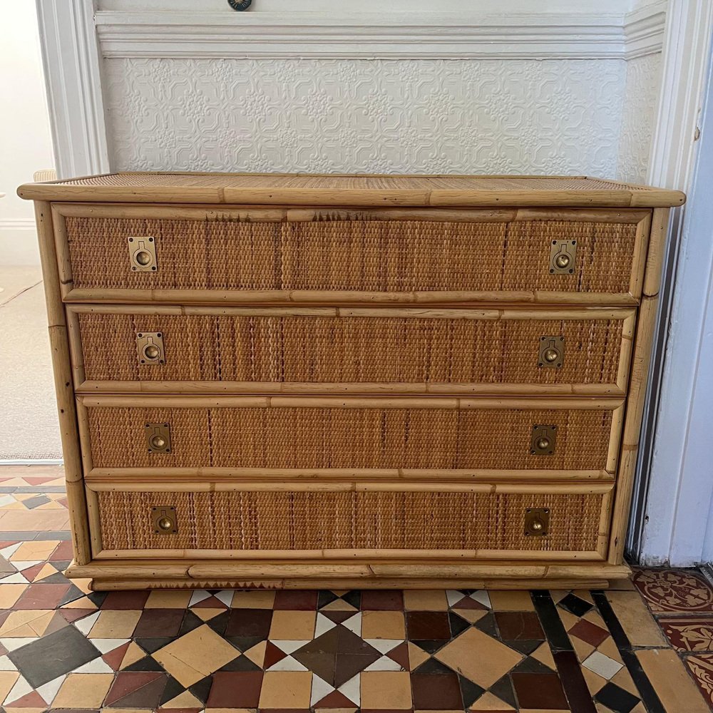 Italian Rattan and Bamboo Chest of Drawers, 1970s