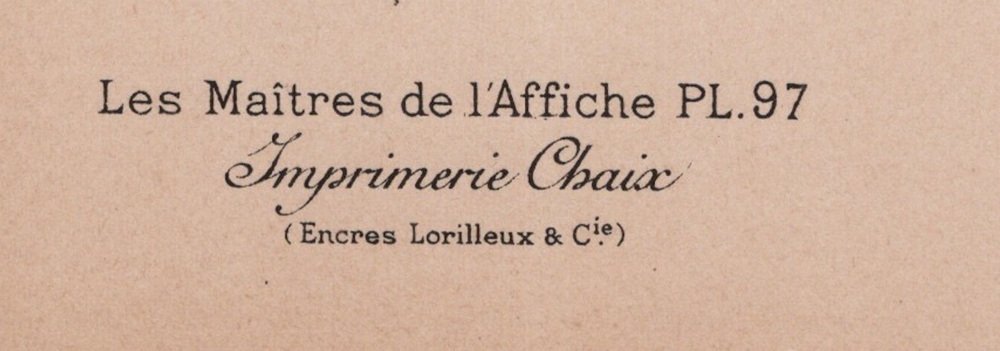 This Chaix publication, Les Maîtres de l'Affiche, was issued as separate numbered sheets measuring 40 x 29 cm. Every month for 60 months, from December 1895 through November 1900, subscribers received a wrapper containing four consecutively numbered poster. On 16 occasions the monthly wrapper also contained a bonus plate, a specially created art lithograph. Jules Chéret, artistic director of Chaix and father of the modern poster, emerged with the lion's share of the plates, one Chéret being included in each monthly issue of four, and seven of the 16 unnumbered bonus plates.
