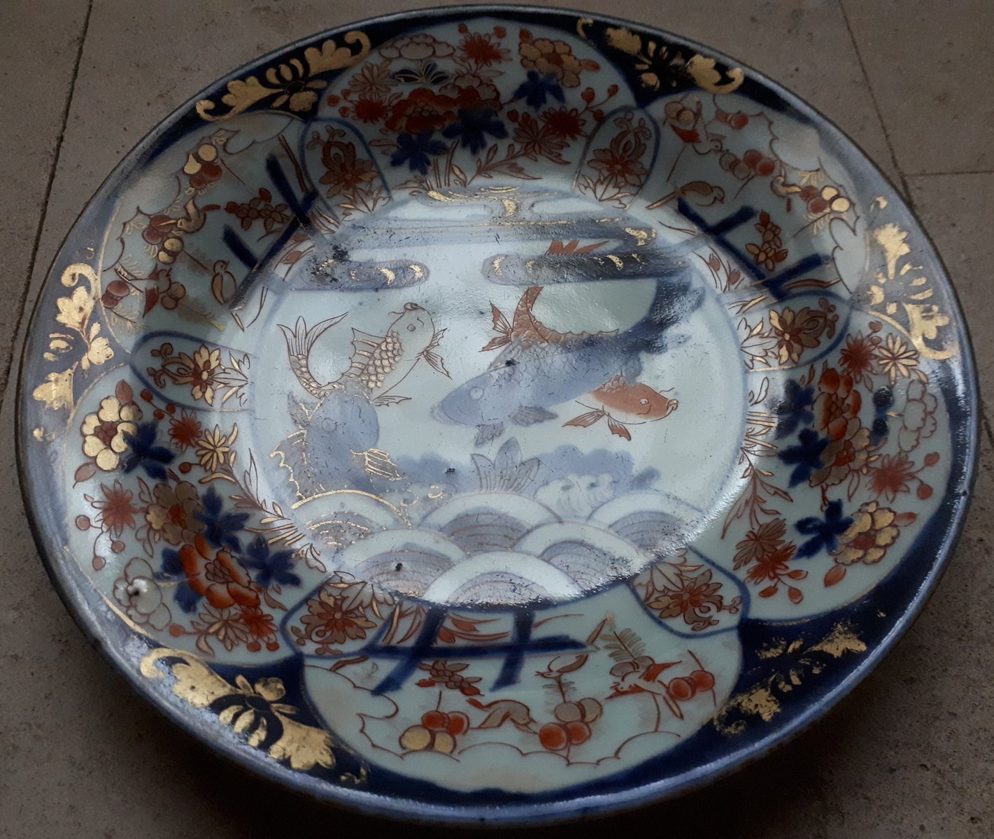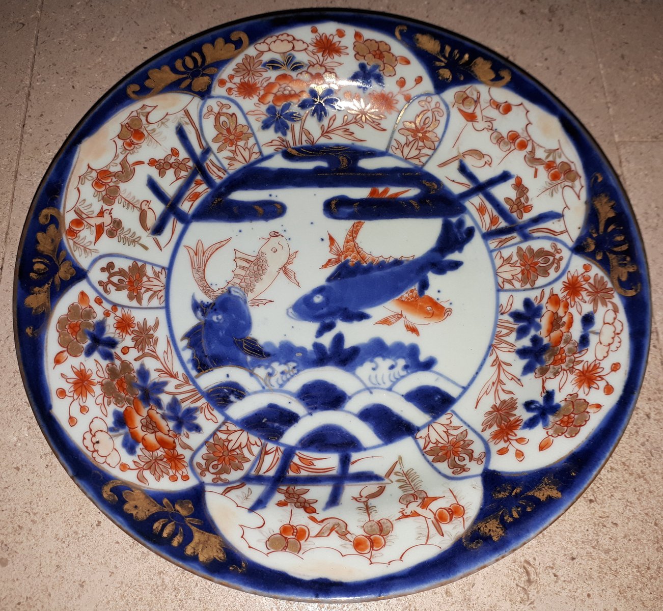 Japanese Arita Porcelain Dish with Imari Carp Decor, Japan