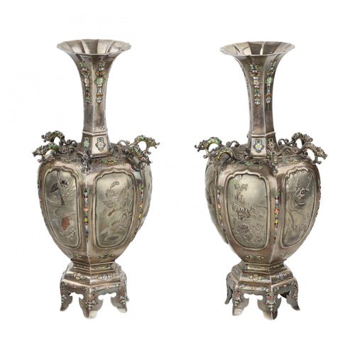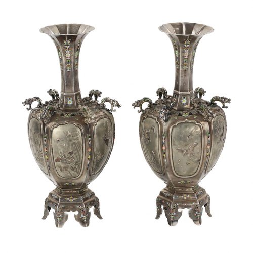 Japanese Vases in Silver and Enamel, 1890s, Set of 2