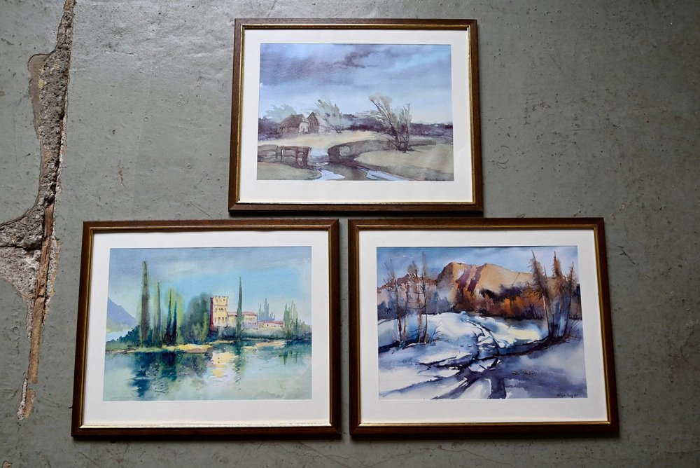 Joseph Müller Pauly, Landscapes, 1970s, Watercolors, Framed, Set of 3