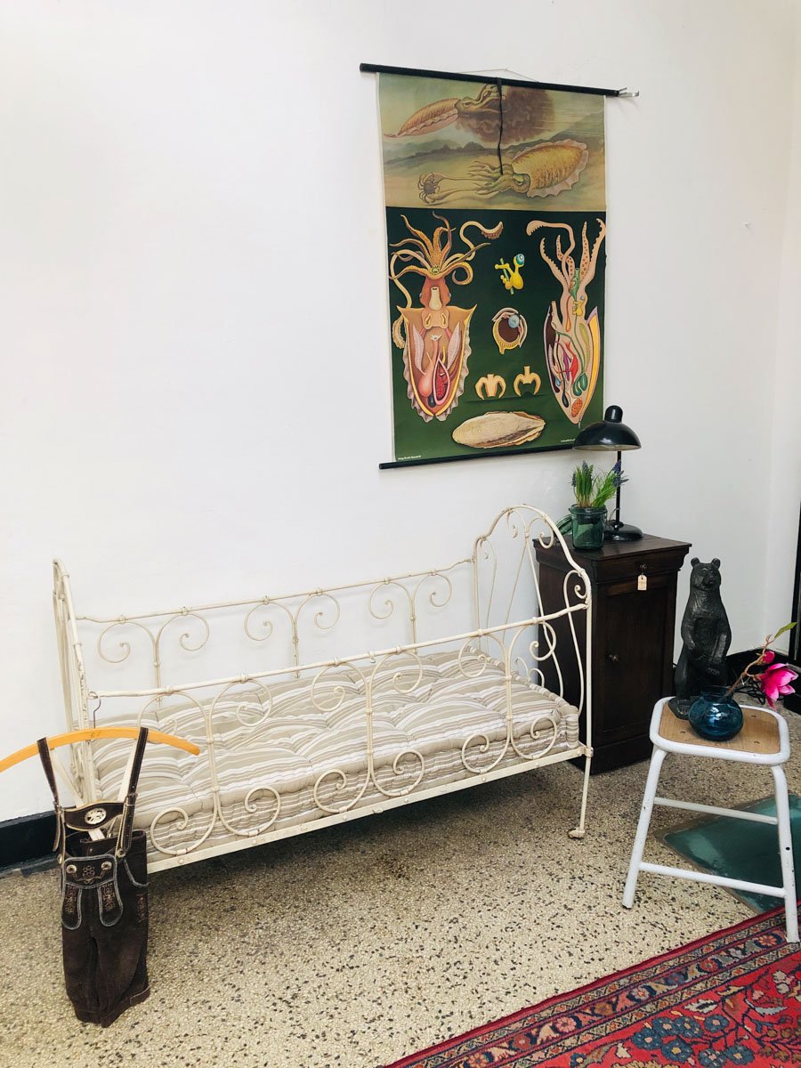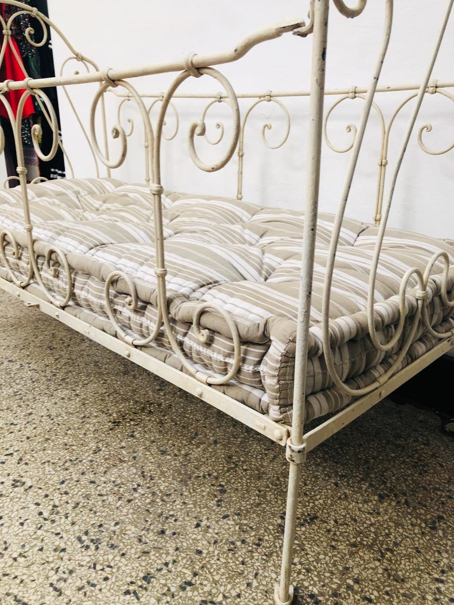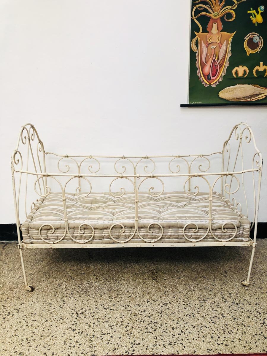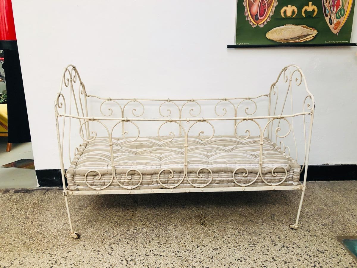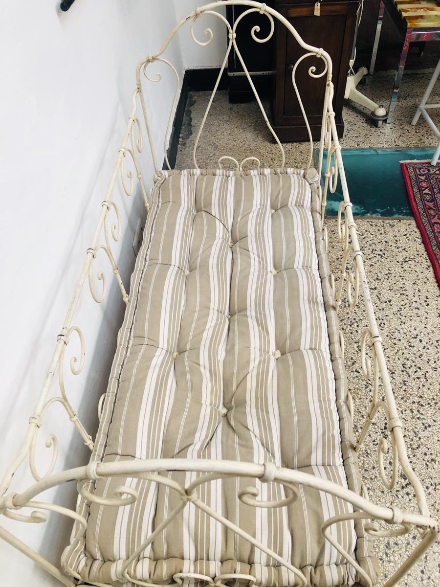 Lacquered Metal Crib with Cotton Mattress, 1920s