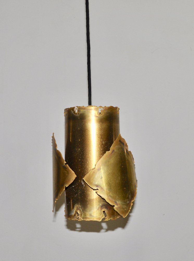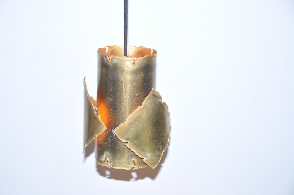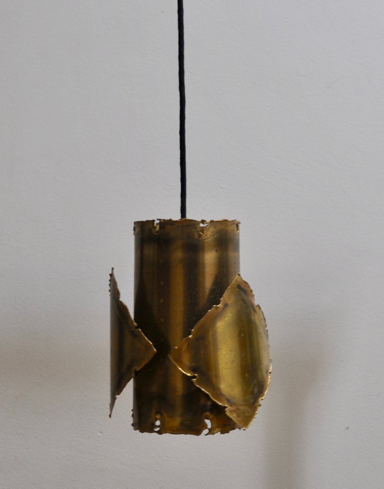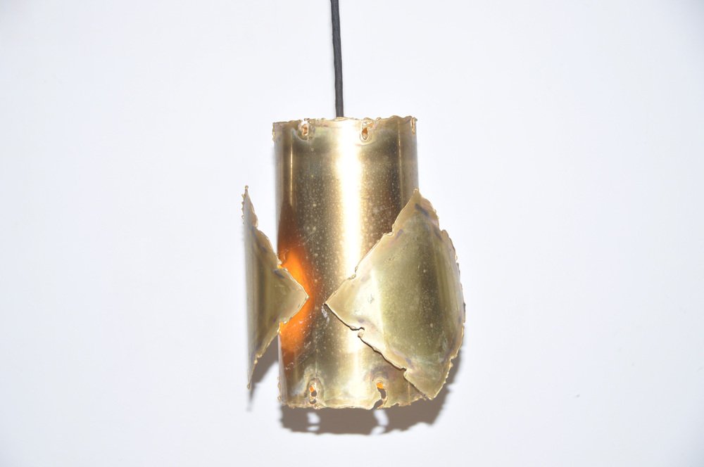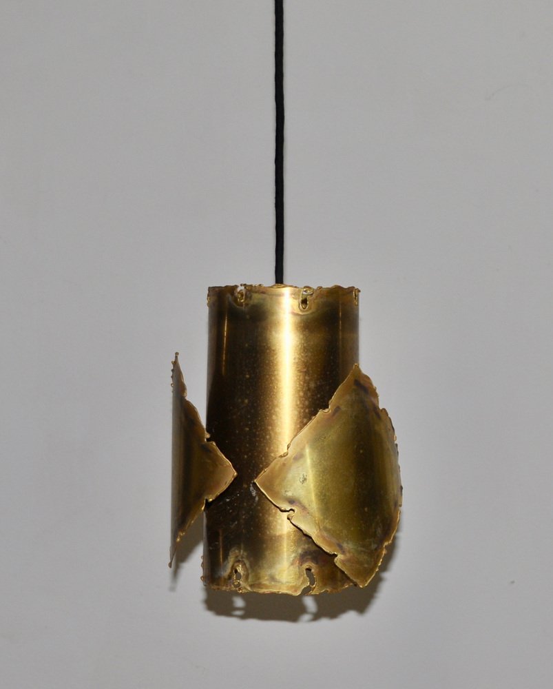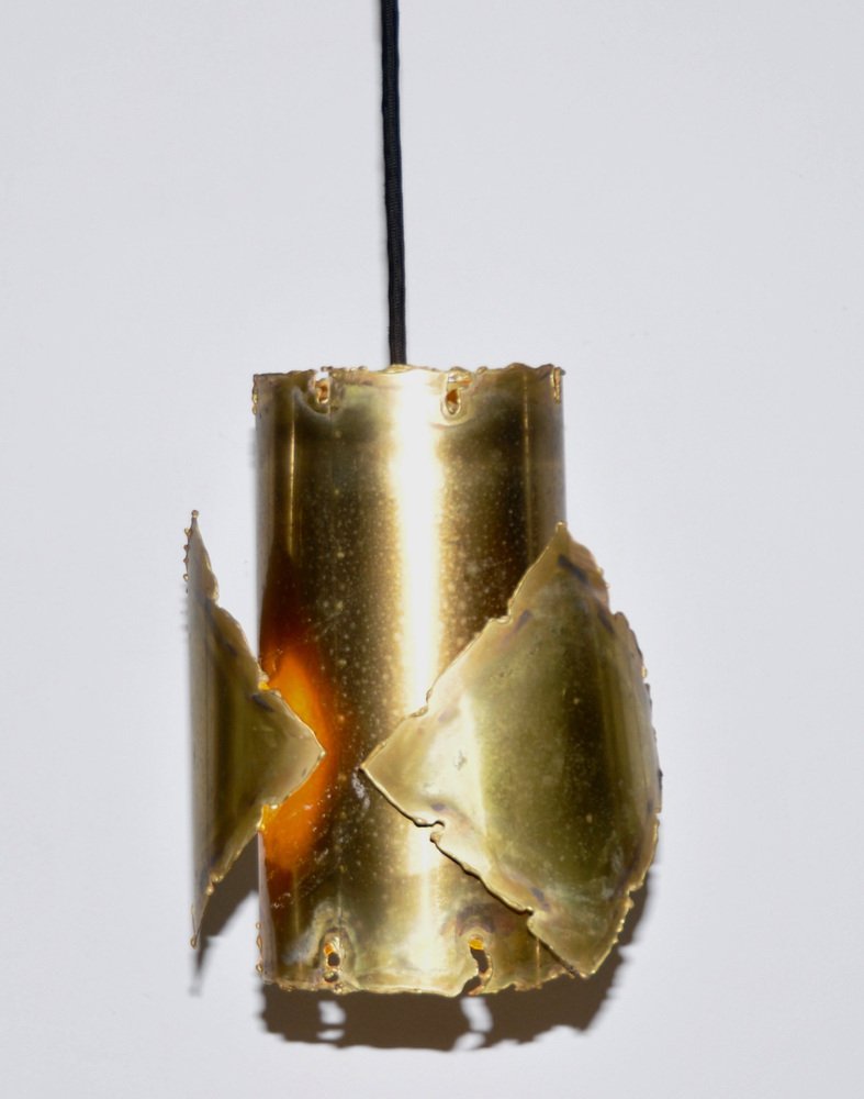 From the 1960s onwards, Holm Sørensen’s style changed utterly. His designs diverged from colorful, geometric table lamps and floor lamps, to pendants with unfinished brass and copper surfaces. These pendant lamps showcase Holm Sørensen’s interpretation of the Brutalist style, which was popular from the 1950s to the mid-70s. Originally coined by the Swedish architect Hans Asplund, the style was internationally espoused by many iconic designers, including Le Corbusier.