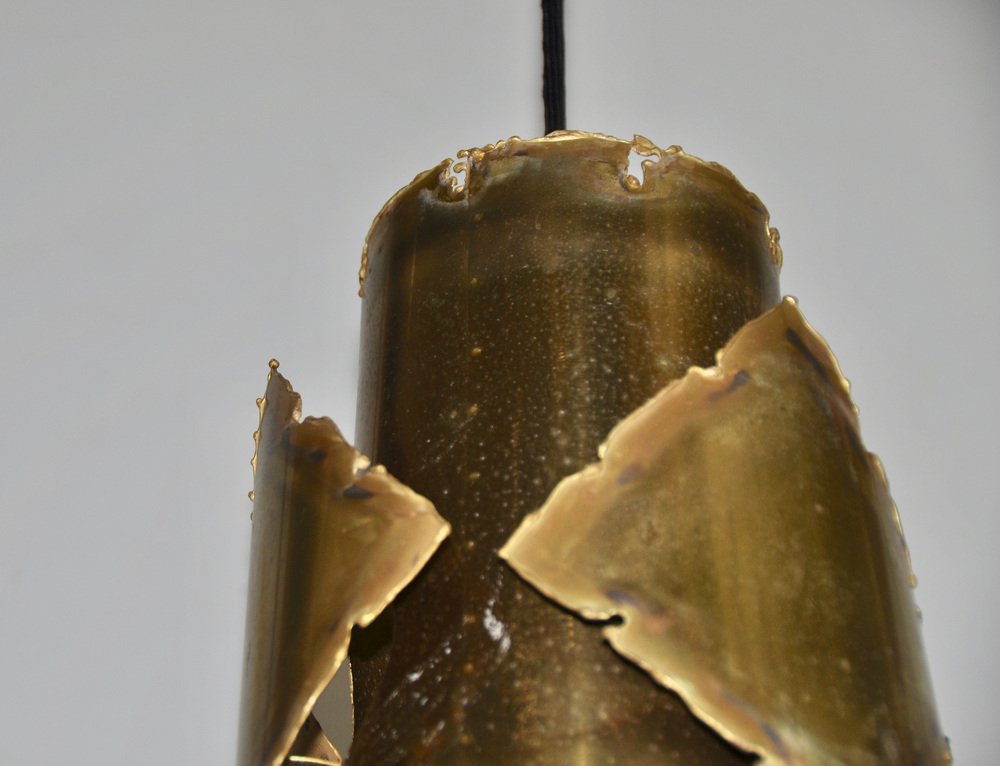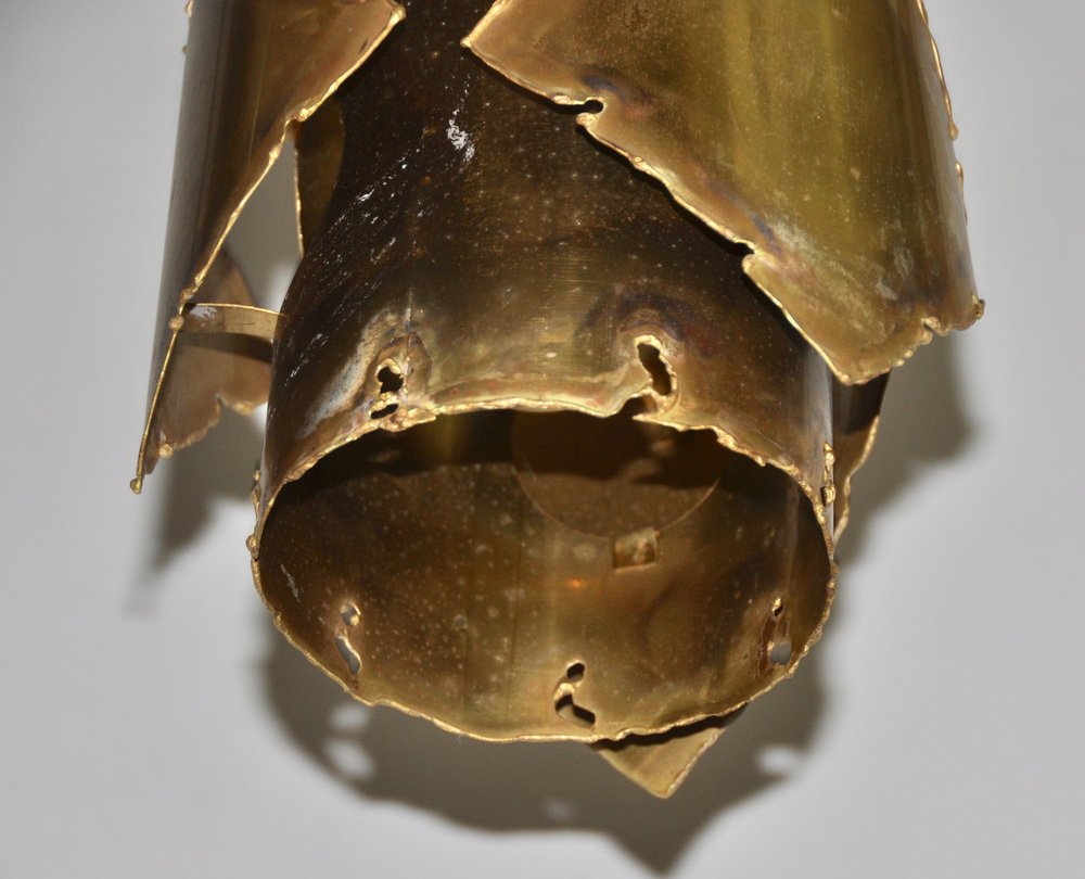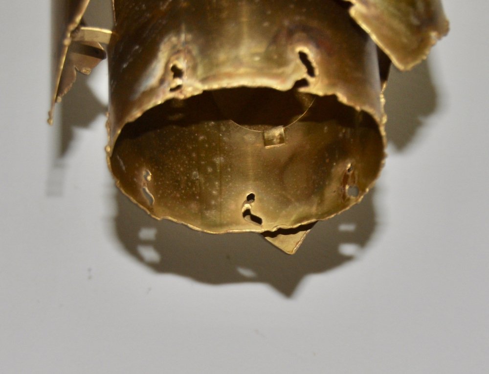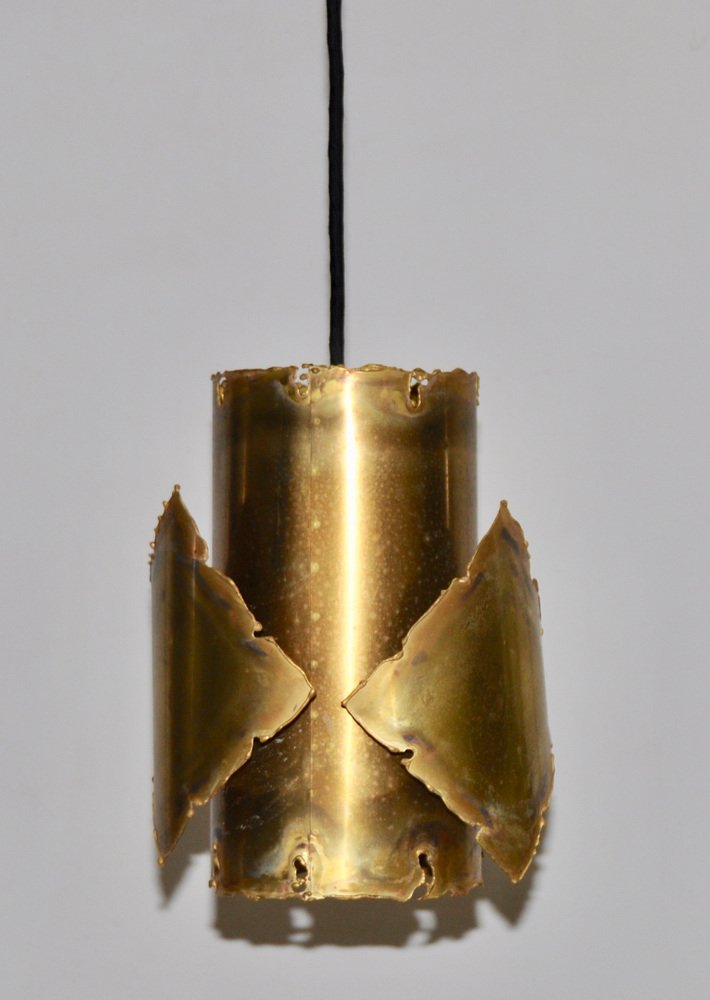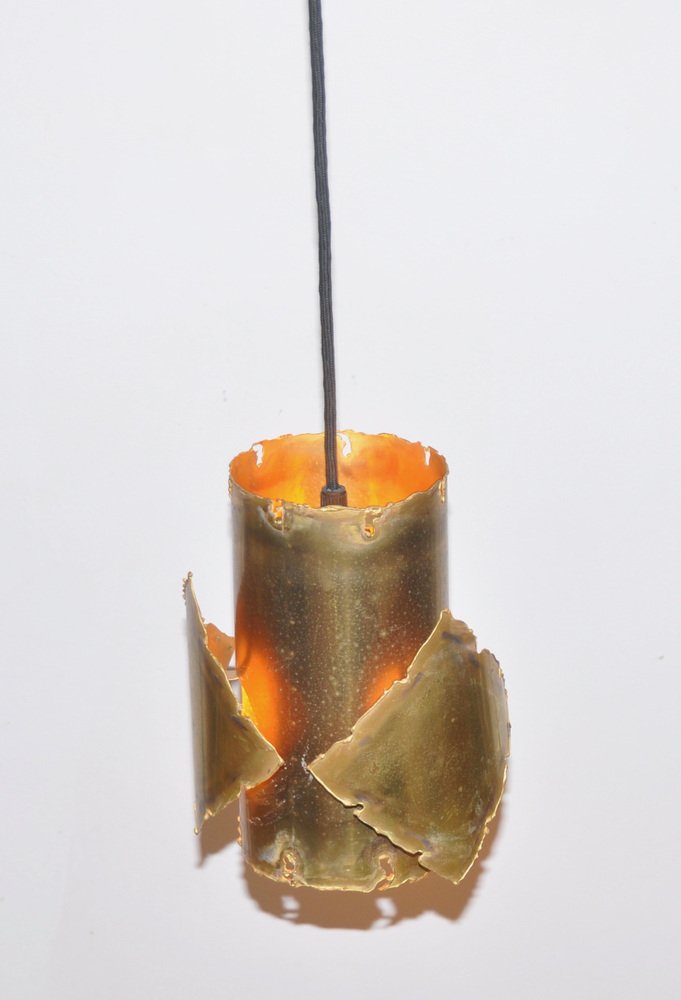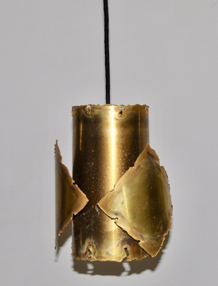 From the 1960s onwards, Holm Sørensen’s style changed utterly. His designs diverged from colorful, geometric table lamps and floor lamps, to pendants with unfinished brass and copper surfaces. These pendant lamps showcase Holm Sørensen’s interpretation of the Brutalist style, which was popular from the 1950s to the mid-70s. Originally coined by the Swedish architect Hans Asplund, the style was internationally espoused by many iconic designers, including Le Corbusier.