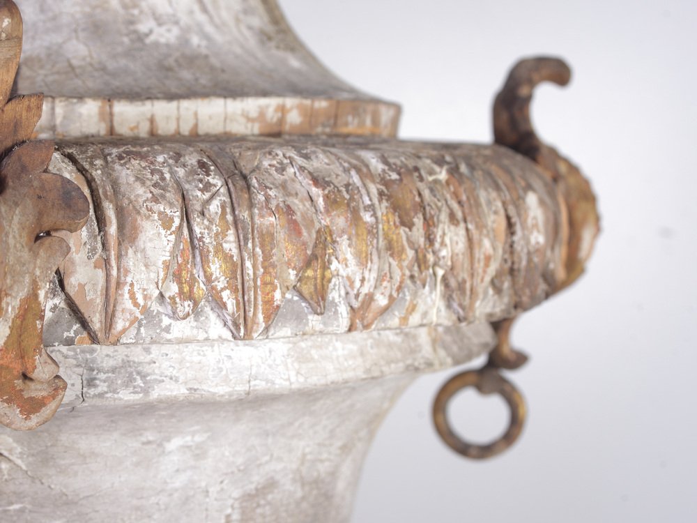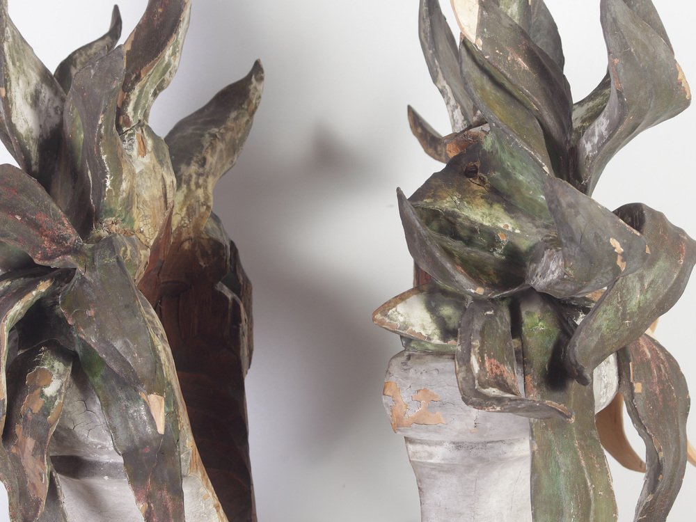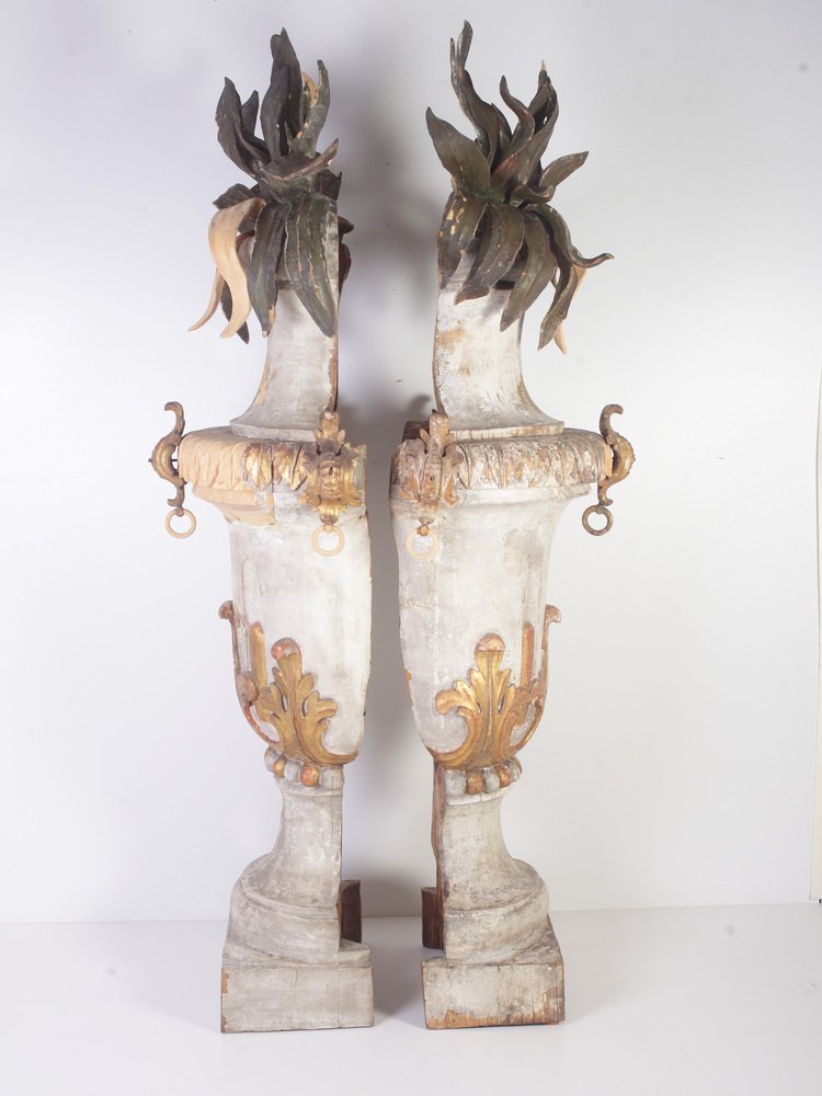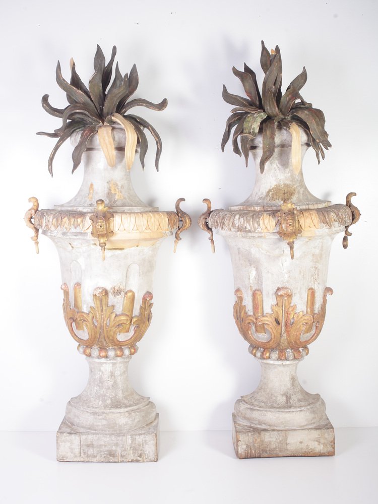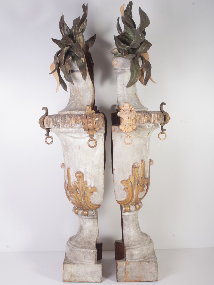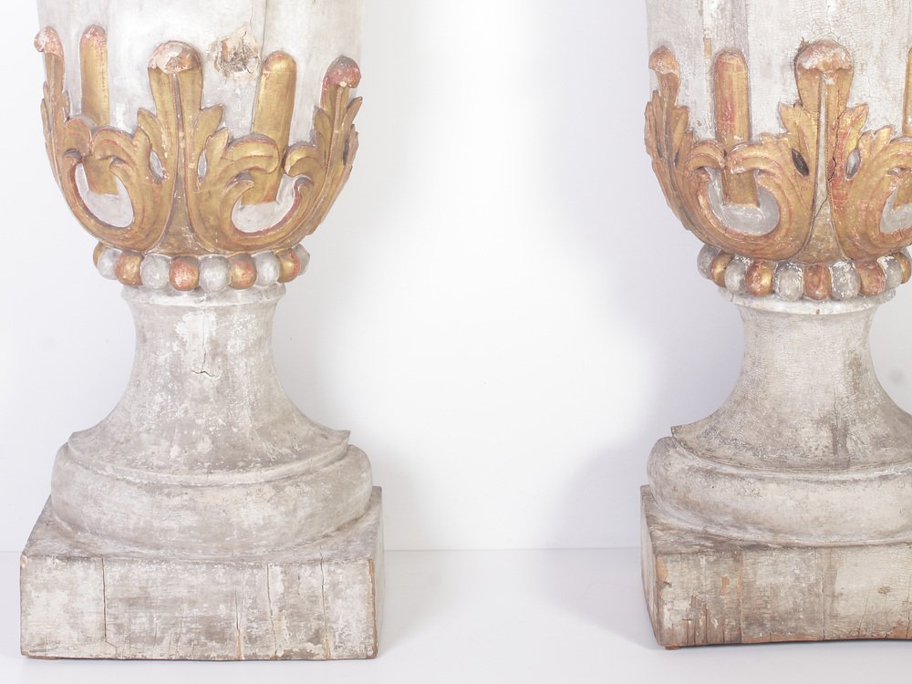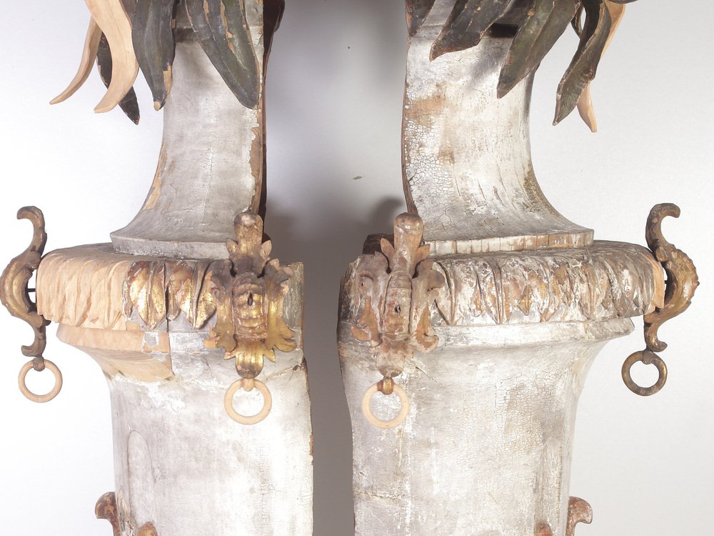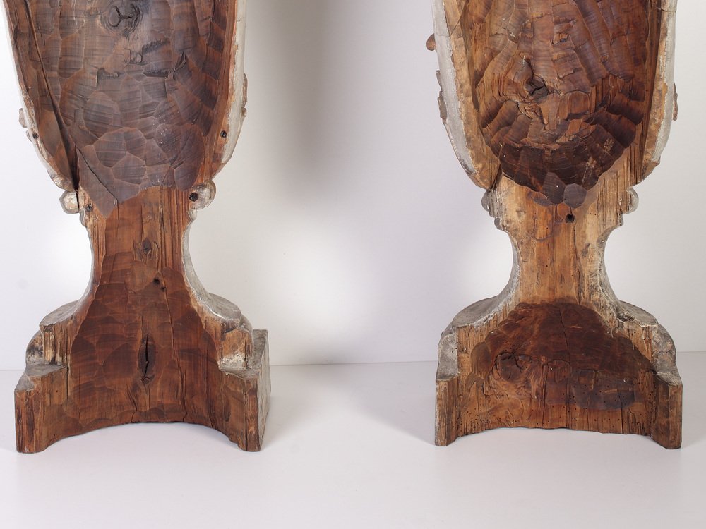 Large 18th Century Bohemian Decorative Lime Wood Vases, Set of 2