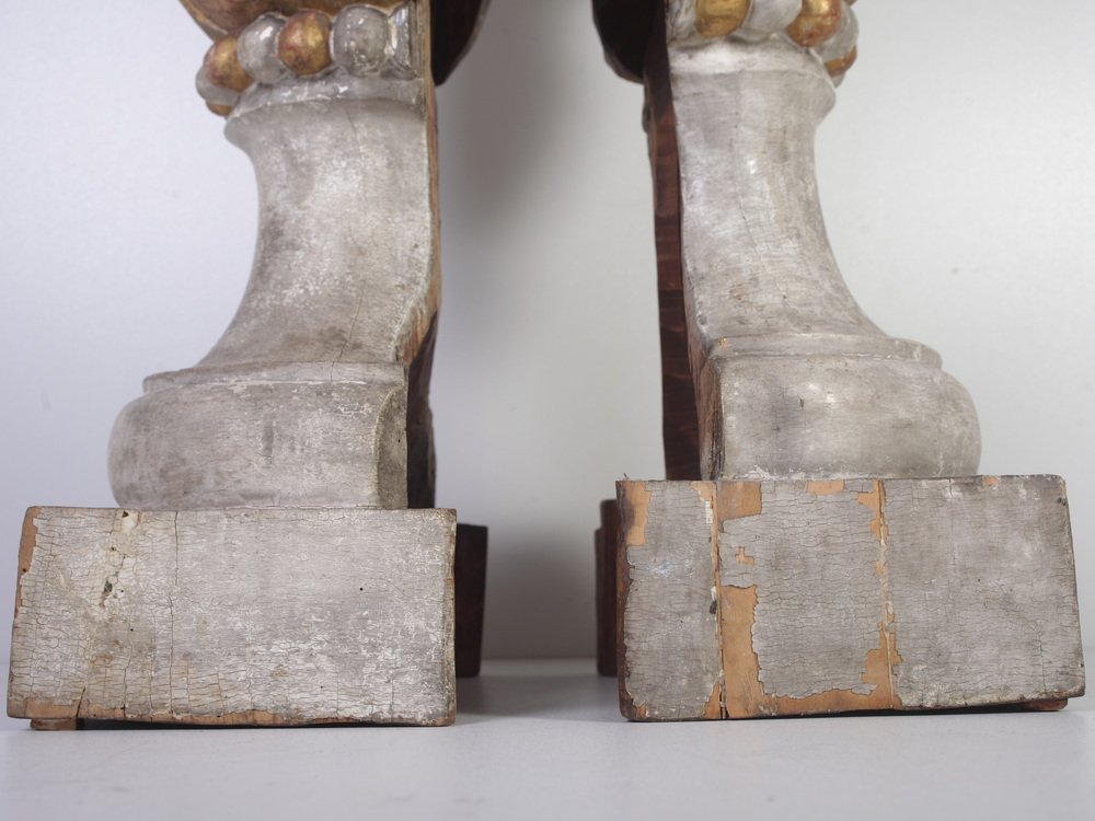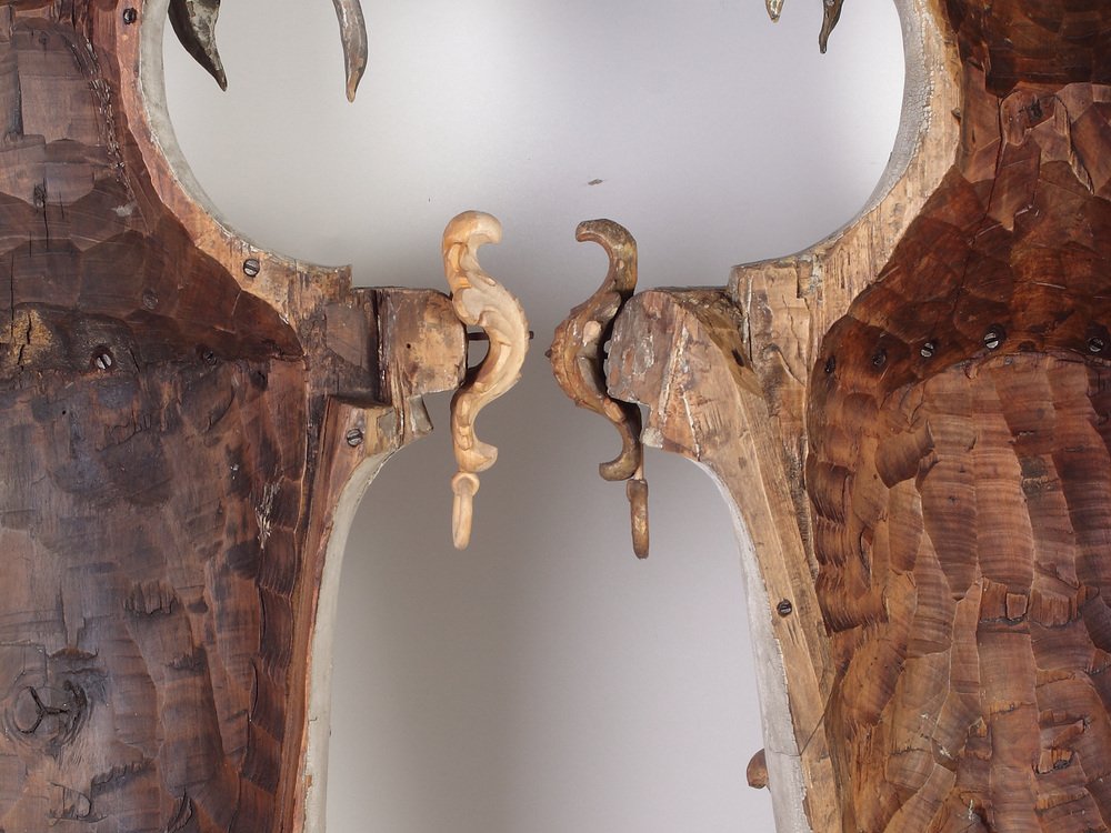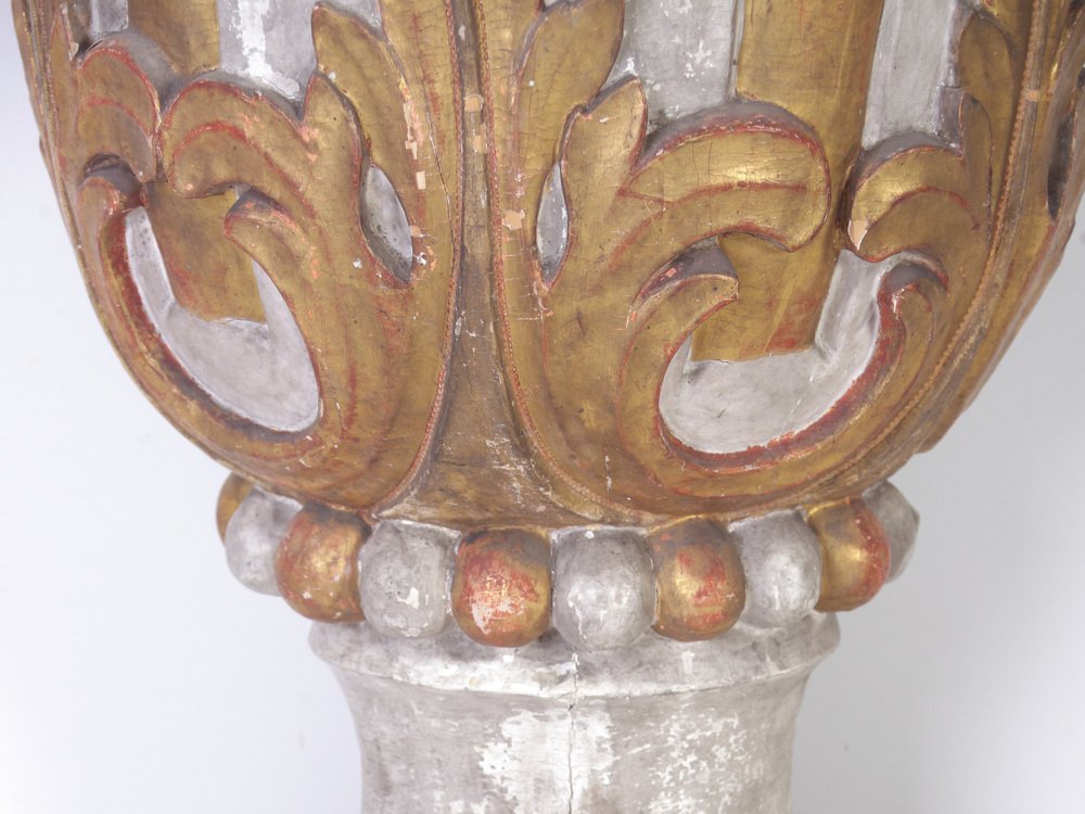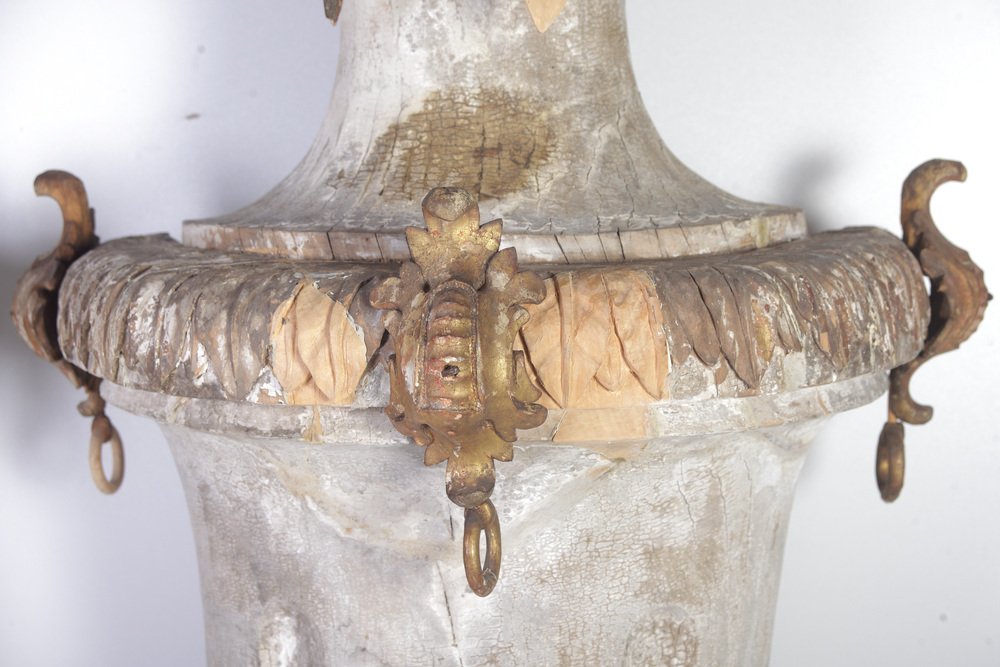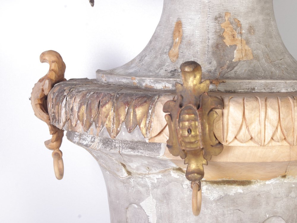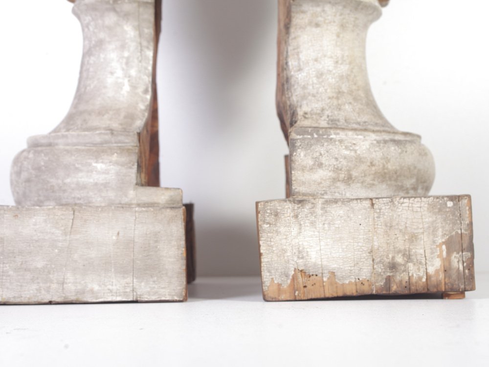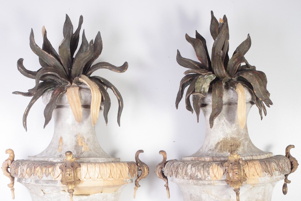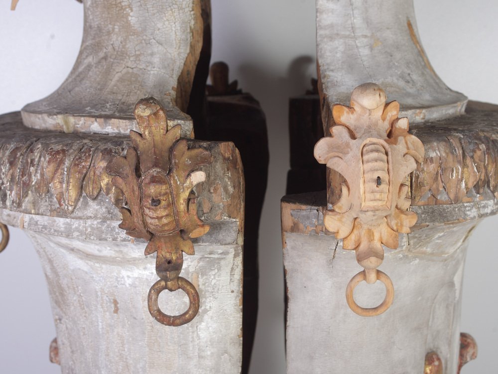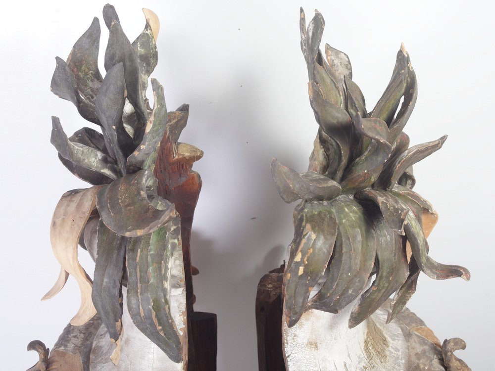 Large 18th Century Bohemian Decorative Lime Wood Vases, Set of 2