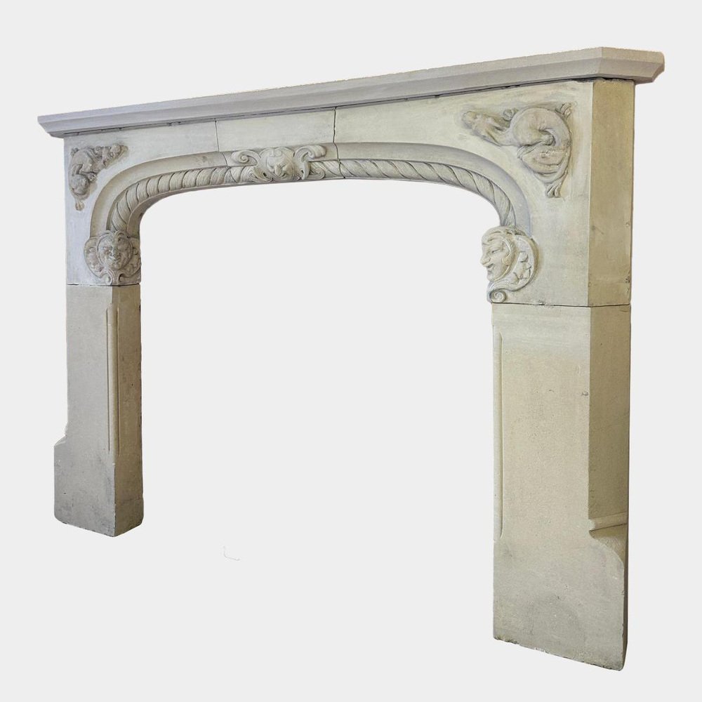 Large Antique English Gothic Fireplace Mantel, 1790