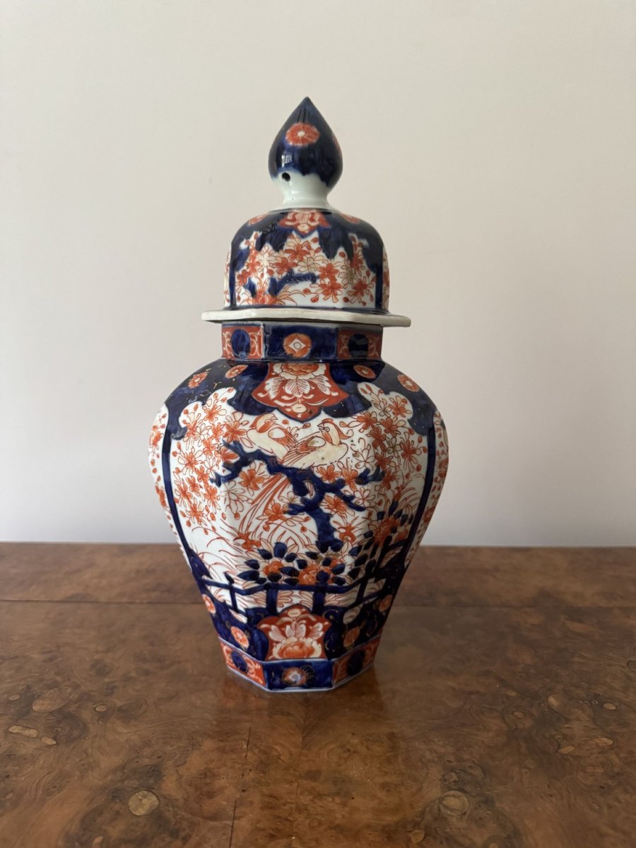 Large Antique Japanese Imari Lidded Vases, 1900, Set of 2