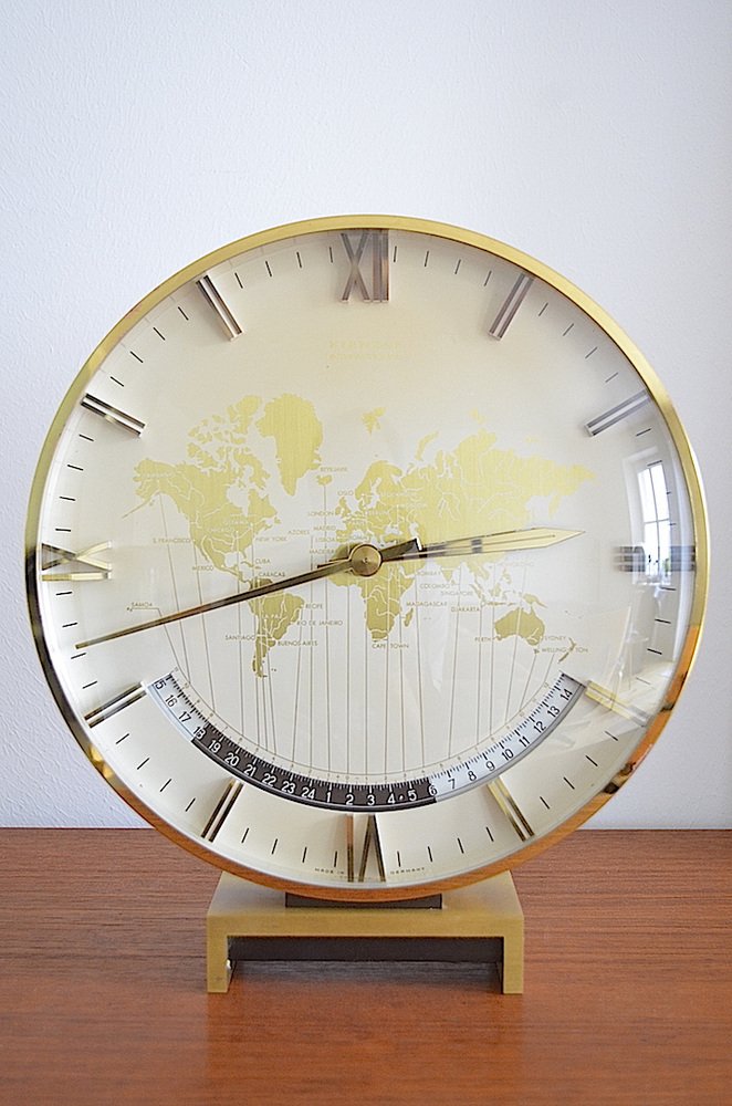 Large Art Deco World Time Clock by Heinrich Möller for Kienzle, 1950s