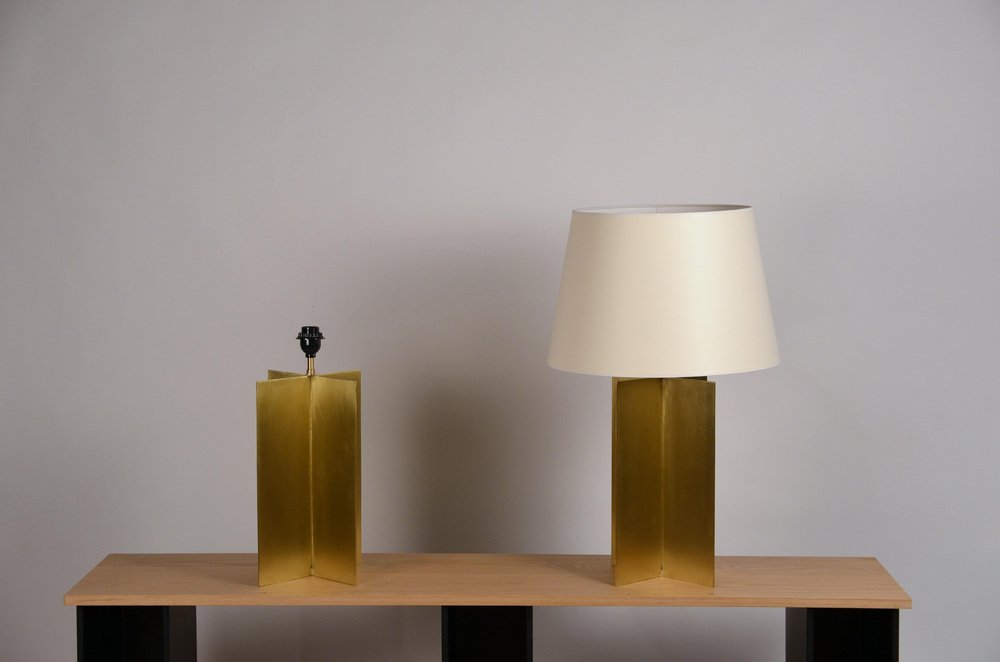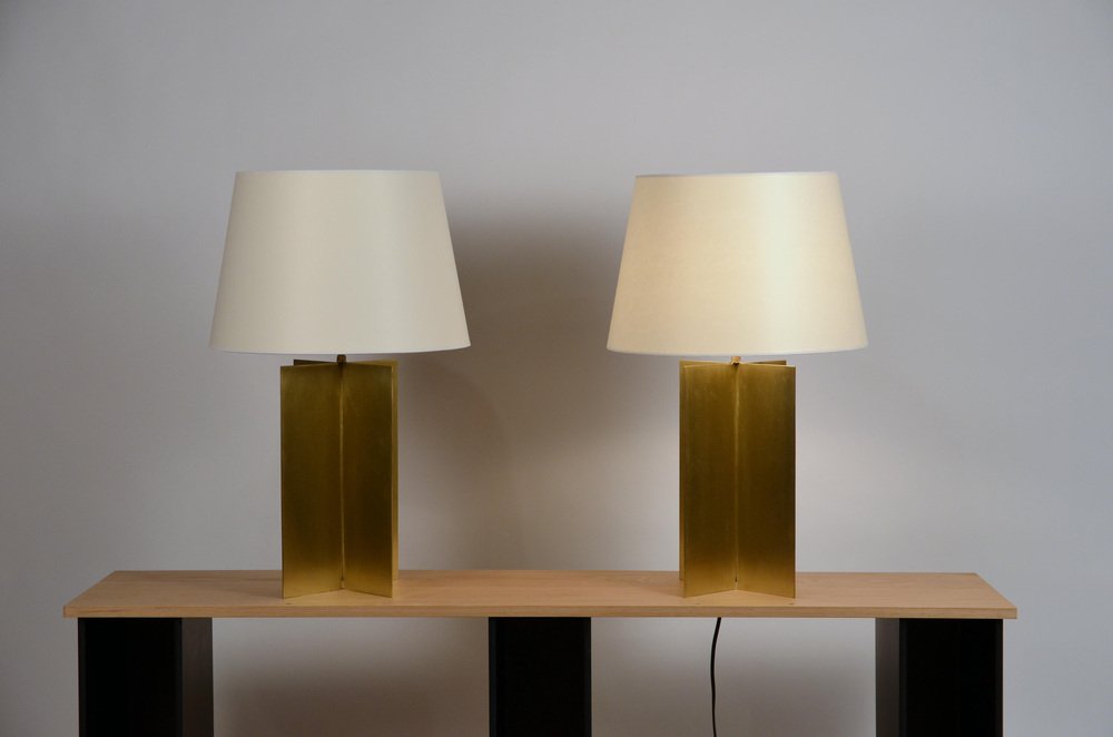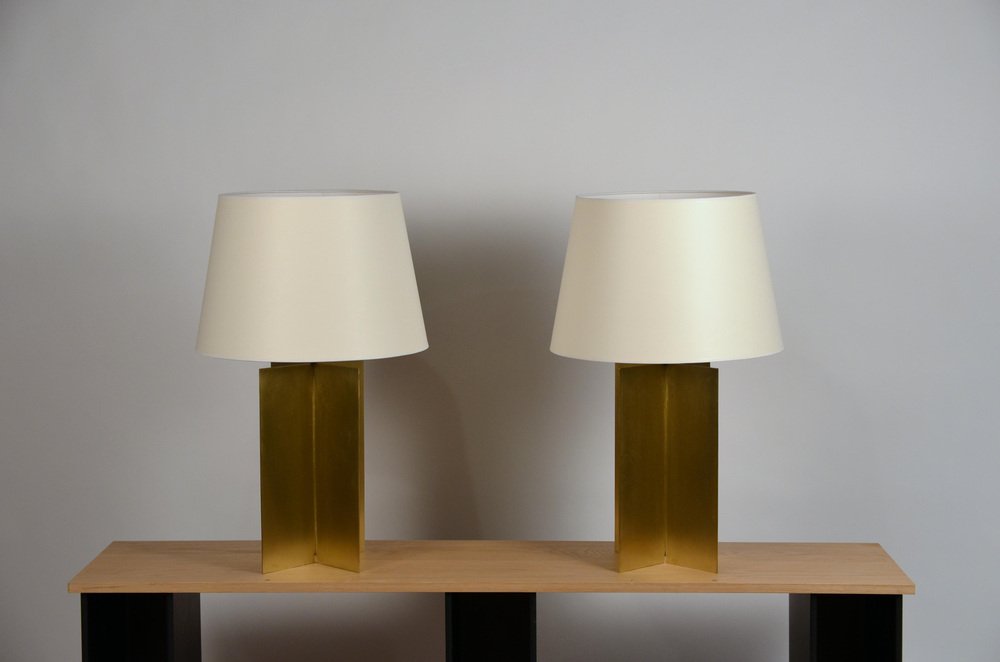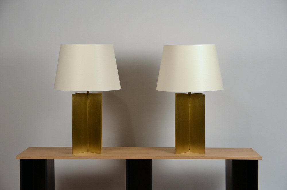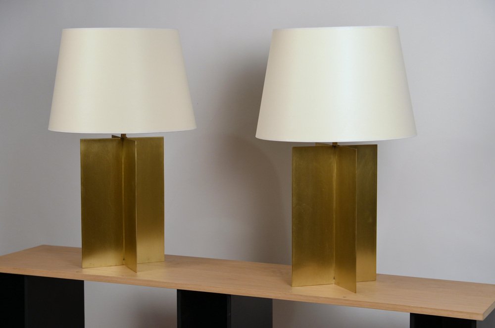 Large Custom Polished Brass Croisillon Lamps by Atelier Cabanel, Set of 2