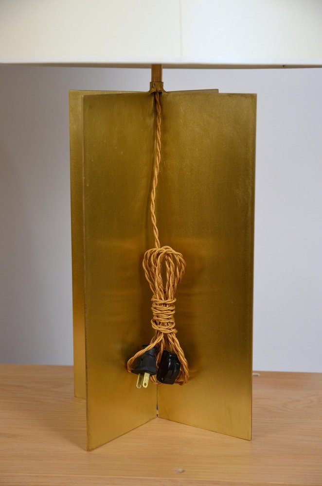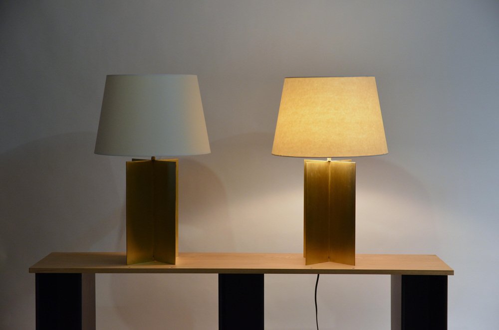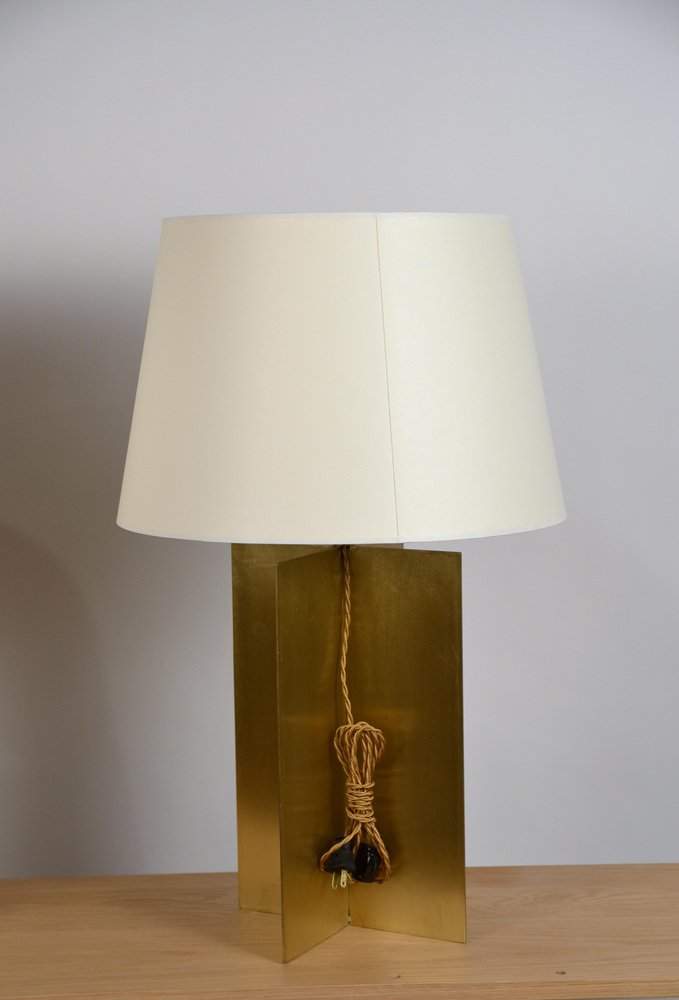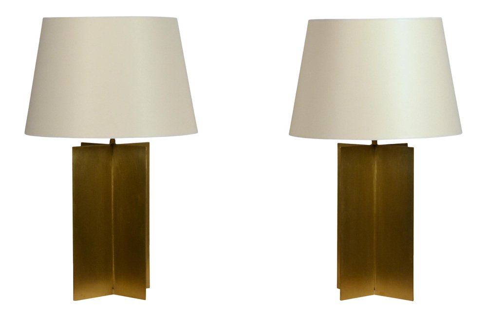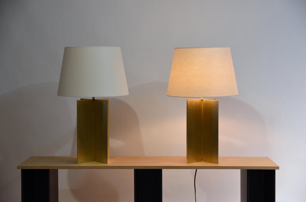 Large Custom Polished Brass Croisillon Lamps by Atelier Cabanel, Set of 2