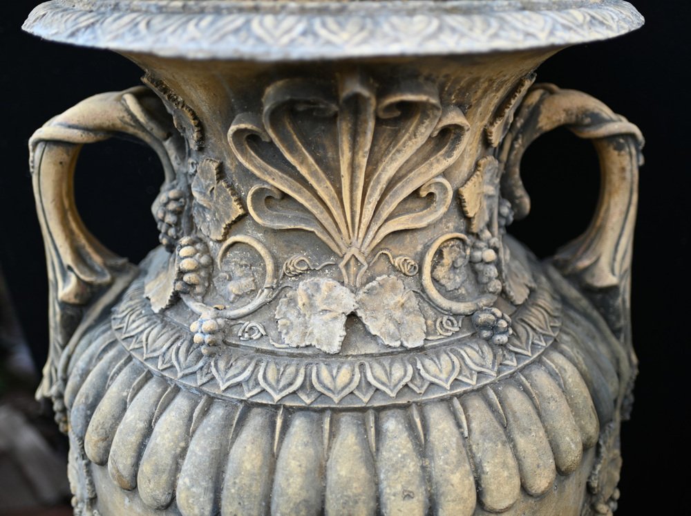Large English Stone Garden Urns, Set of 2
