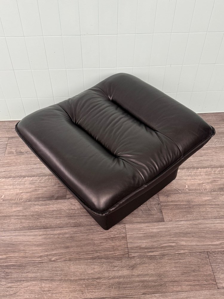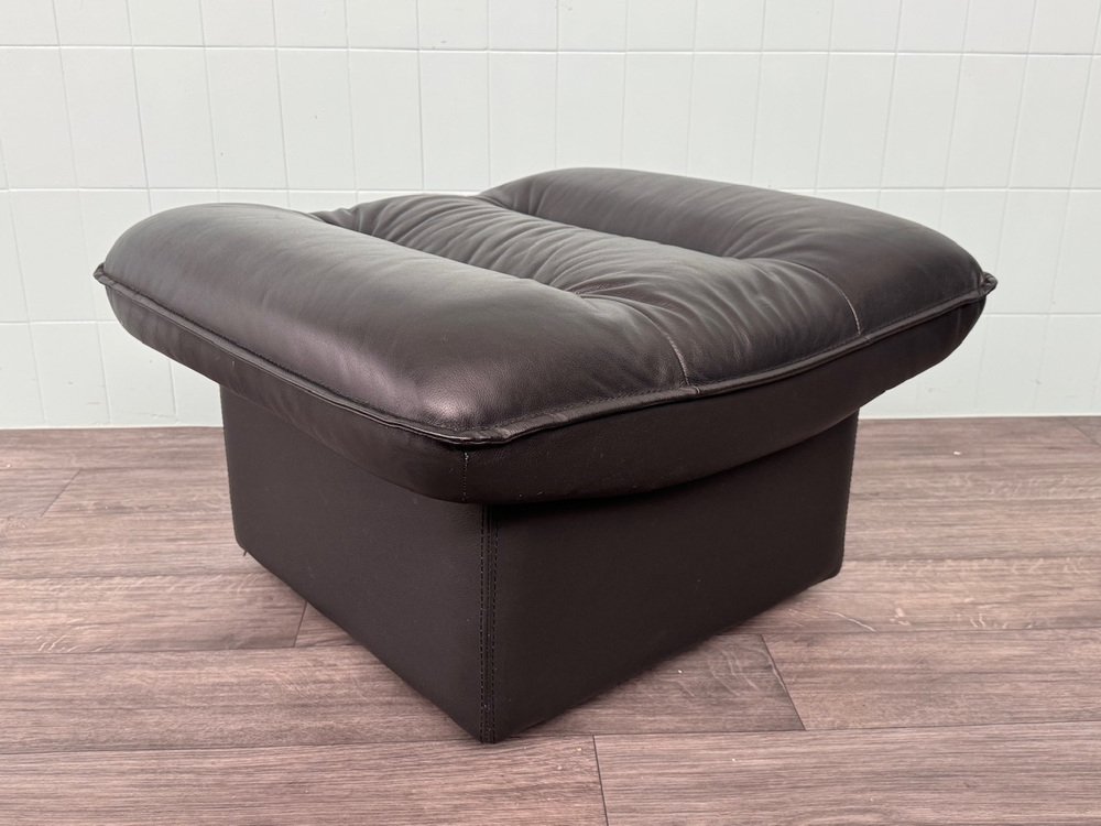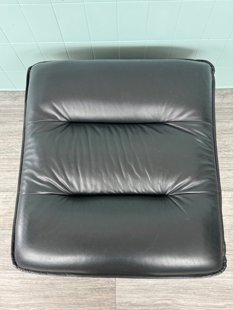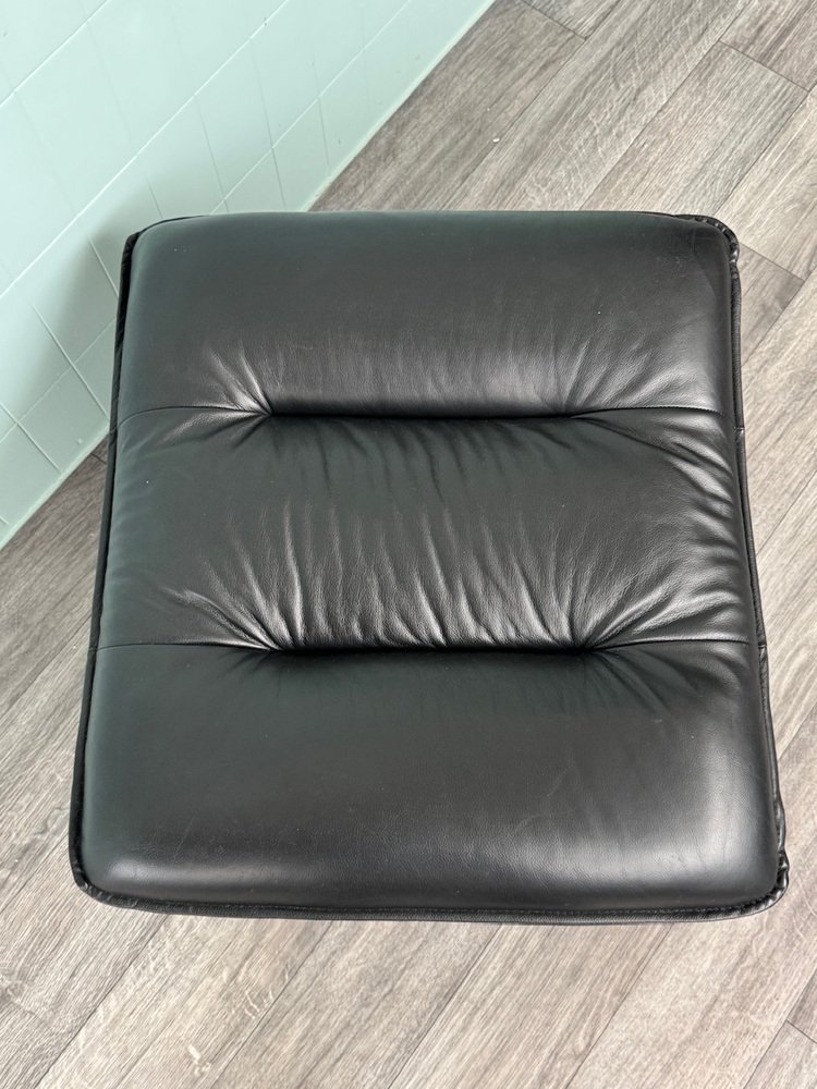 Large Italian Black Leather Ottoman, Italy, 1980s