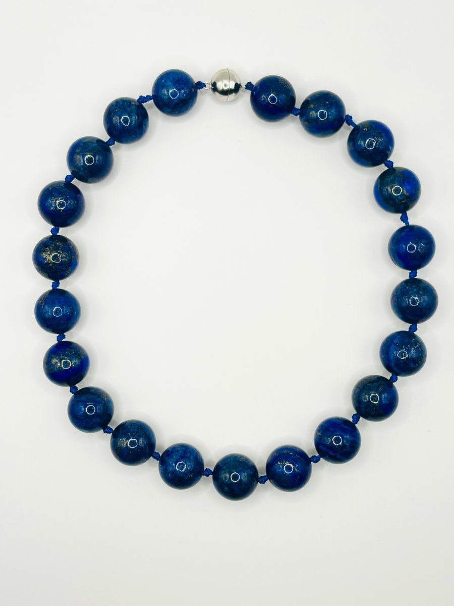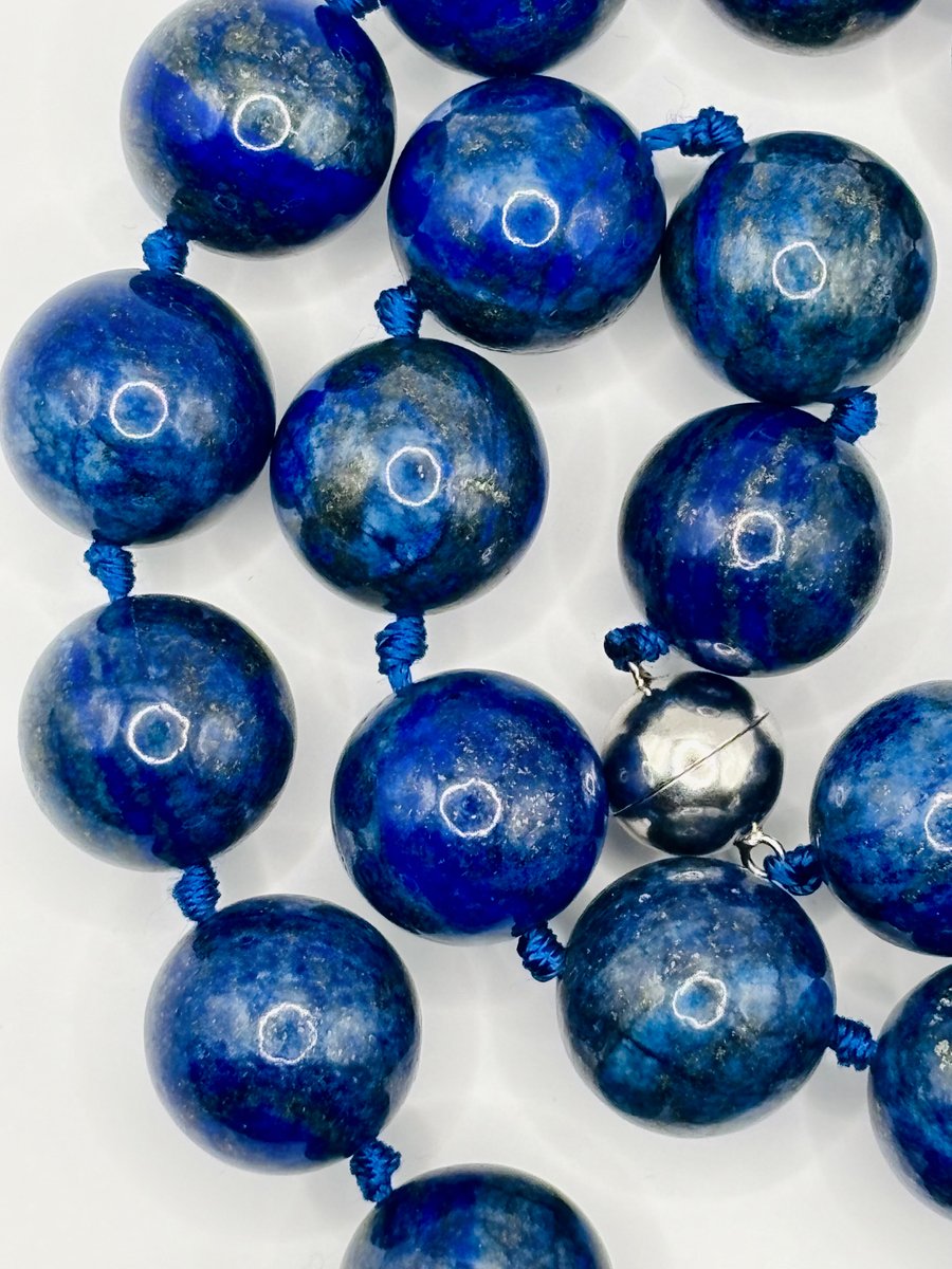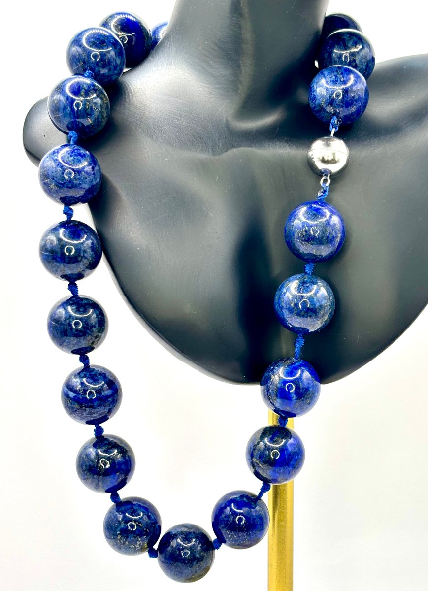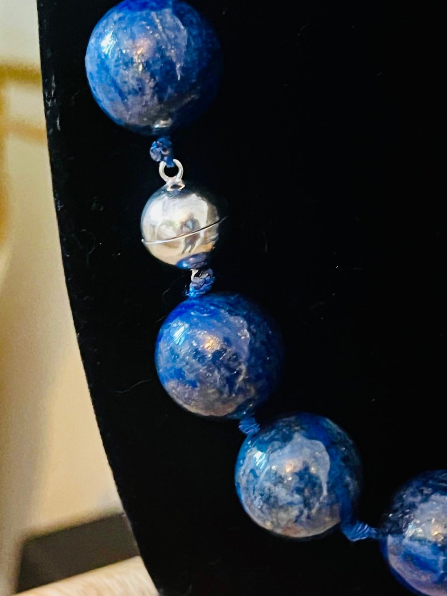 Large Lapis Lazuli Bead Necklace with Silver Magnetic Clasp, 1990s
