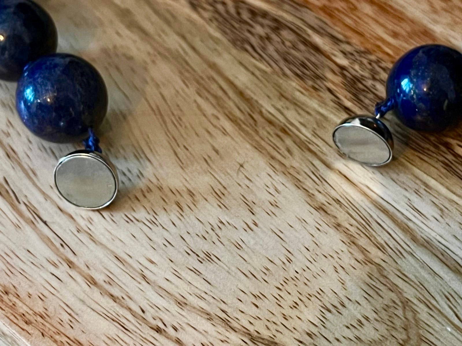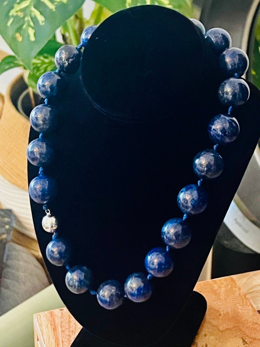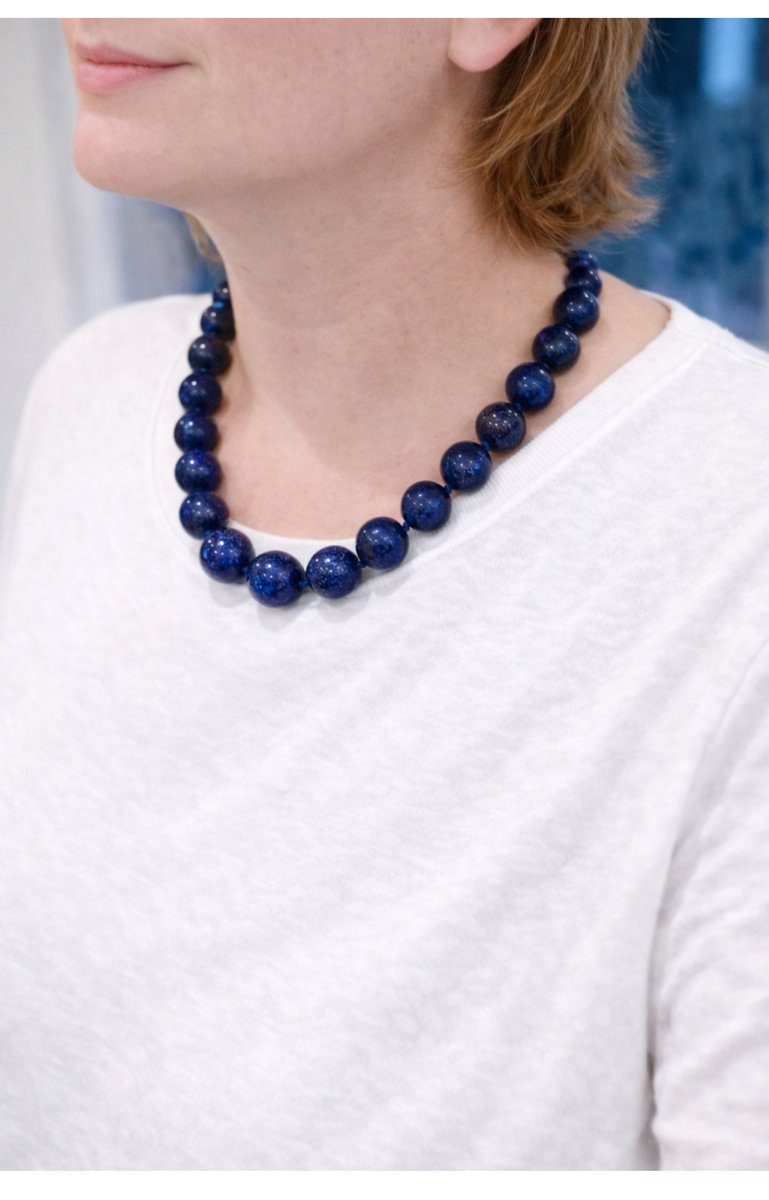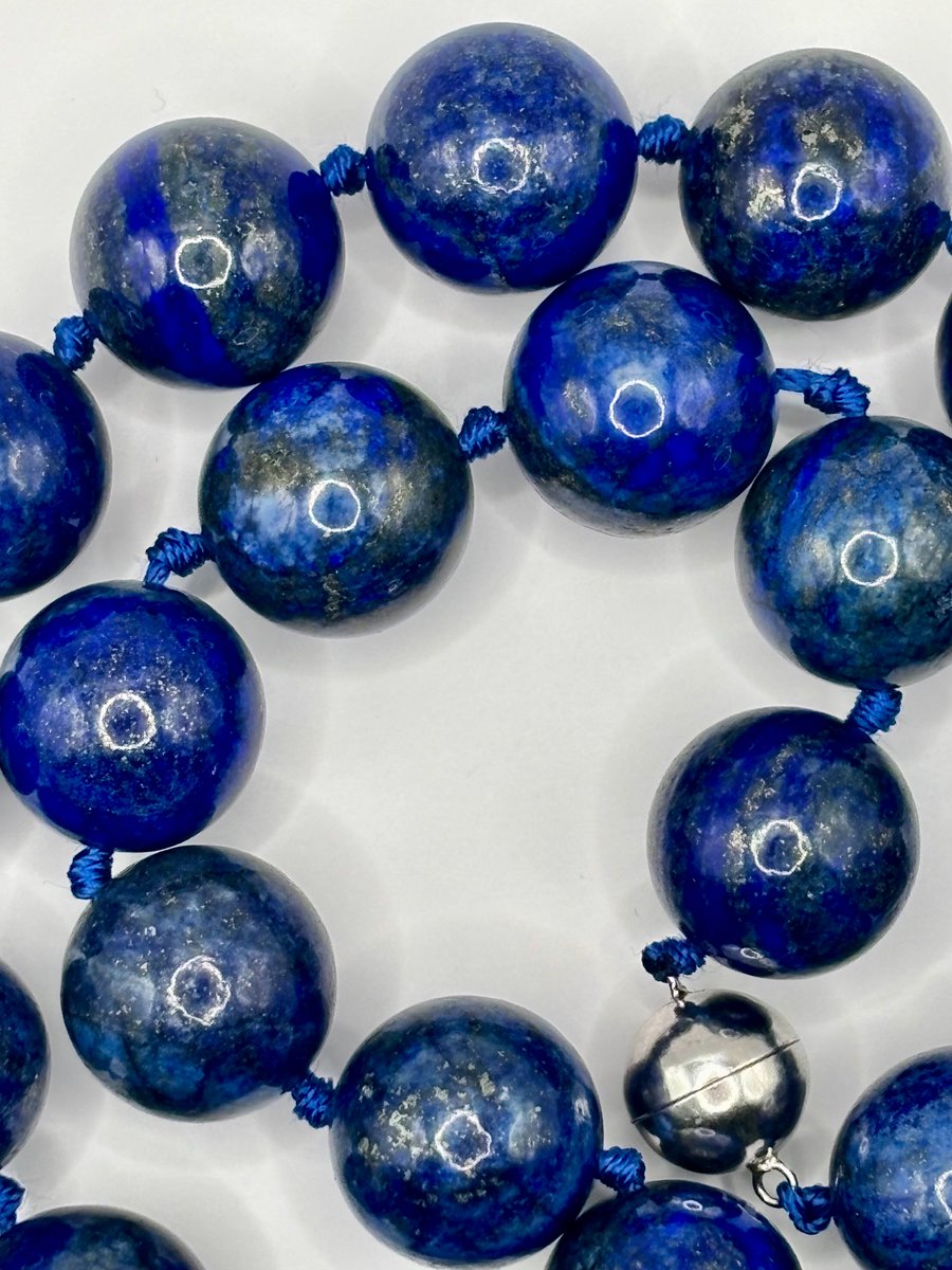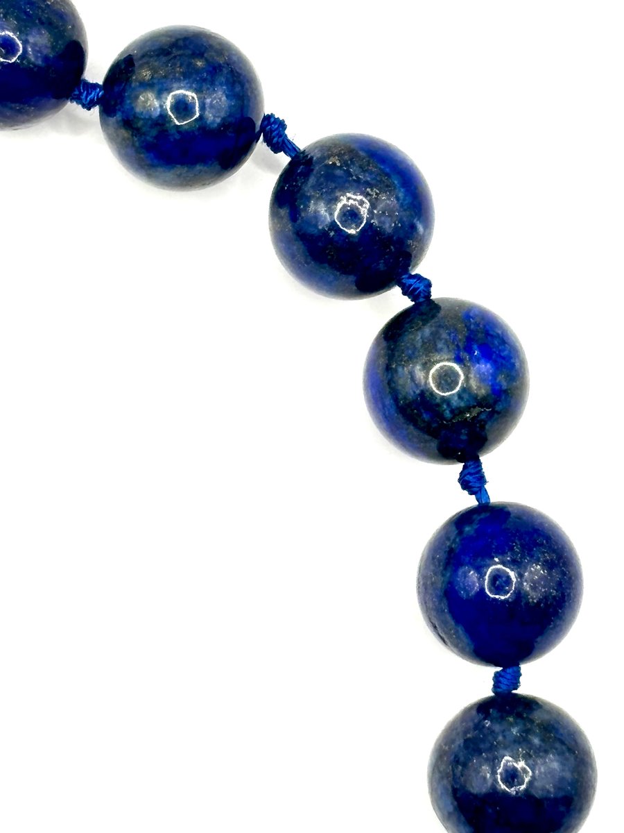 Large Lapis Lazuli Bead Necklace with Silver Magnetic Clasp, 1990s