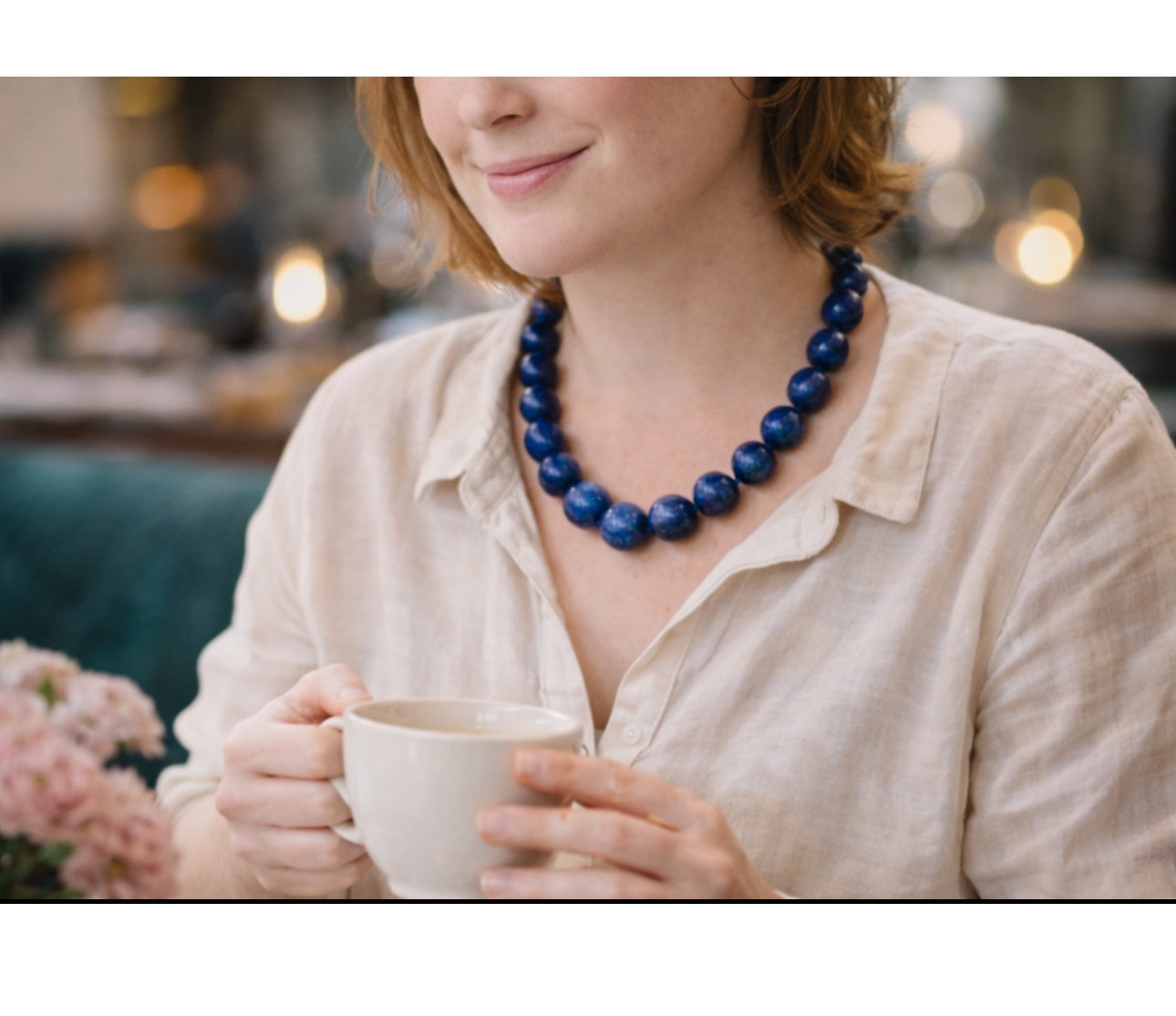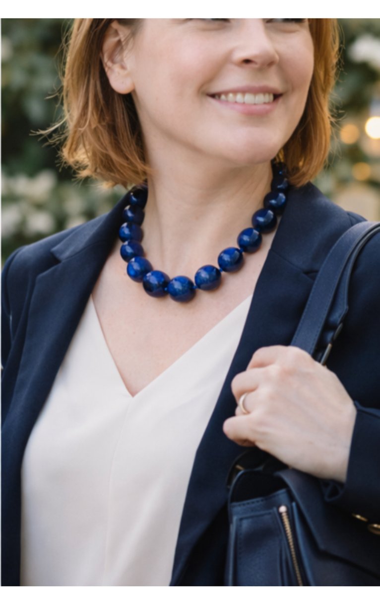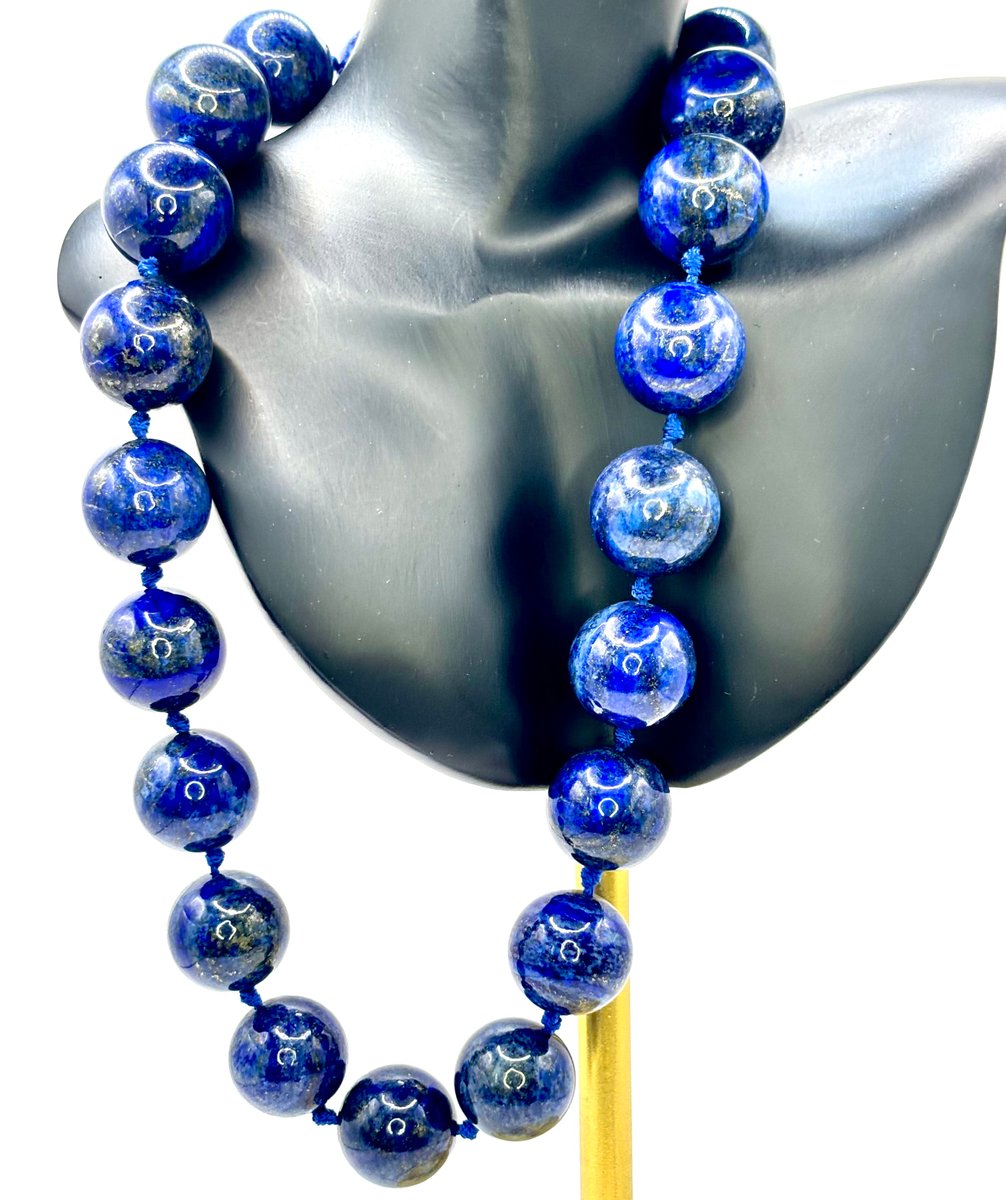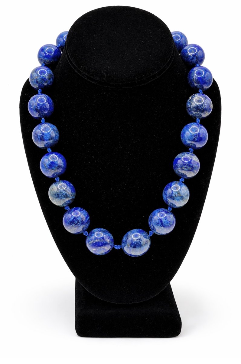 Large Lapis Lazuli Bead Necklace with Silver Magnetic Clasp, 1990s