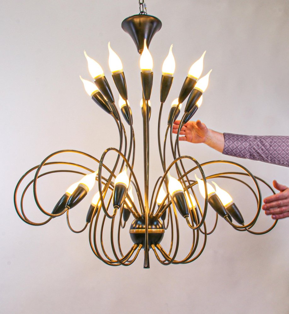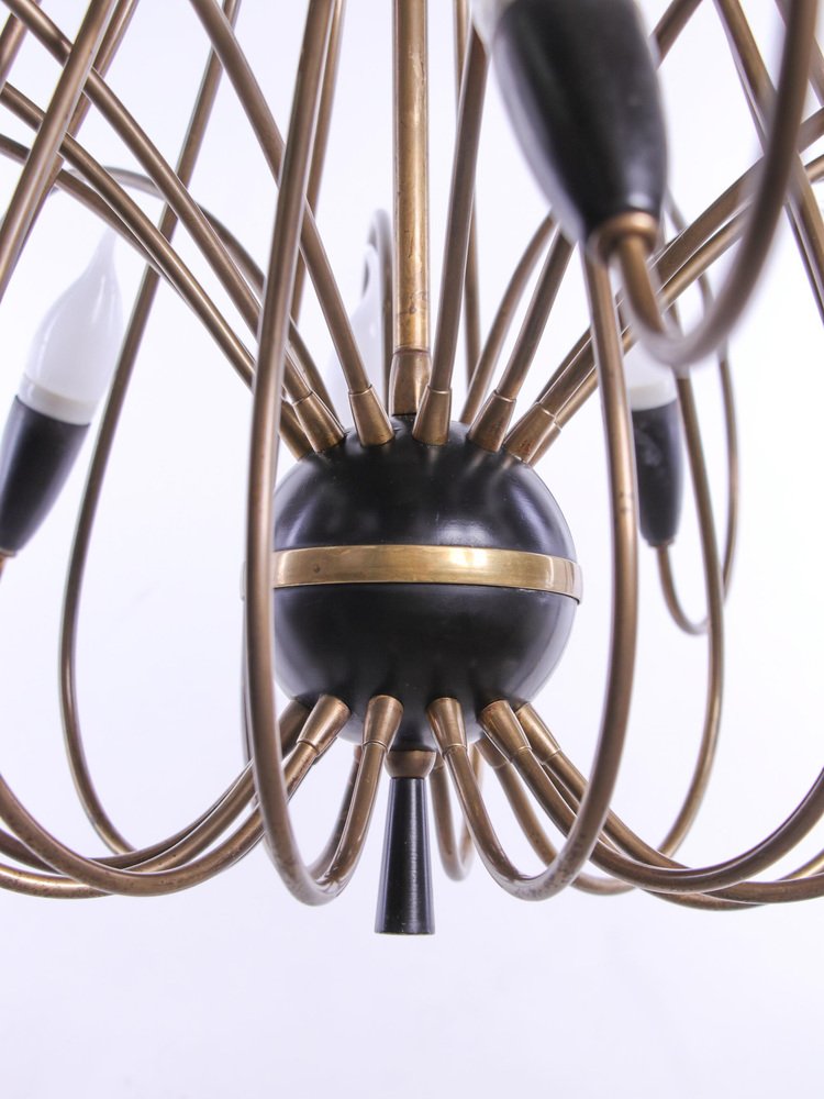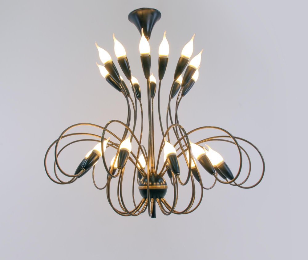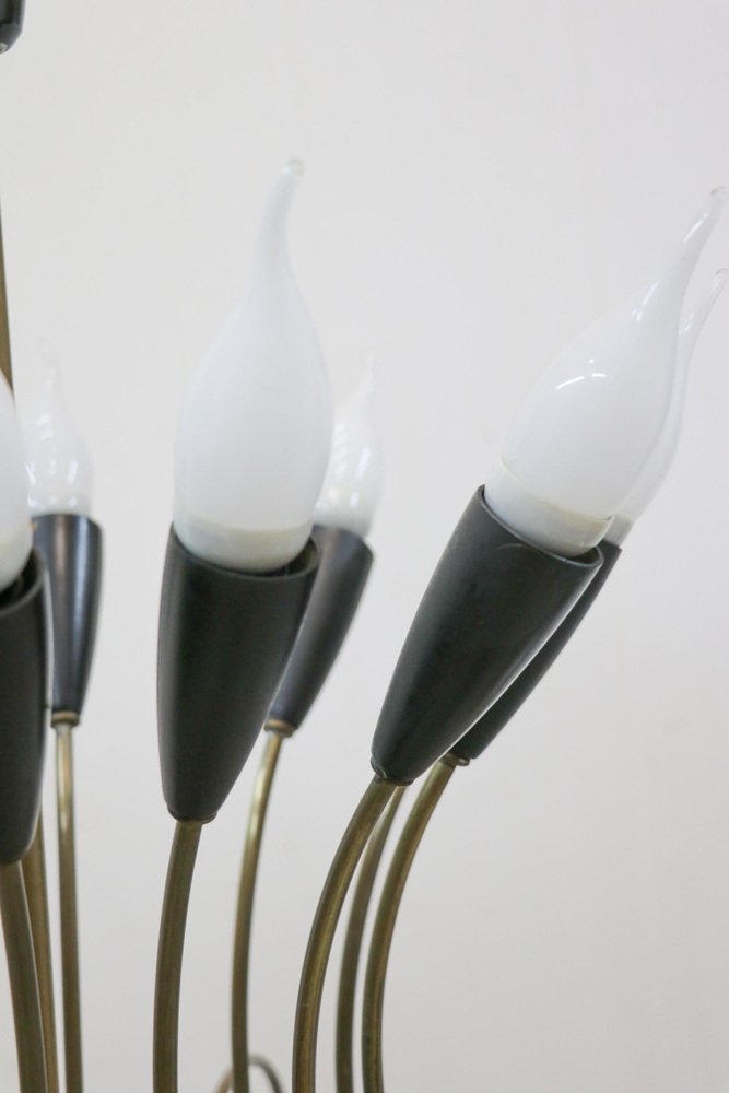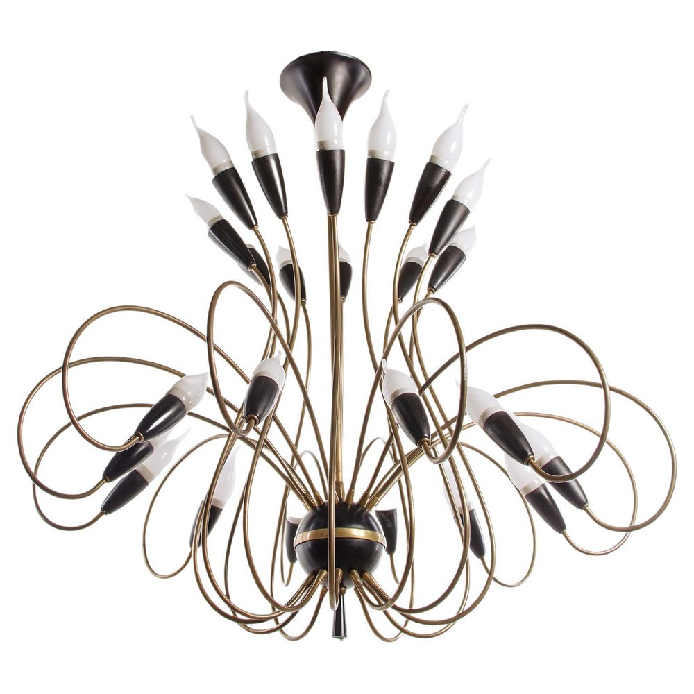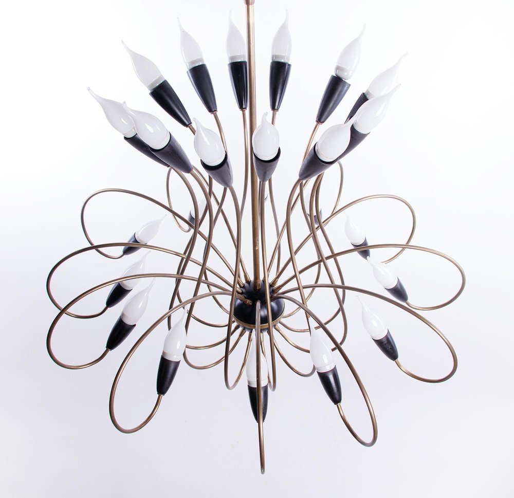 Large Mid-Century 24 Lights Brass Chandelier from Stilnovo, Italy, 1950s